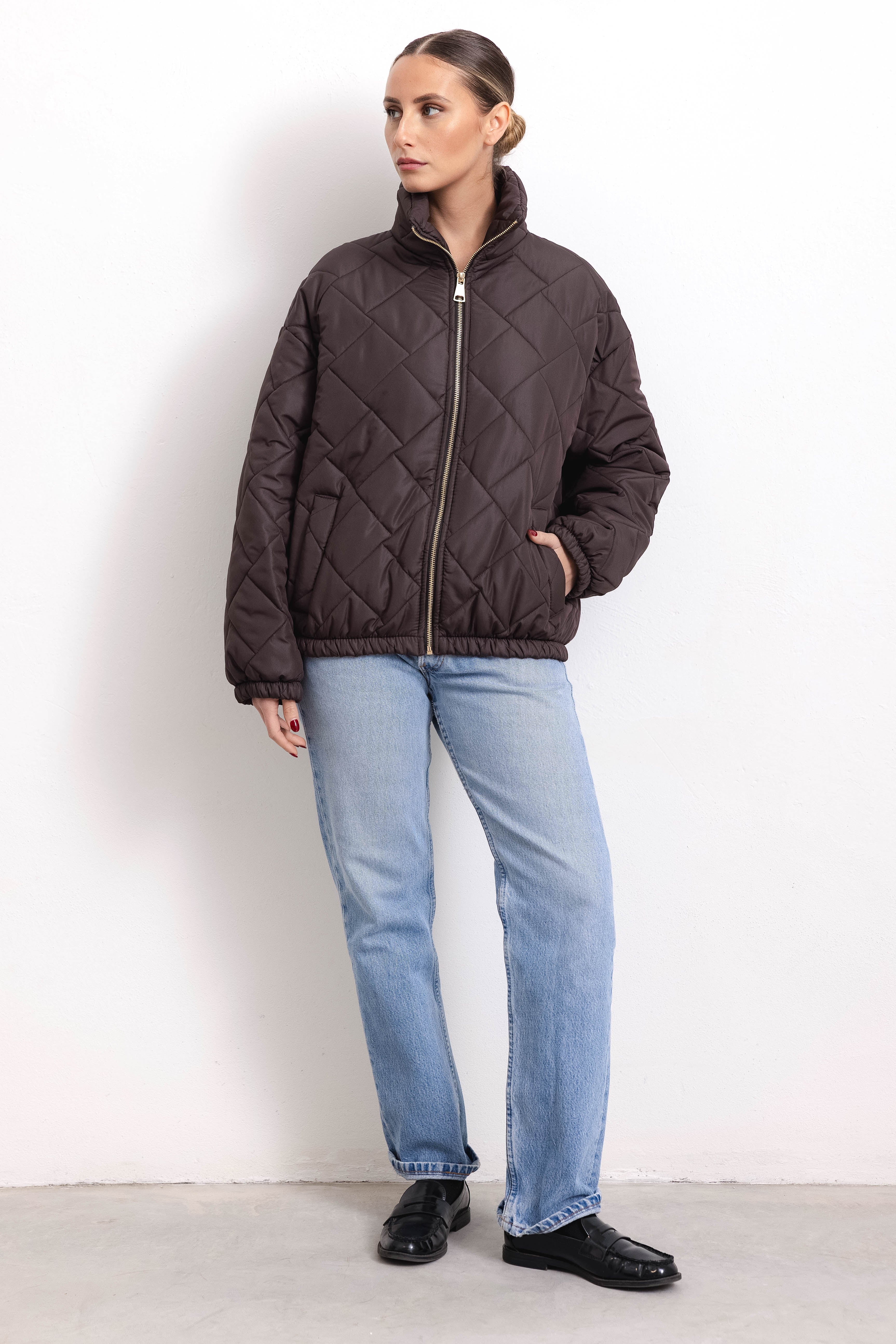 Giacchetta a maniche lunghe con colletto e cerniera frontale. Internamente foderato ed elasticizzato sulla parte finale così da ottenere un effetto bomber quando chiuso.