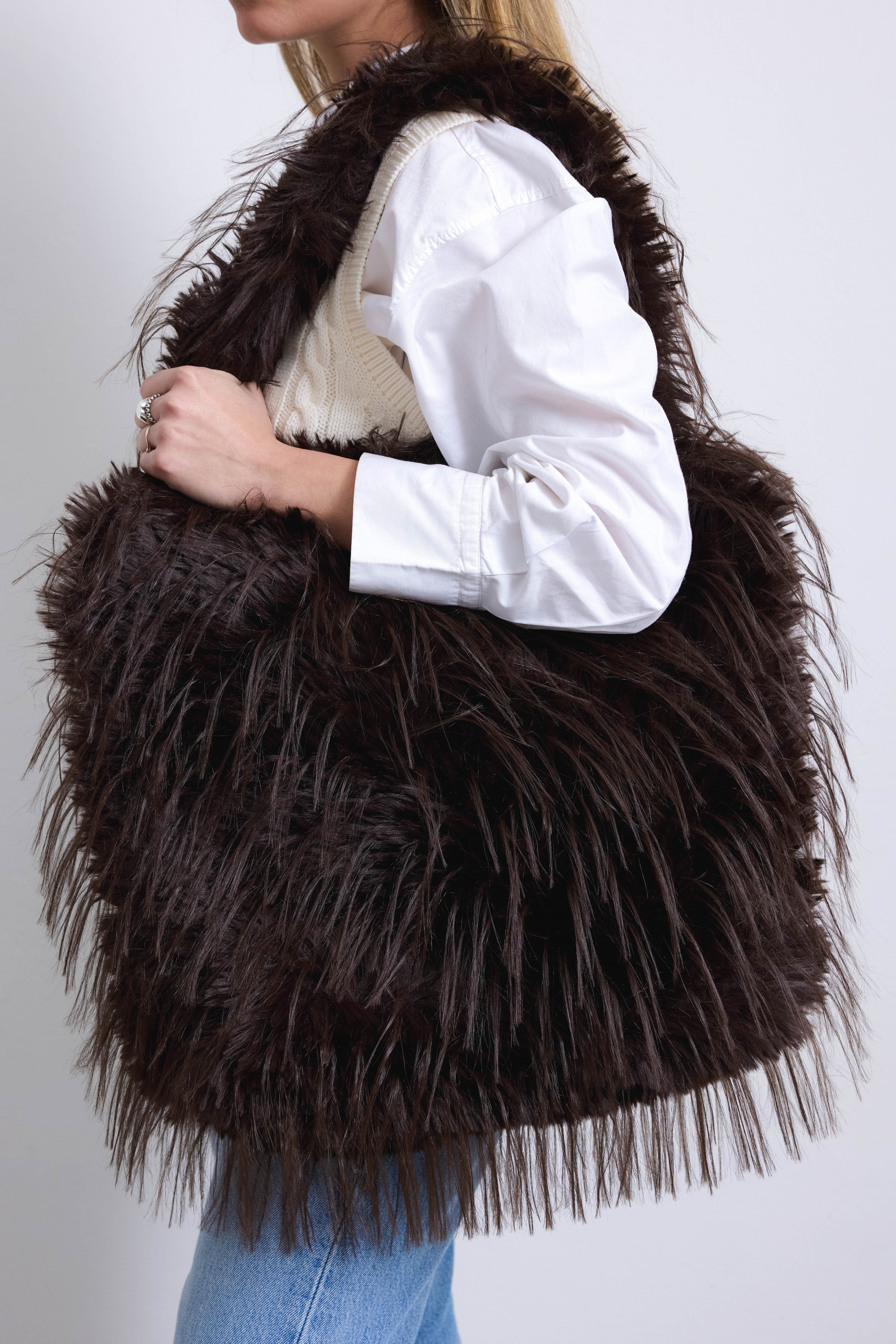 MALESIA - Borsa pelo ecopelliccia (Marrone Fondente)