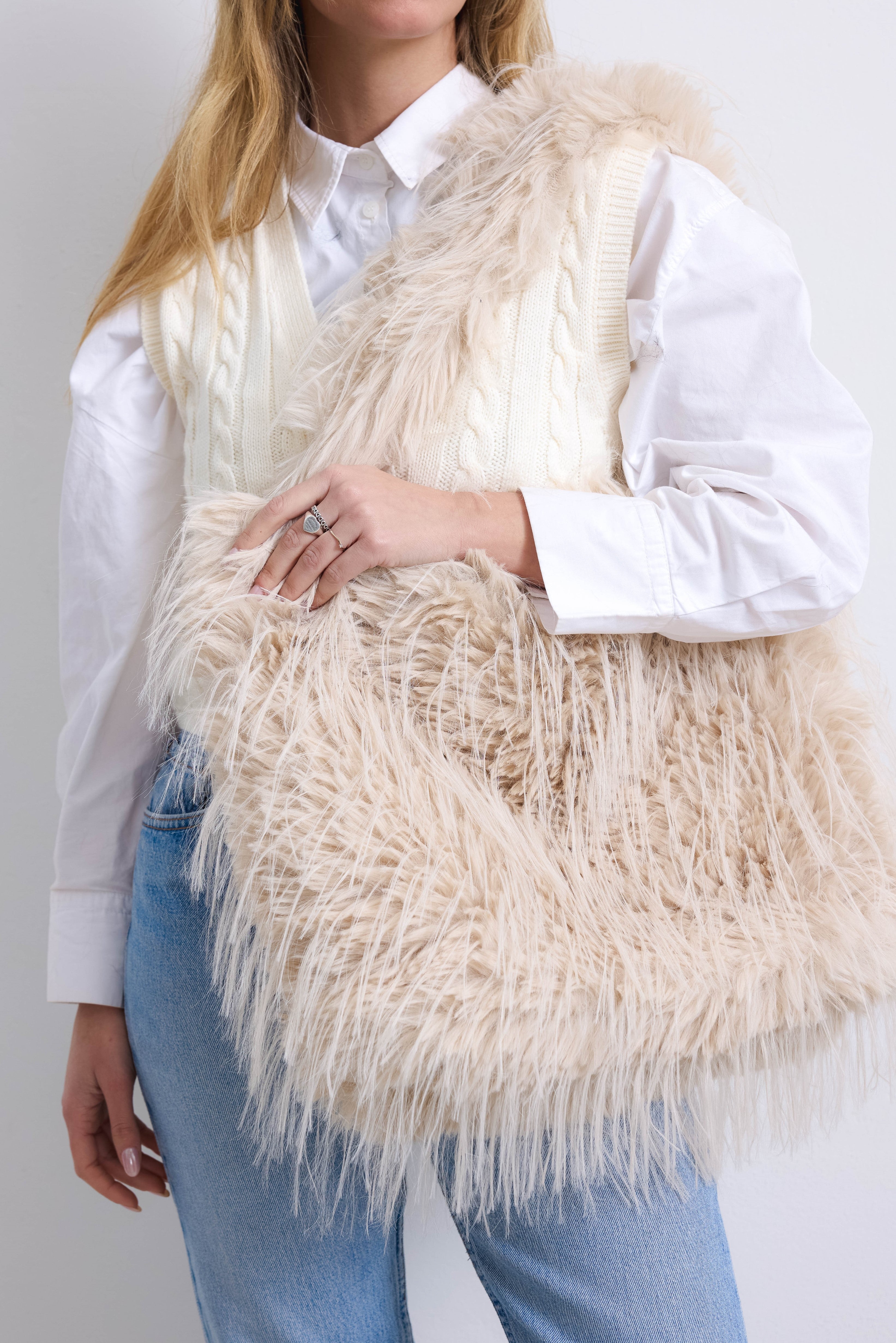 MALESIA - Borsa pelo ecopelliccia (Panna)