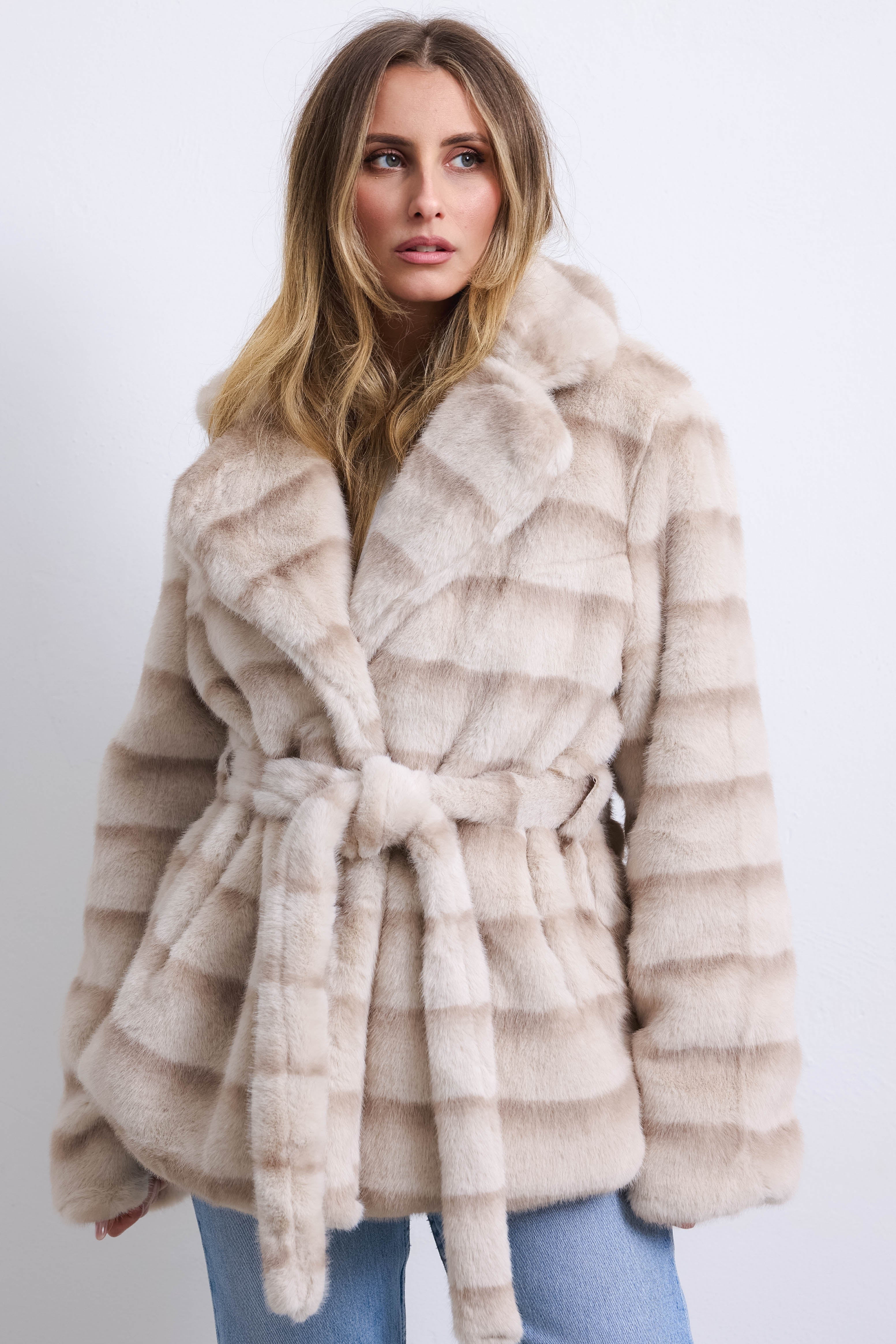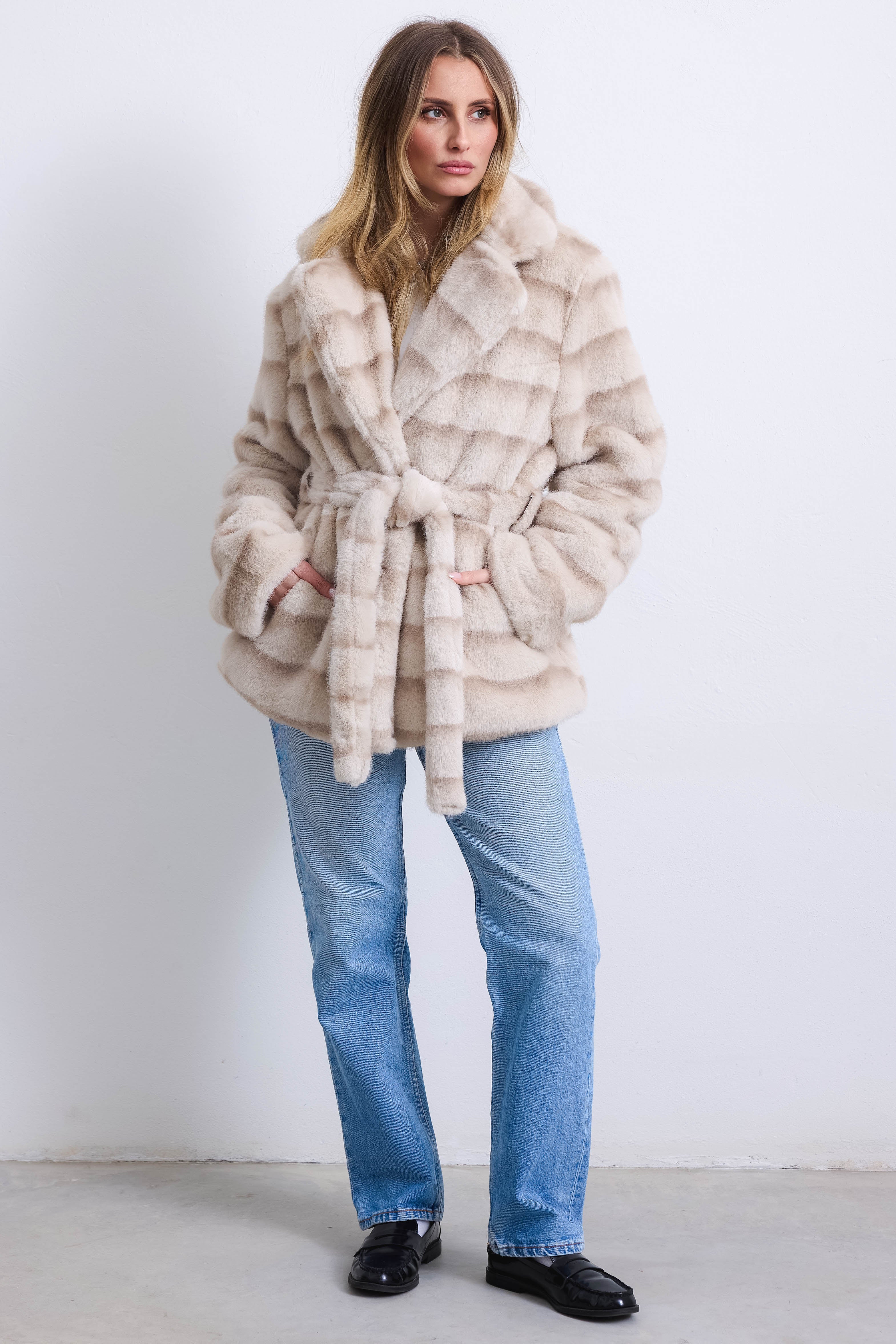 POLARE - Giacca pelo liscio ecopelliccia (Sabbia)