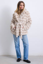 Giacca ecologica a pelo liscio con collo revers e cintura. Ideale sia di sera che di giorno, con il modello Canada ti sentirai comoda ed elegante, pronta ad affrontare ogni momento con uno stile davvero unico.