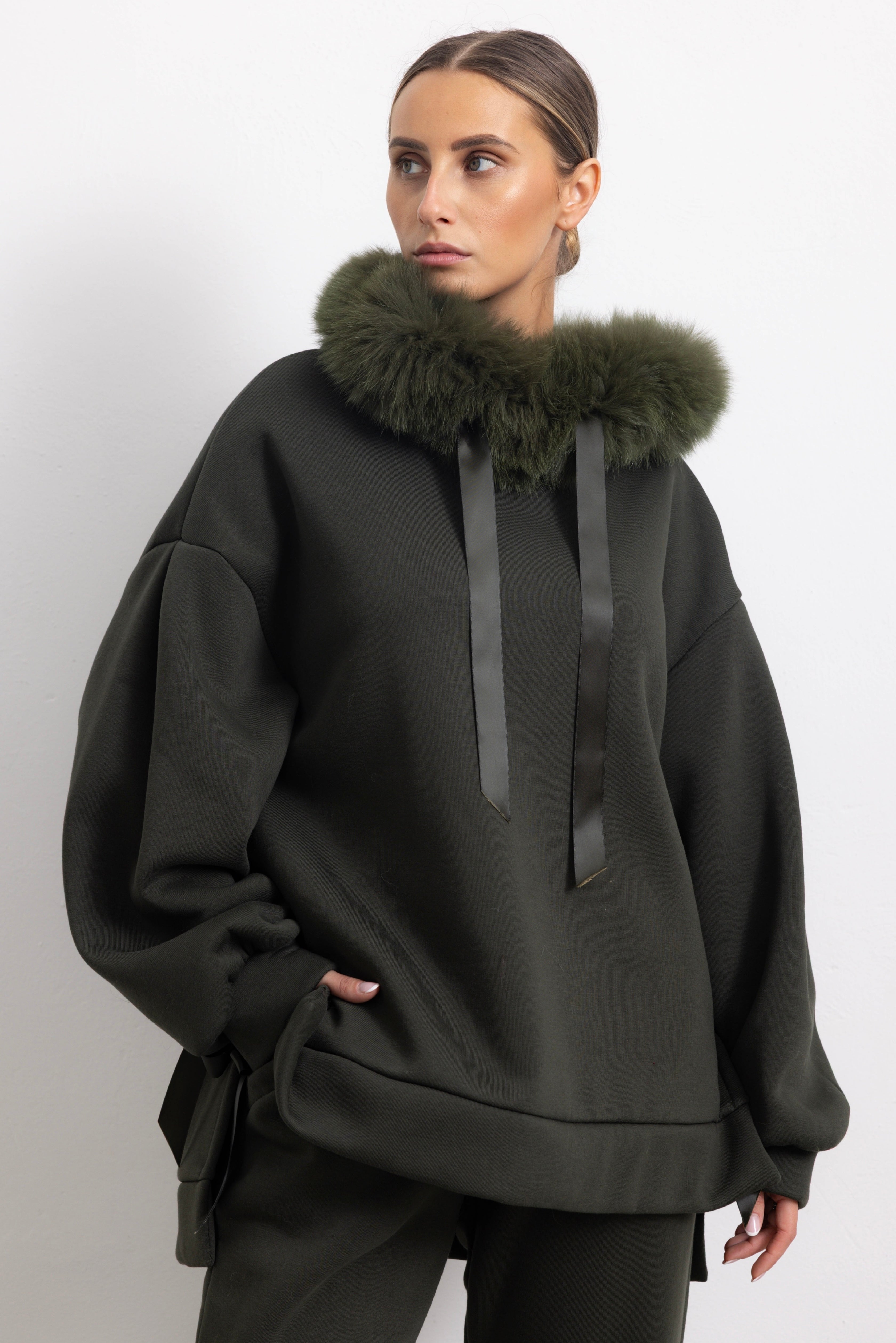 PORTO CERVO - Tuta con bordatura su cappuccio in volpe (Verde)