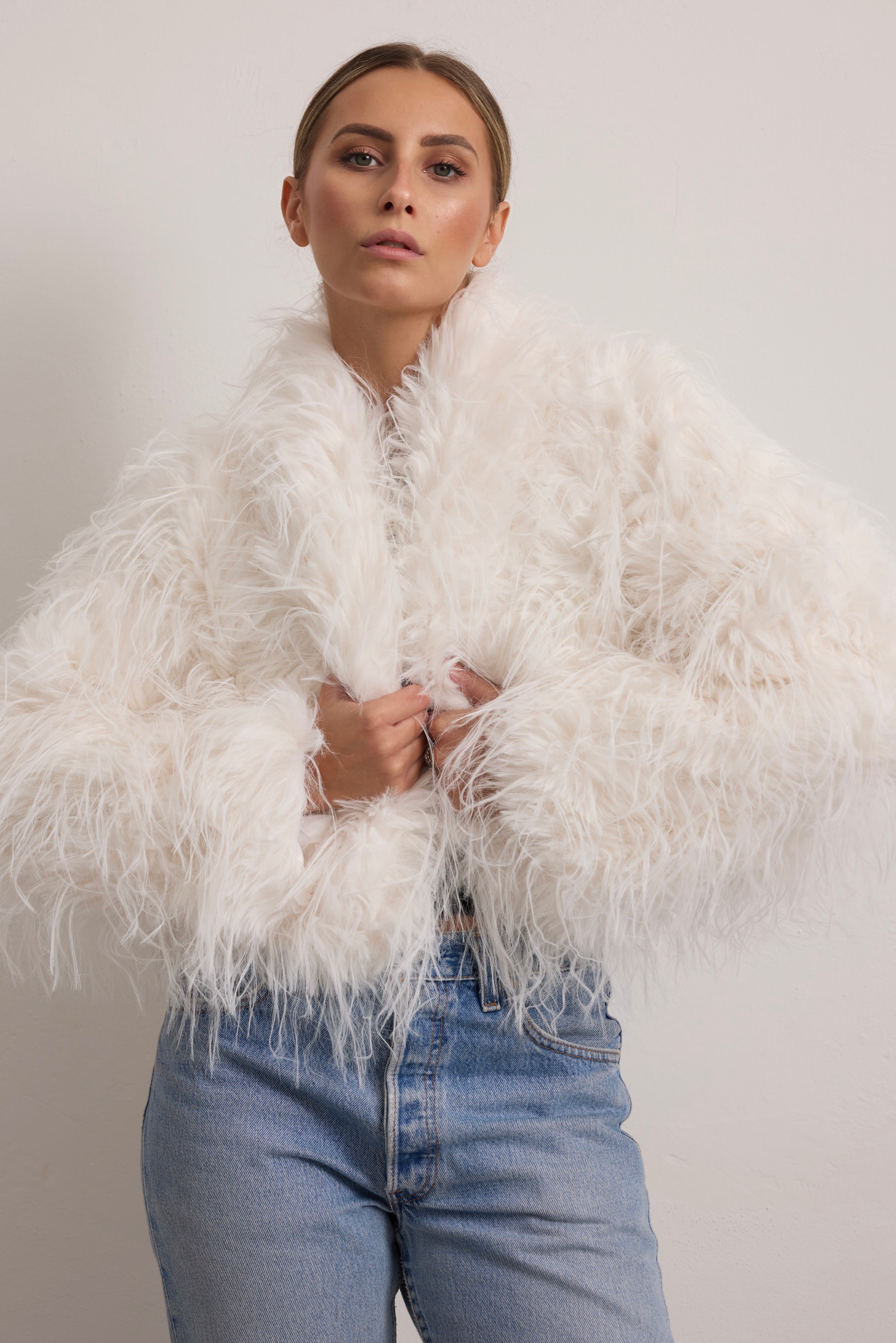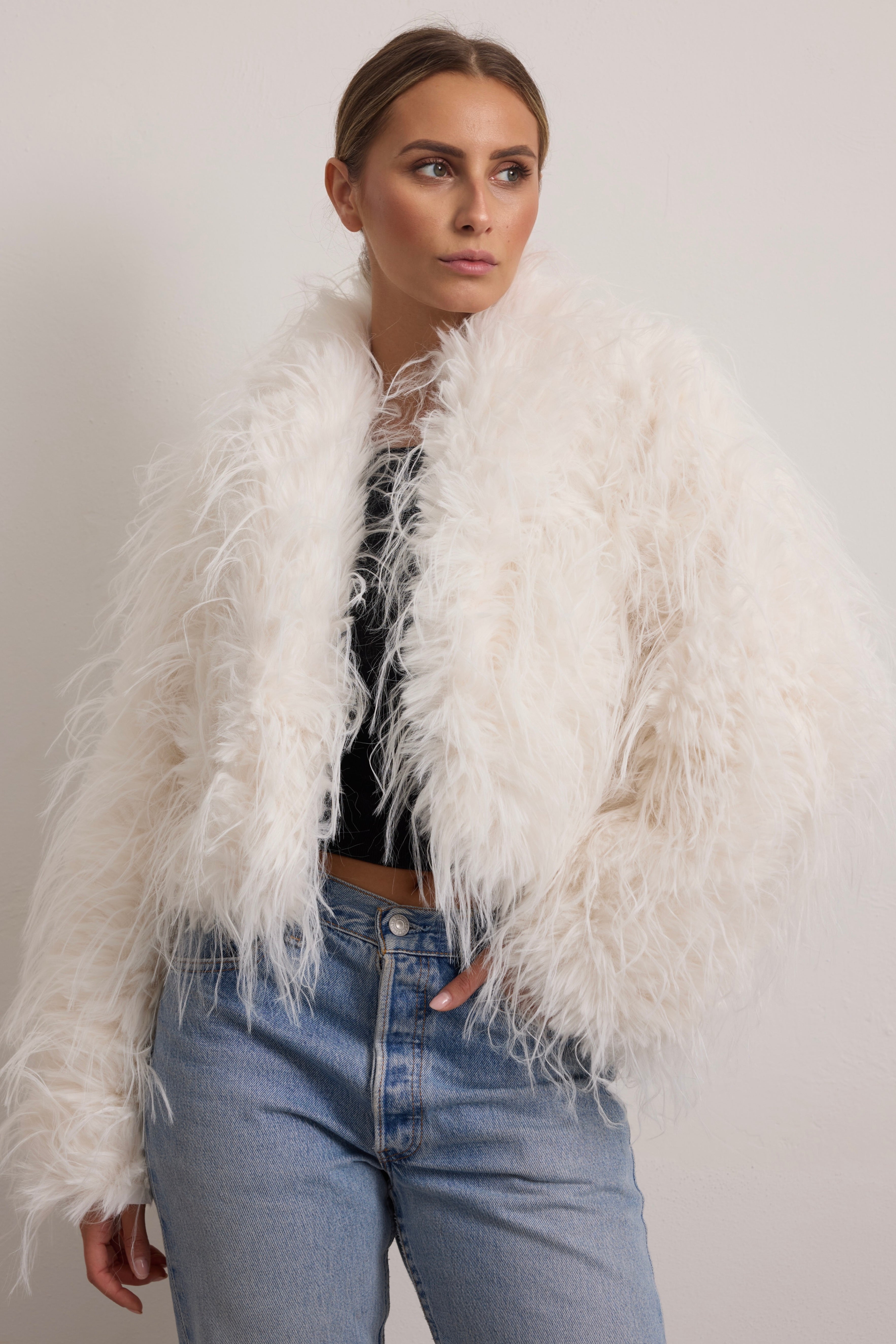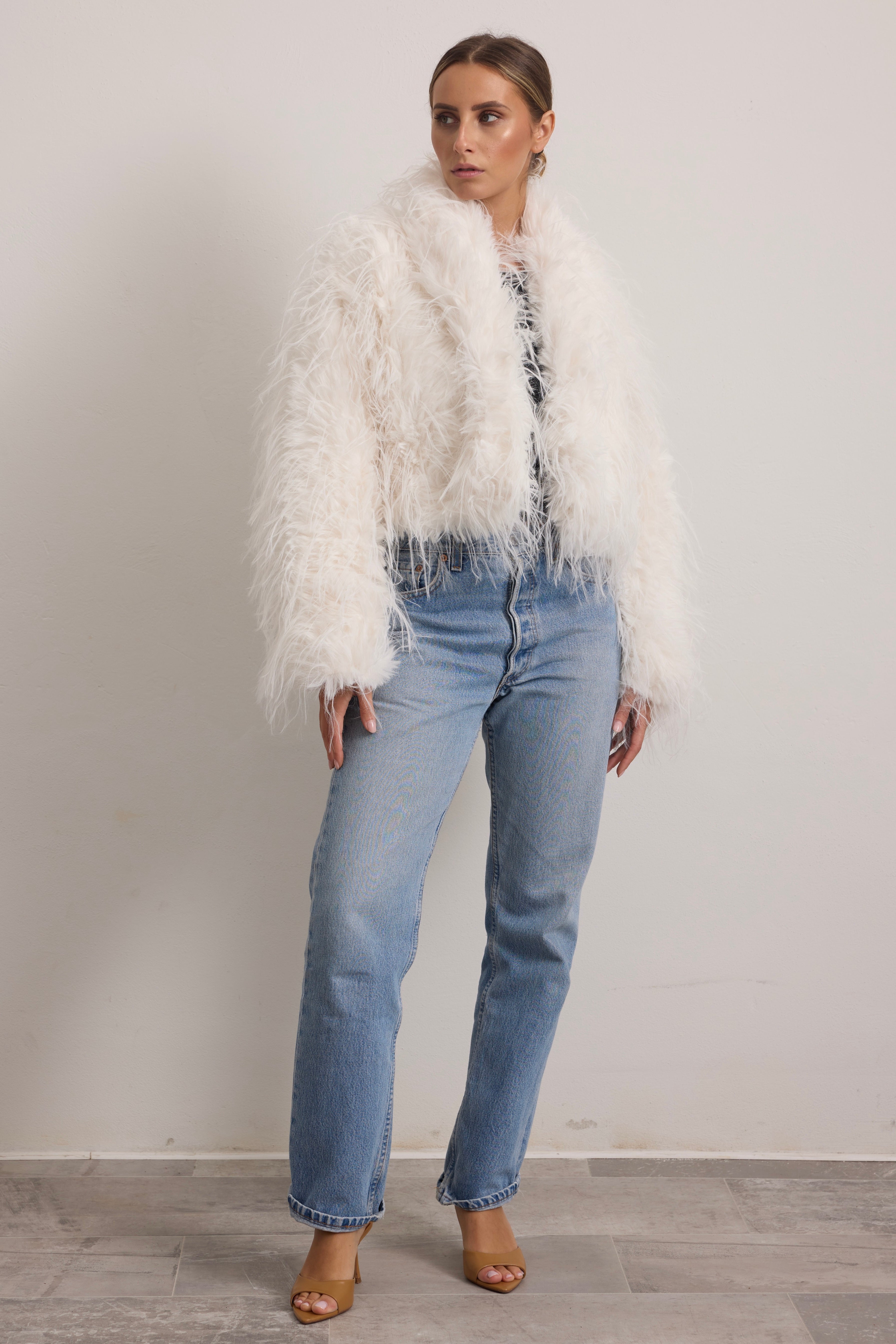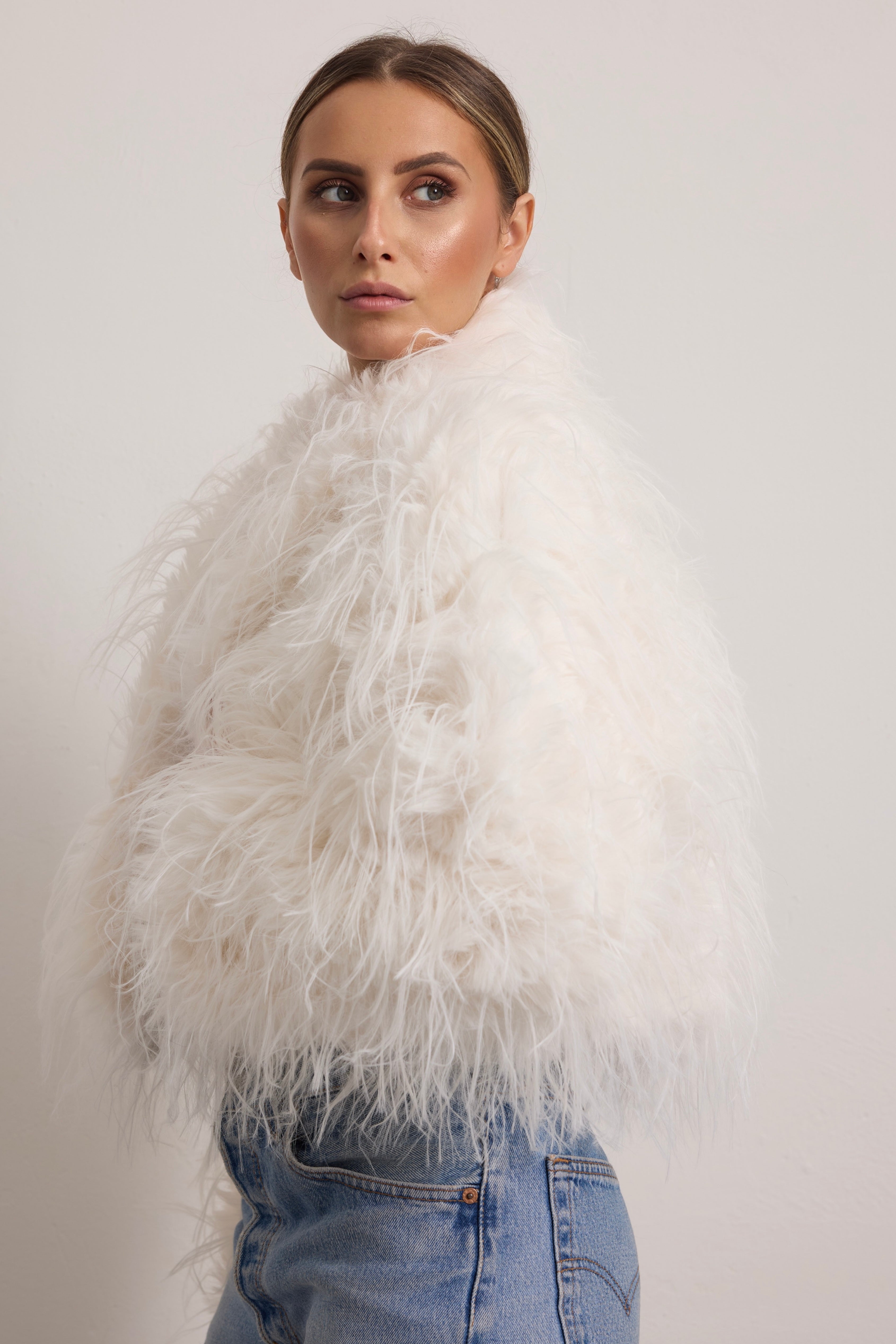 Giacchino cropped in ecopelliccia con collo reverse e manica regolare.