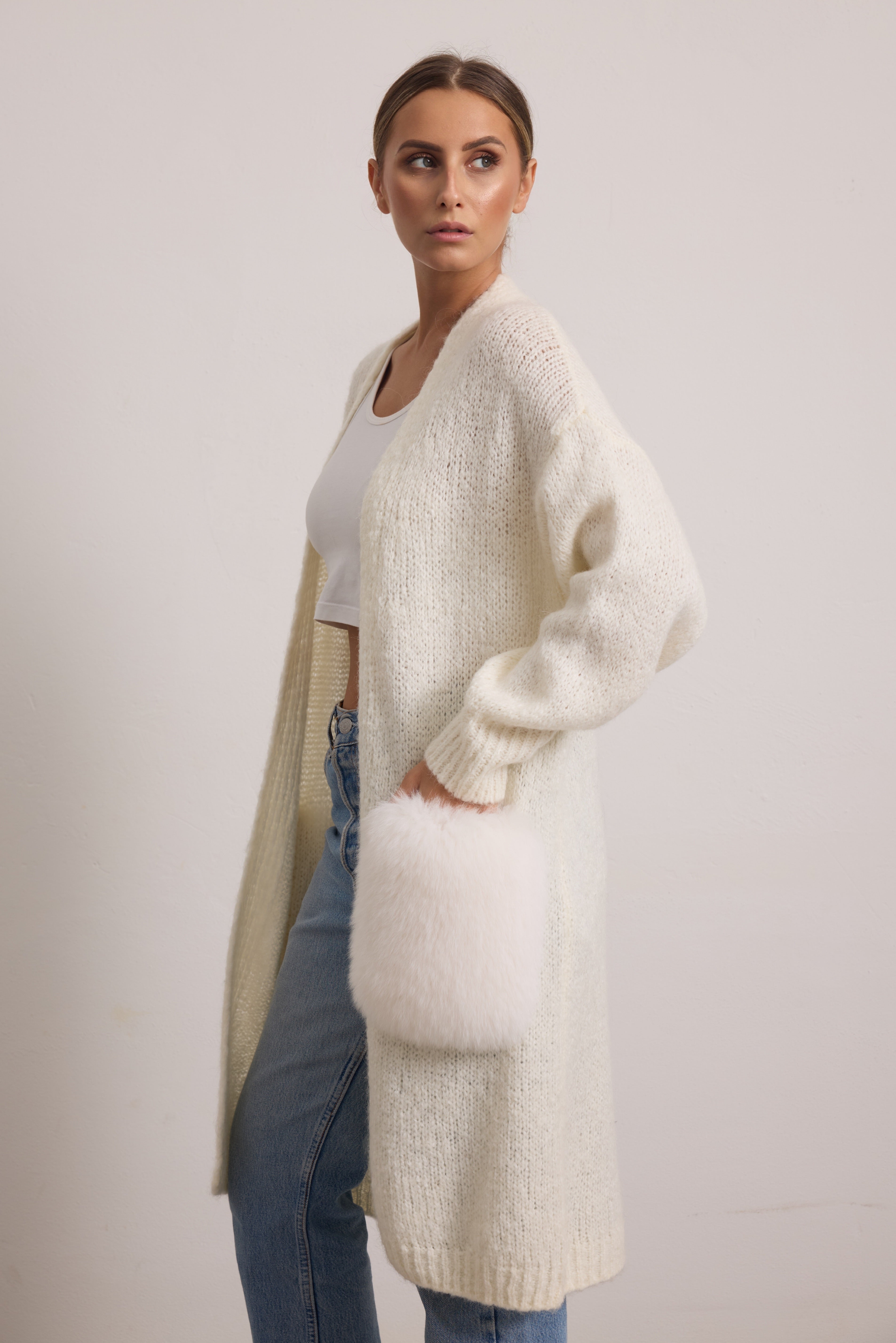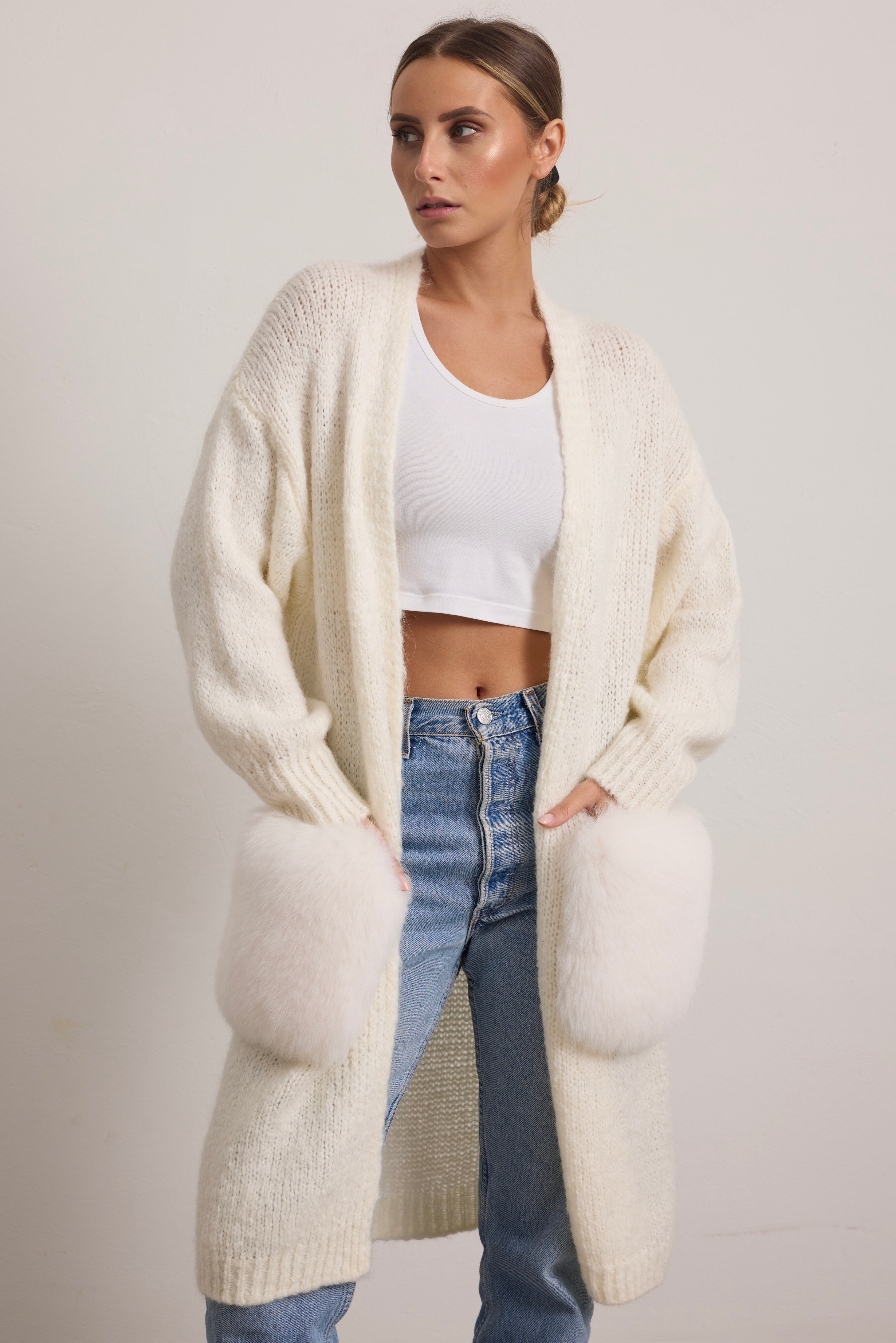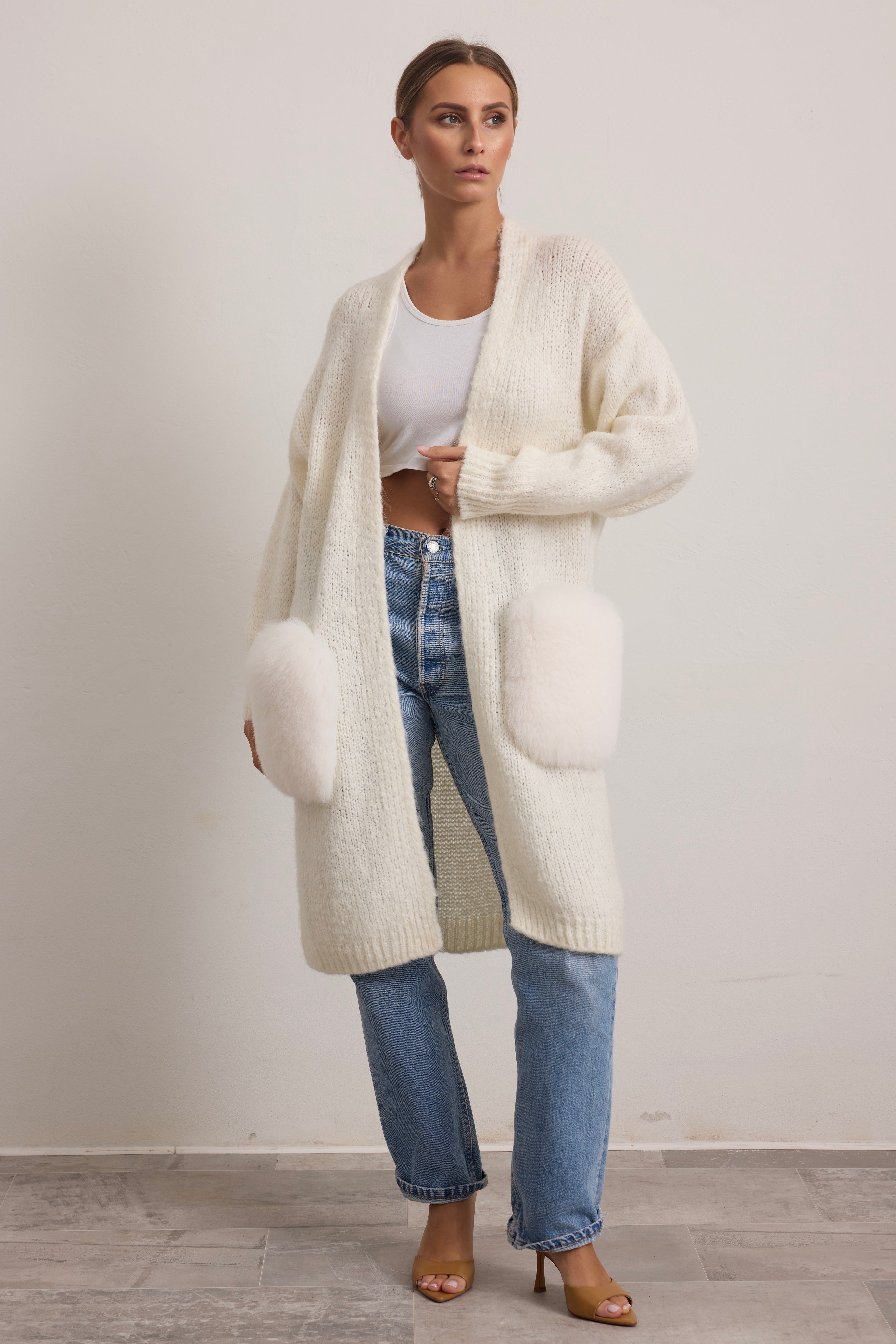 ANVERSA - Cardigan con tasche in volpe (Bianco)