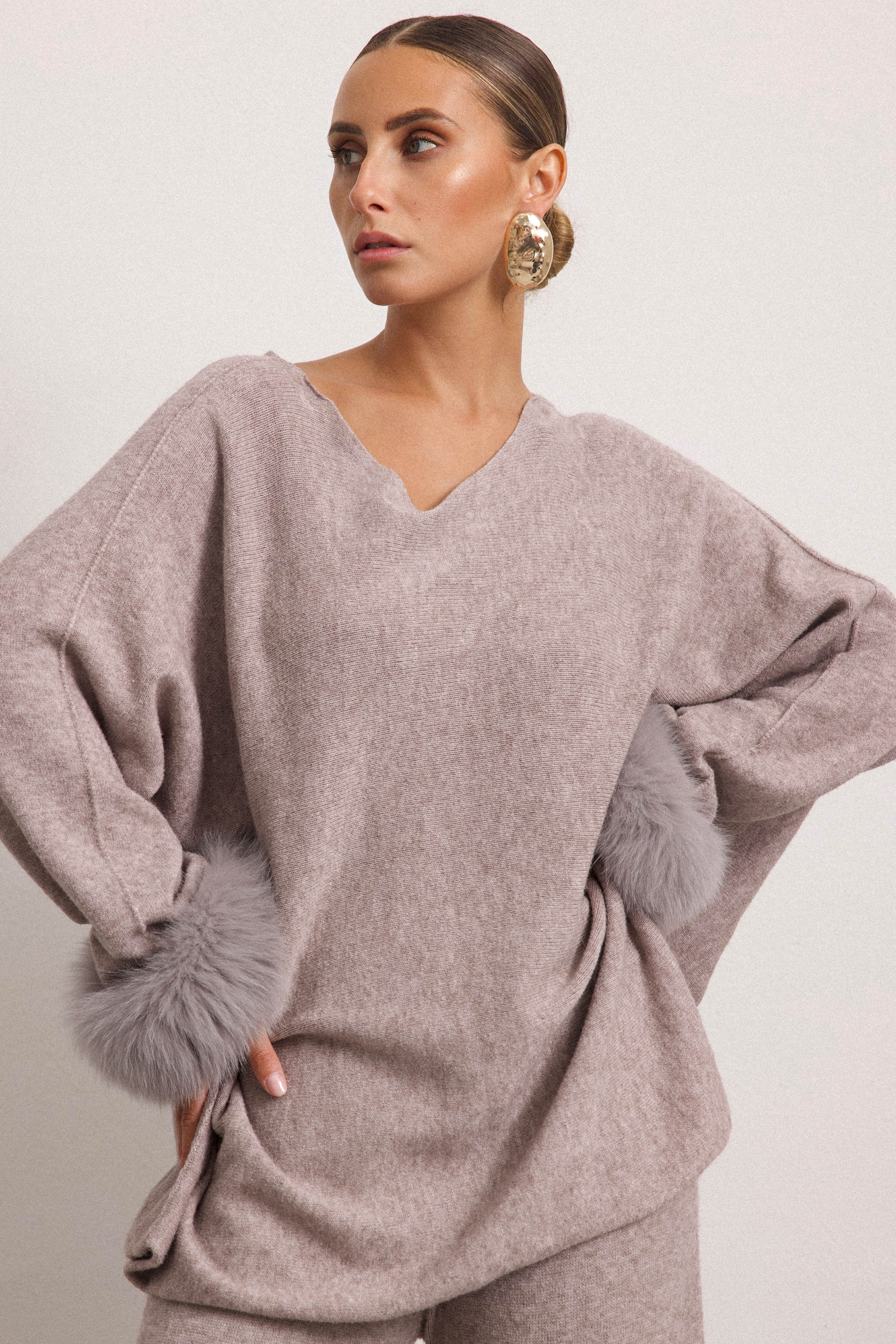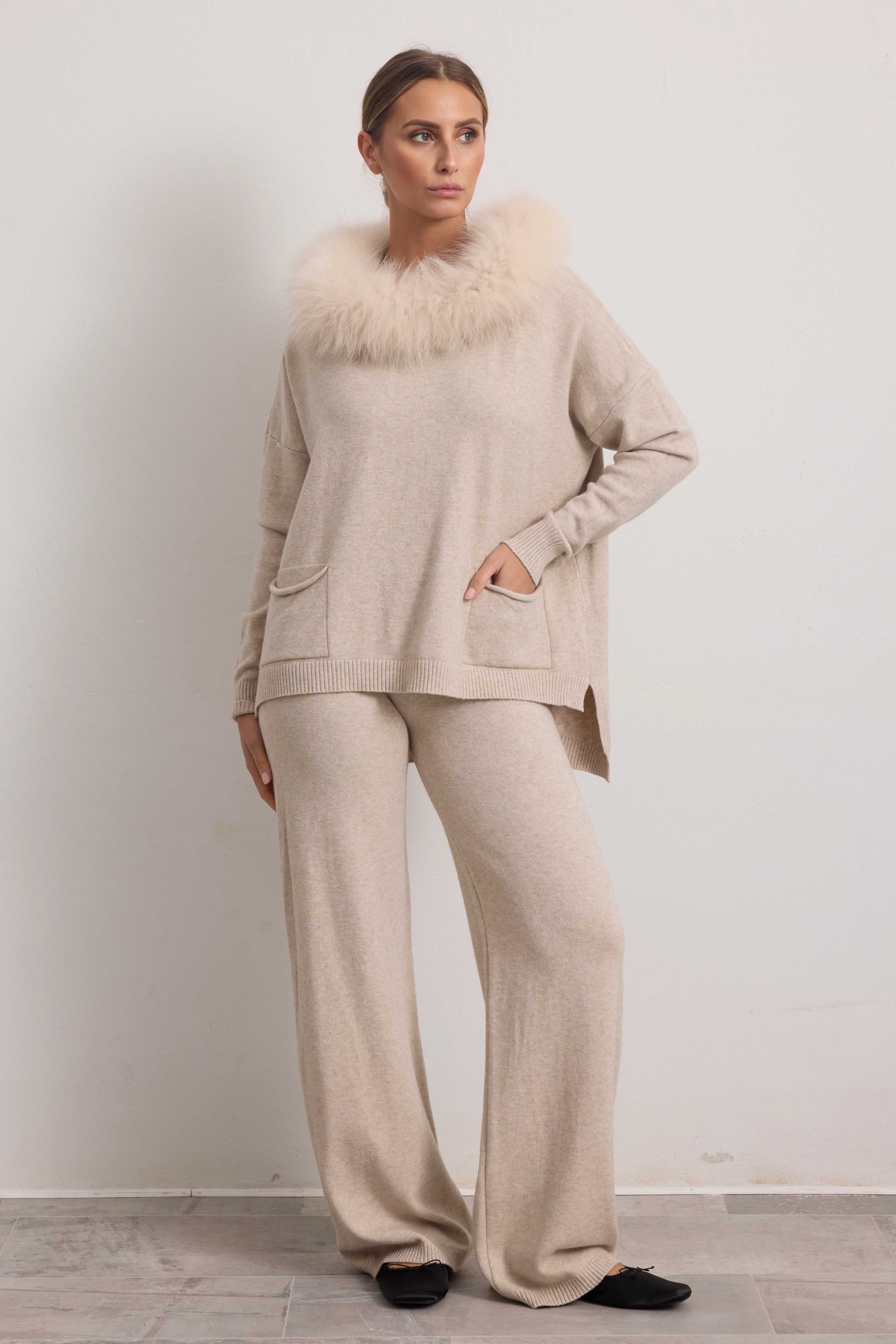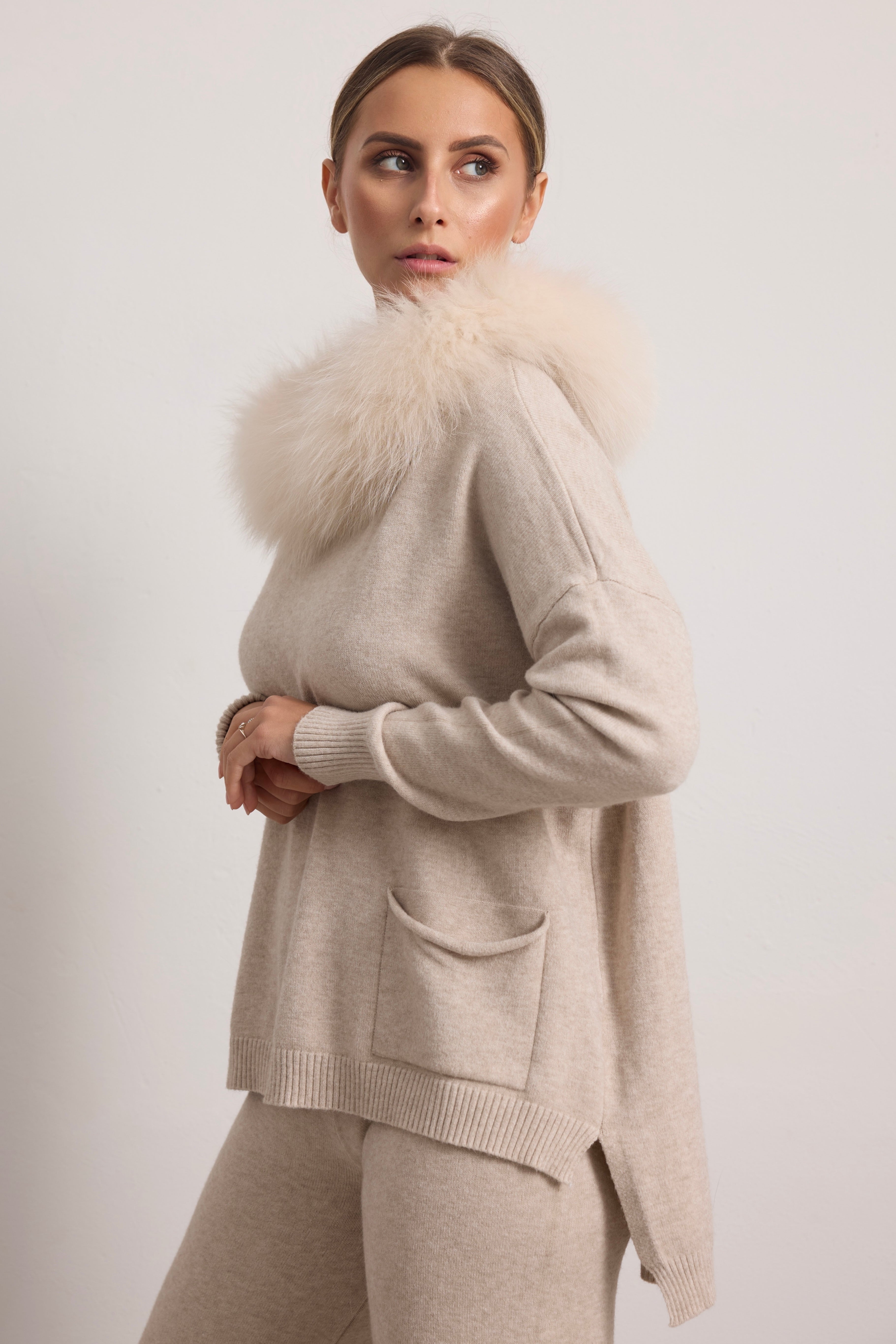 ISCHIA - Completo con bordatura su cappuccio in volpe (Sabbia)
