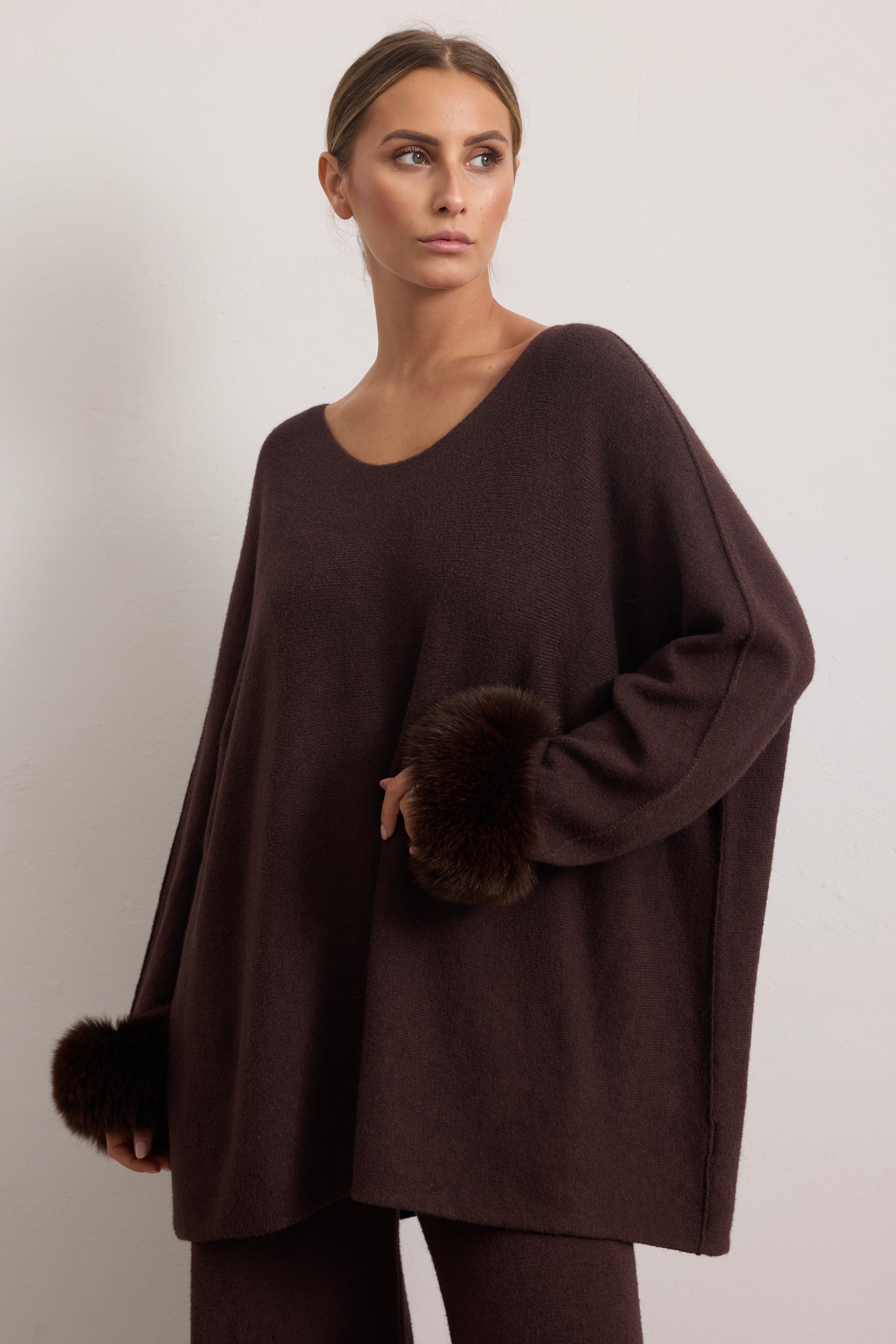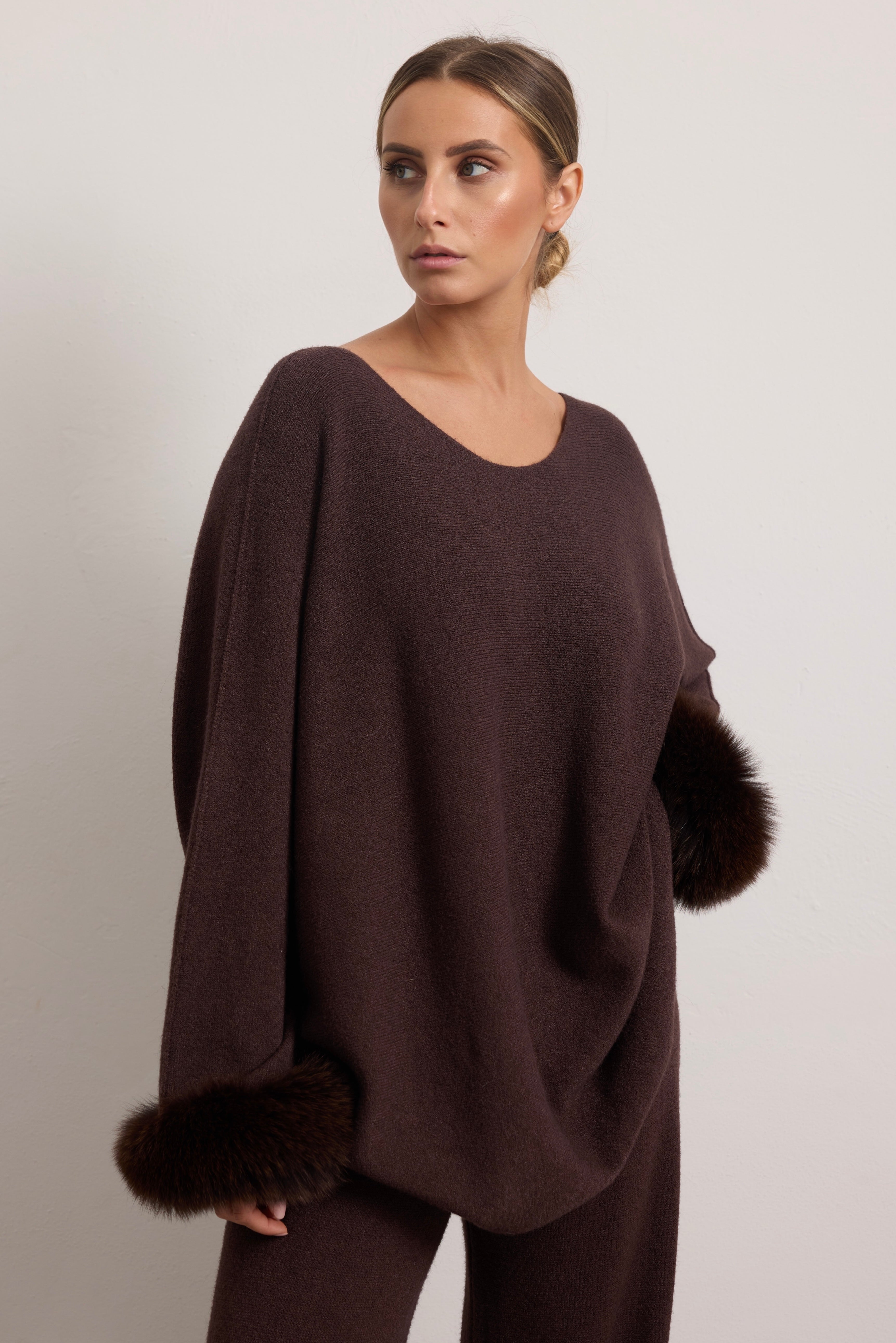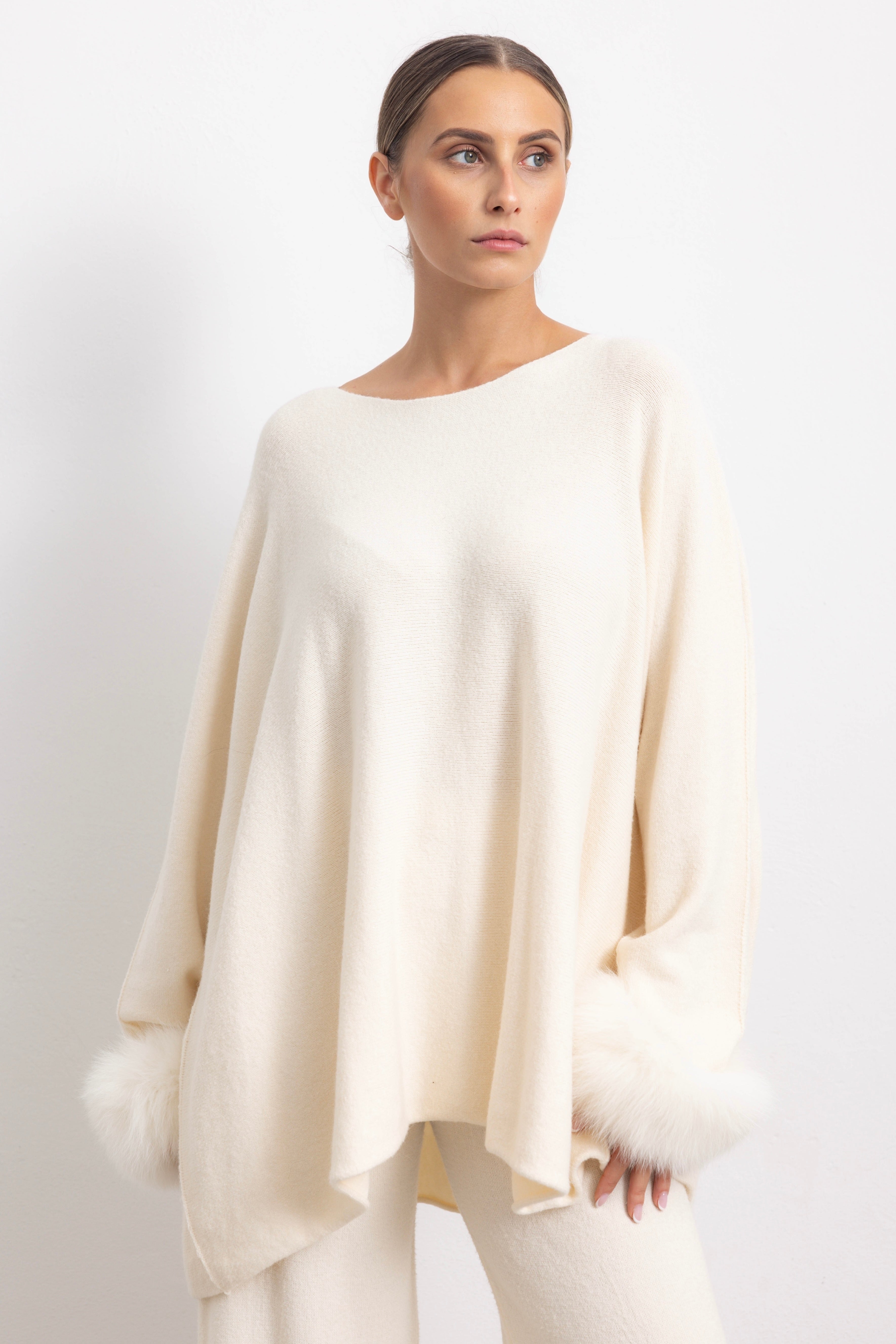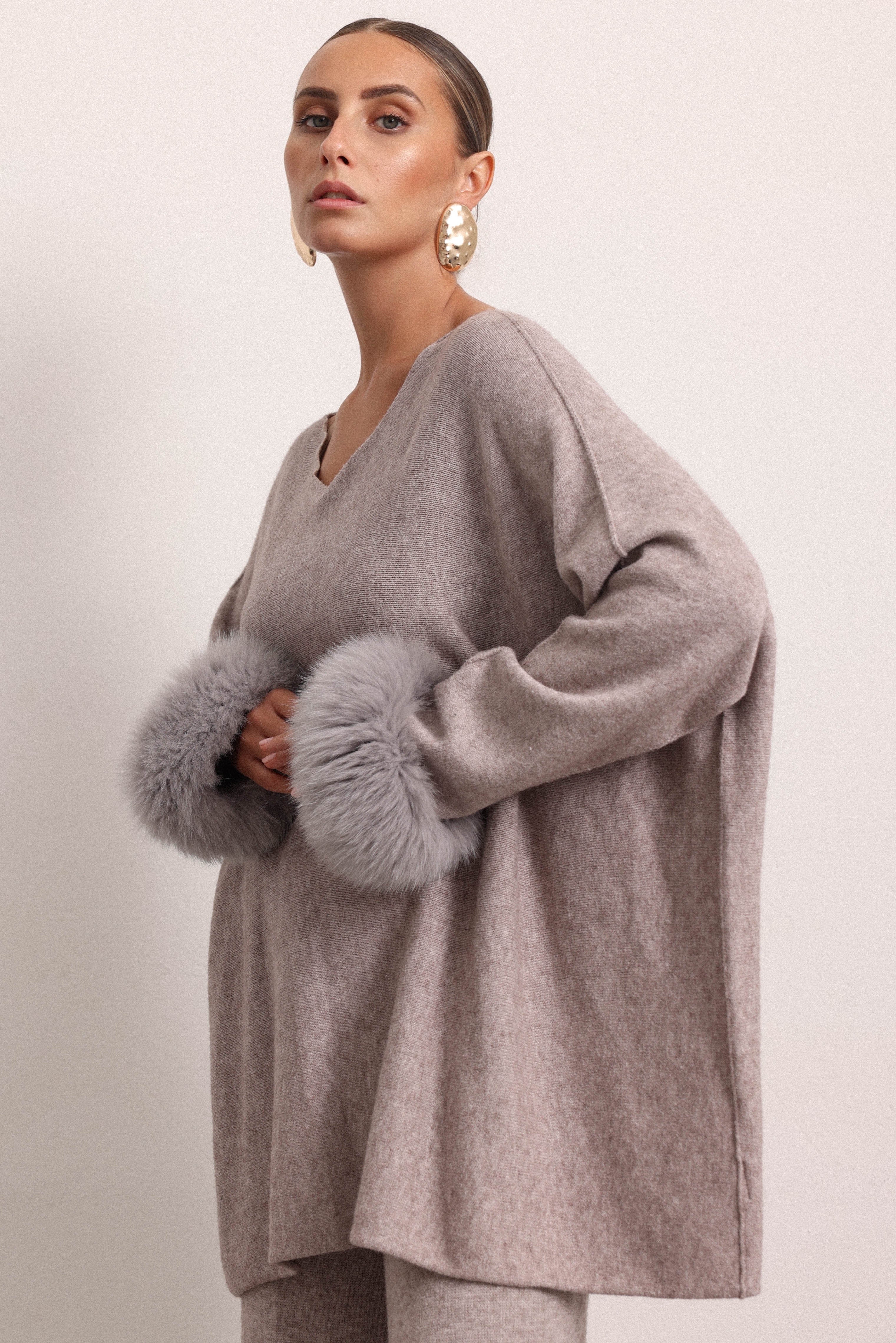 ISCHIA - Completo con bordatura su cappuccio in volpe (Sabbia)