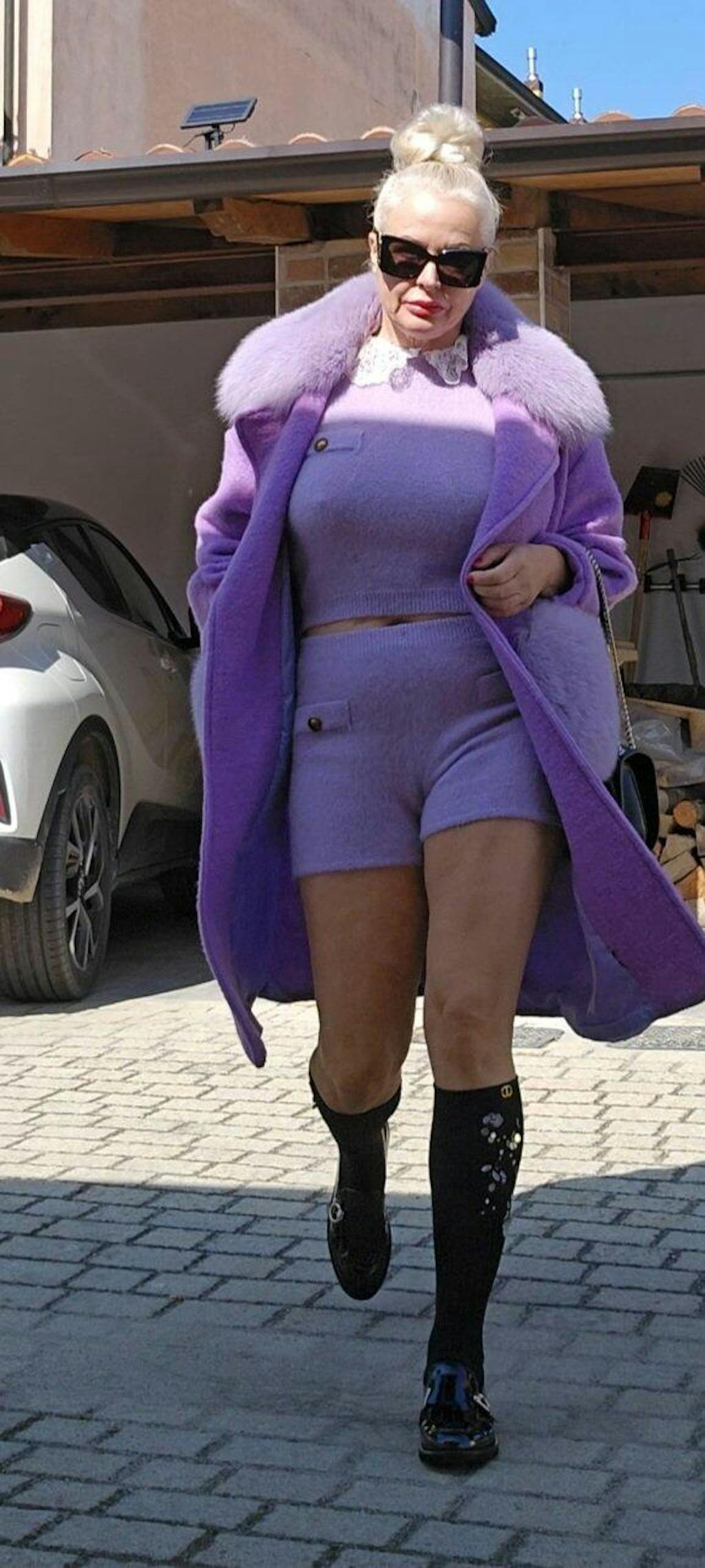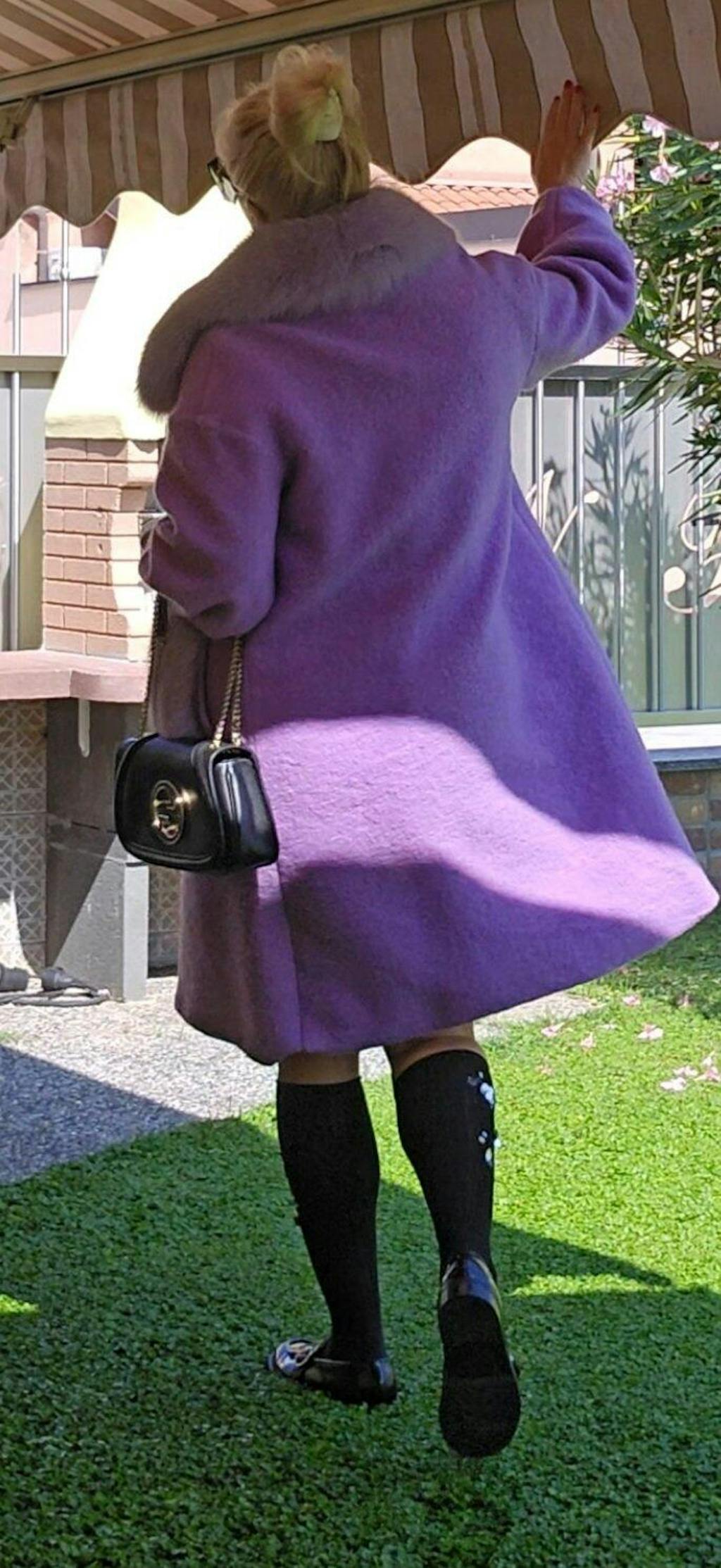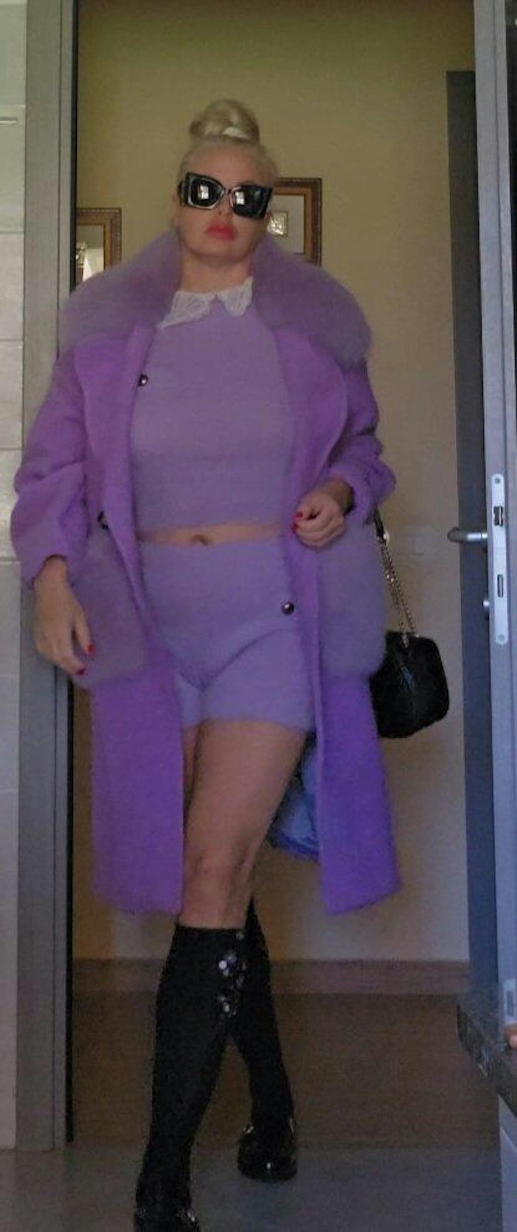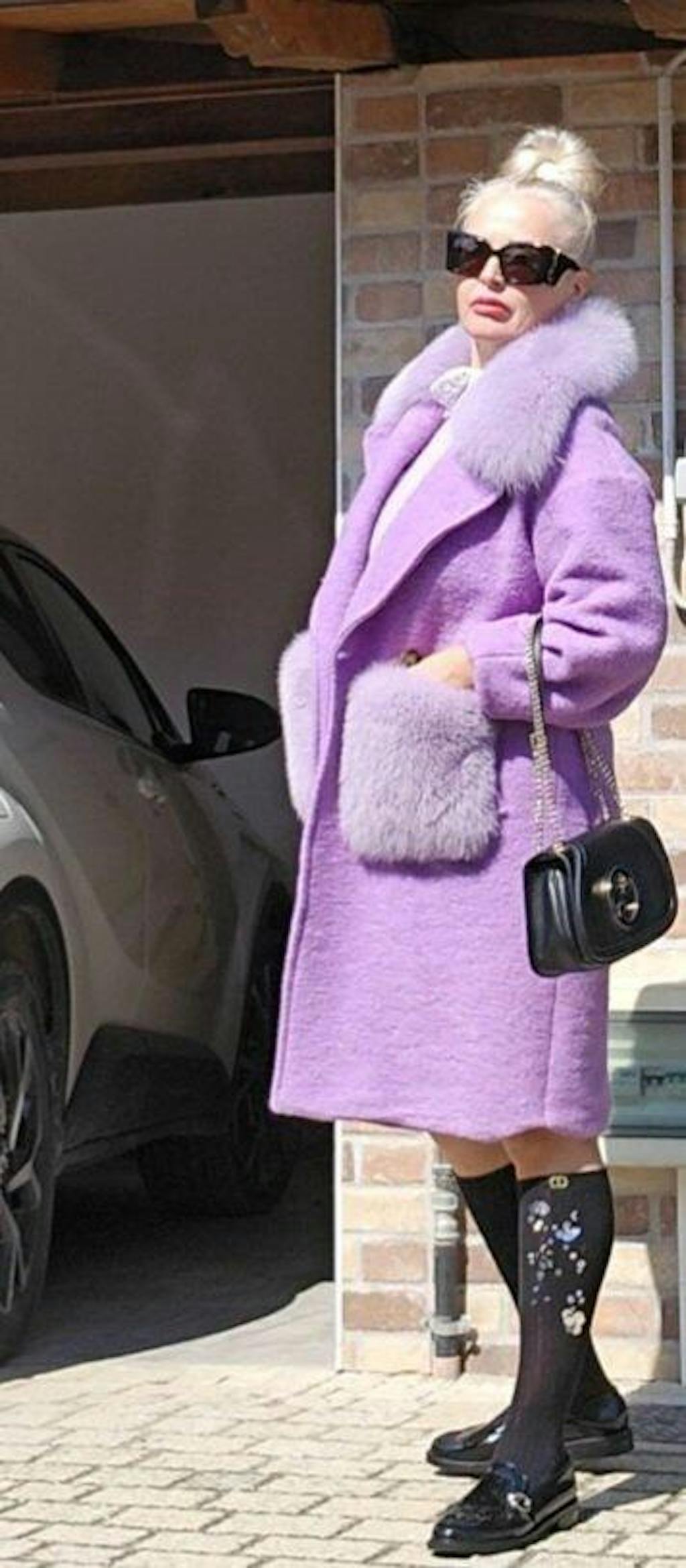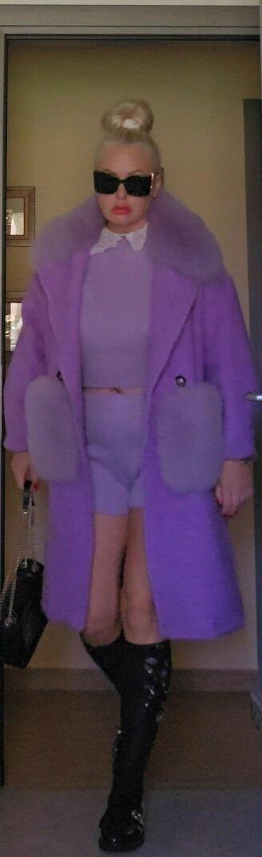 Estocolmo: capa con bolsillos y borde del cuello de zorro (lila)