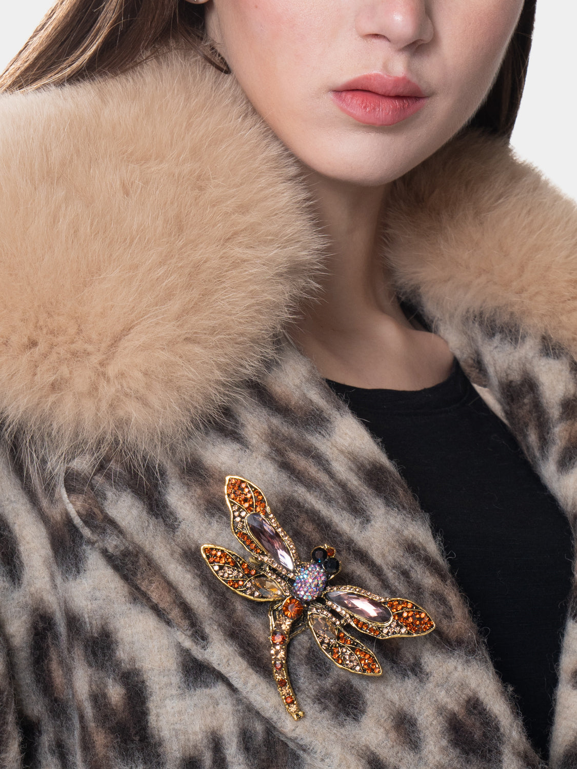 Abrigo Animalier con Broche Libélula - Edición Limitada de Lujo