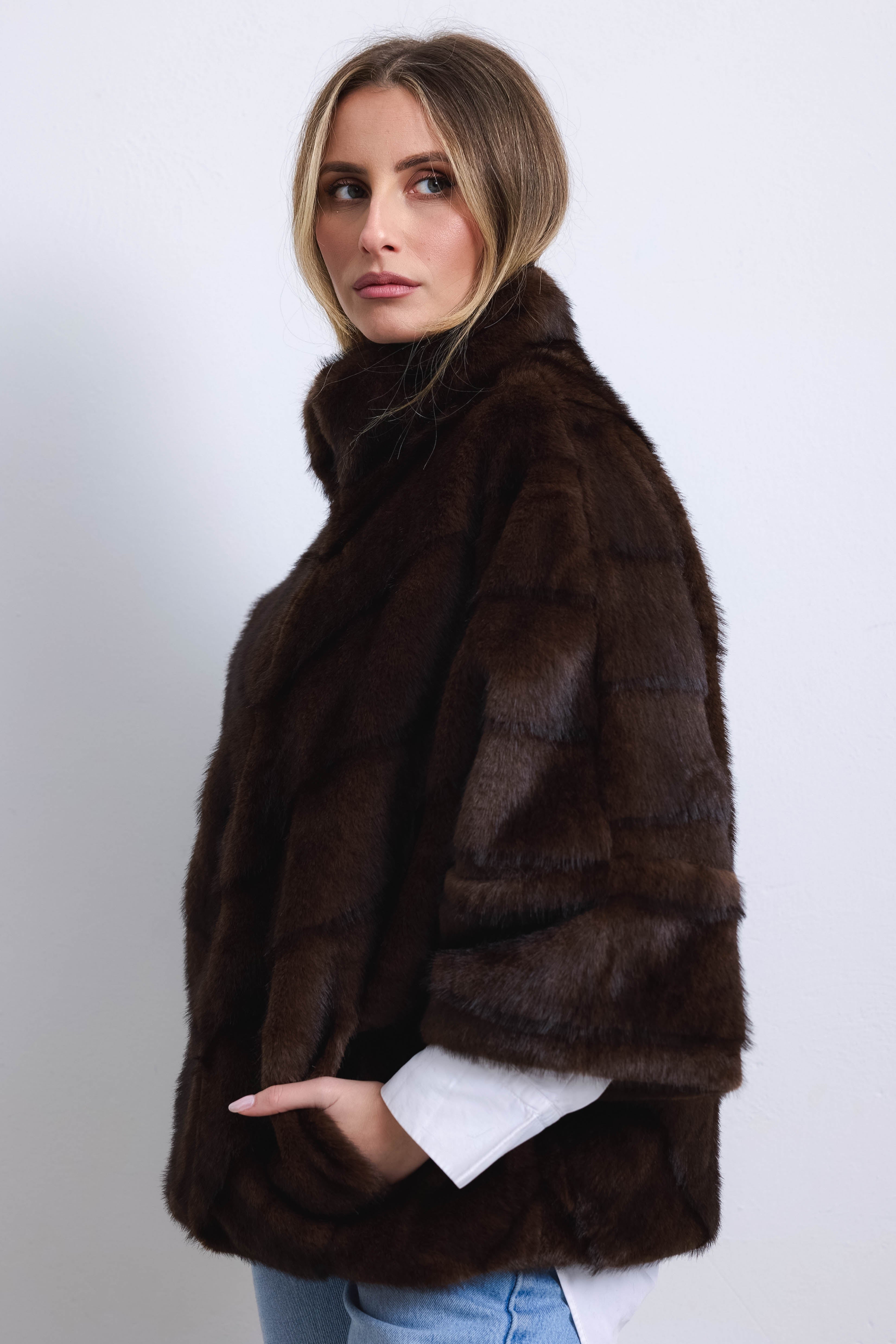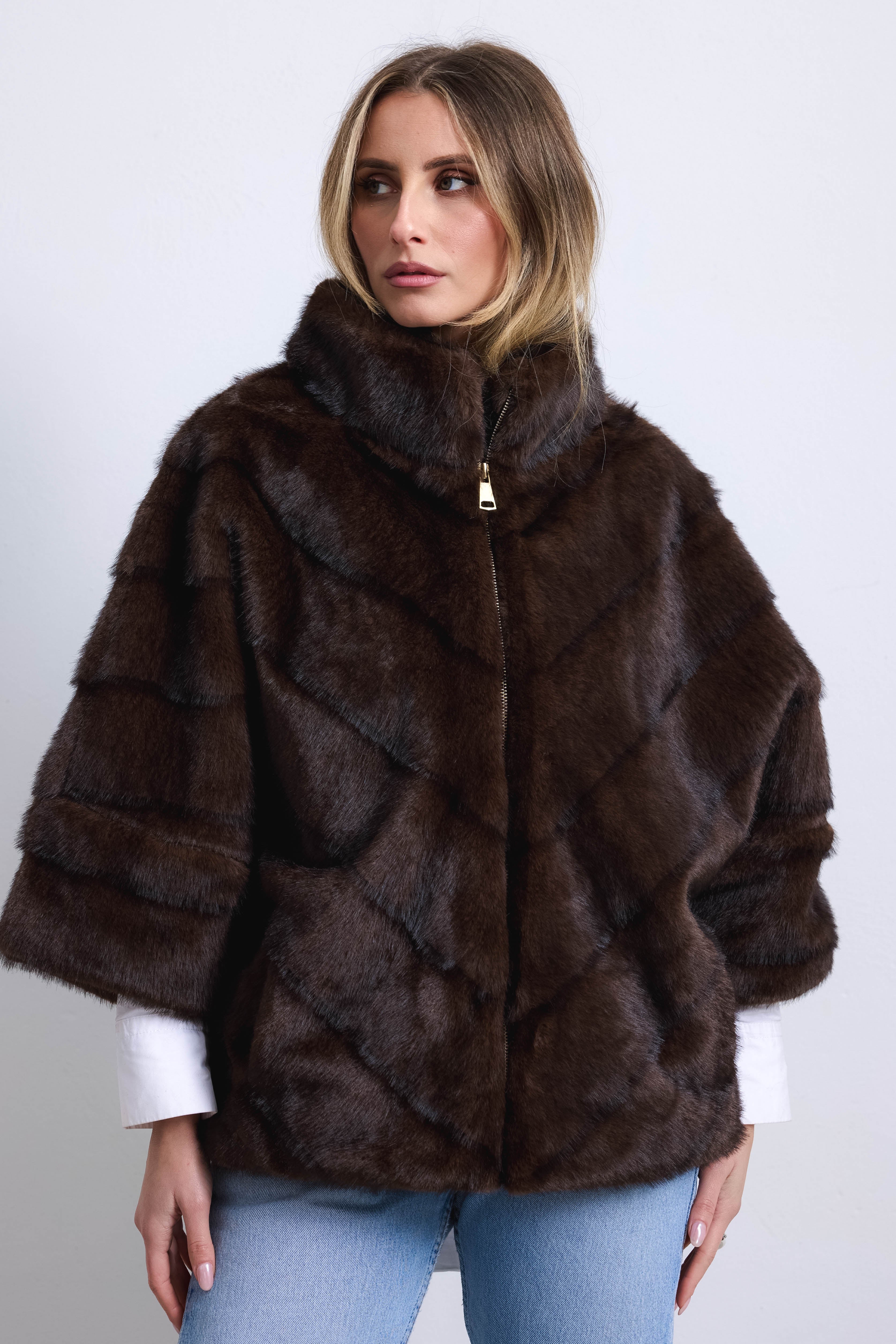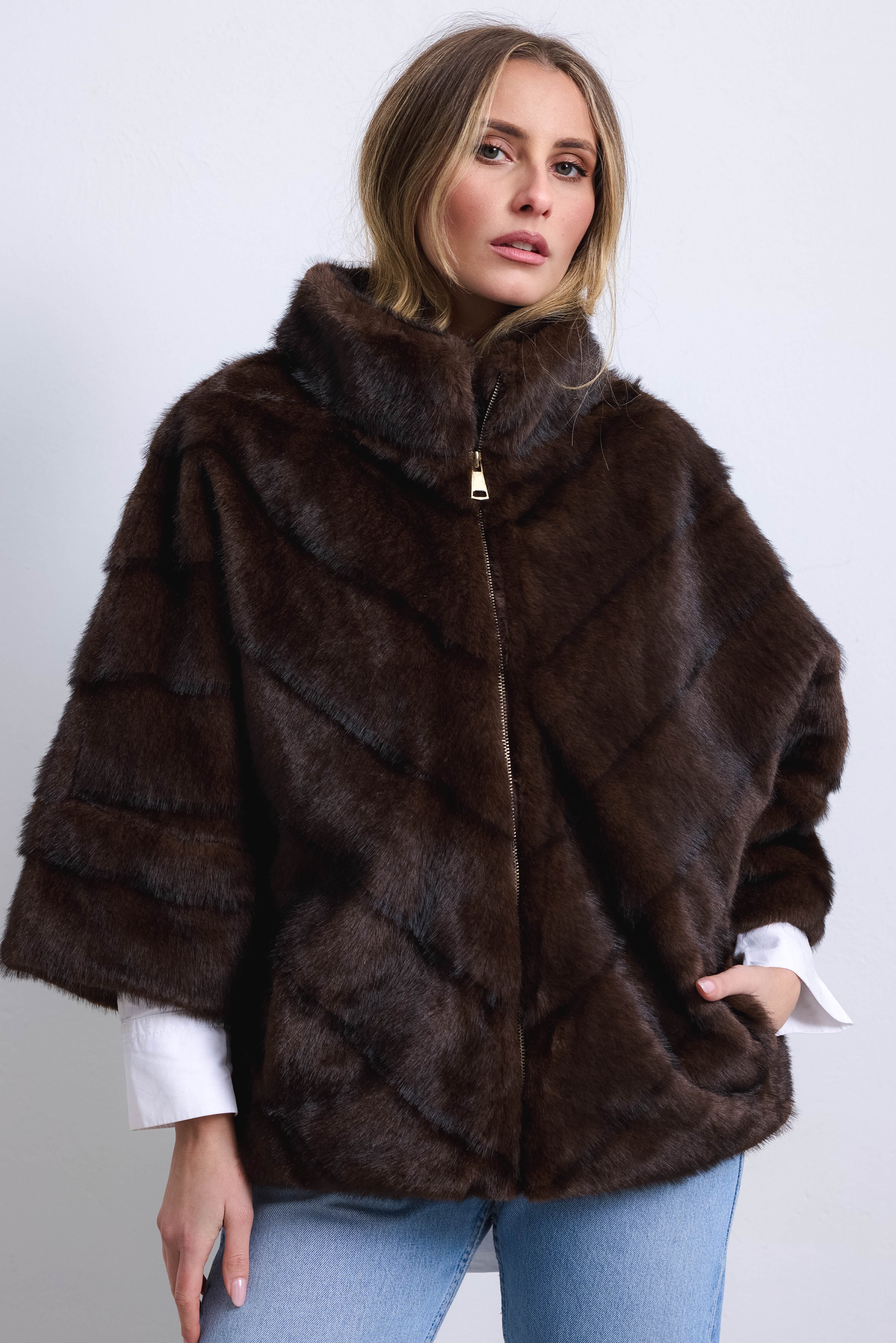 ANTARTIDE - Kimono pelo liscio ecopelliccia (Marrone Cioccolato)