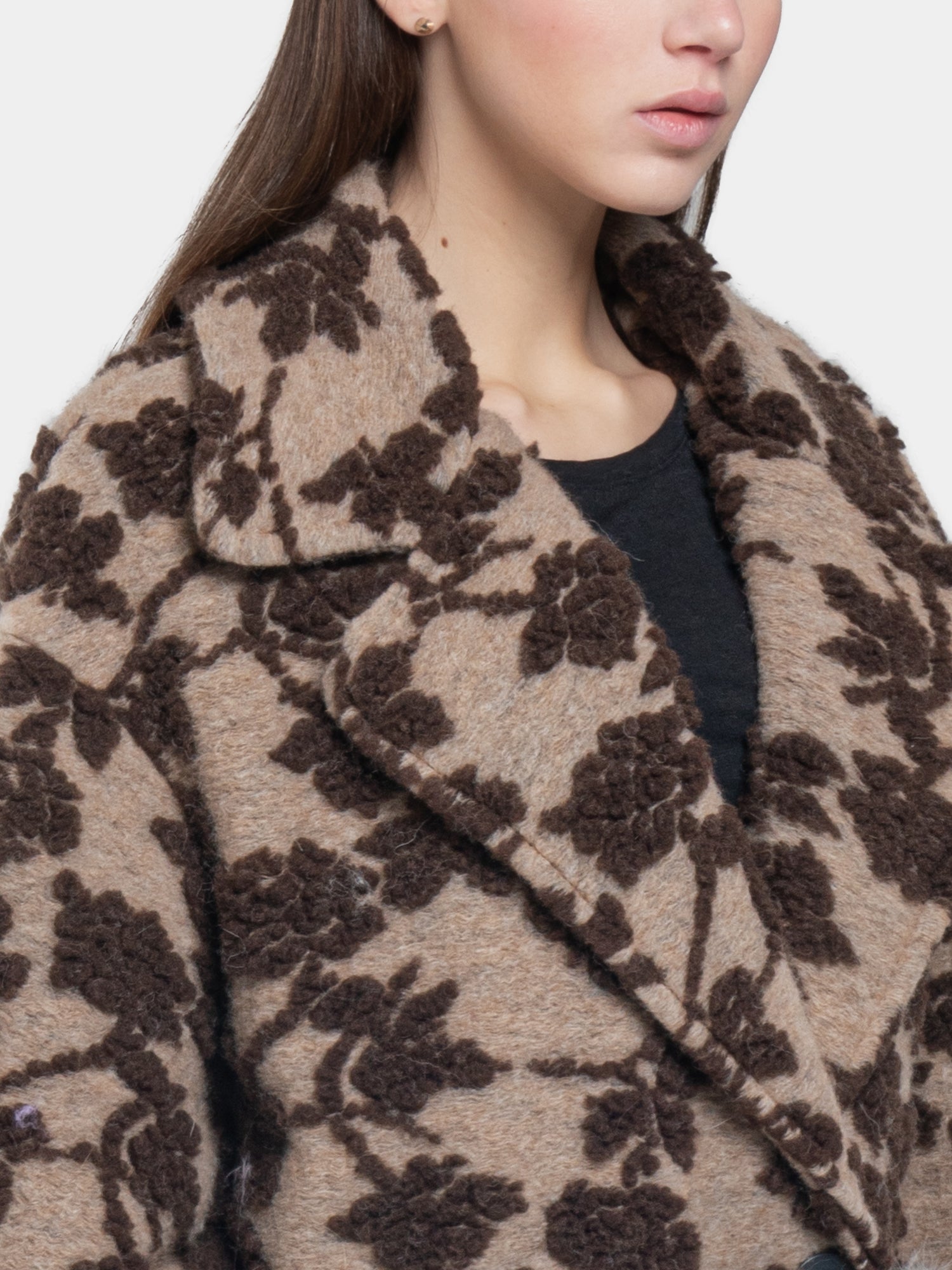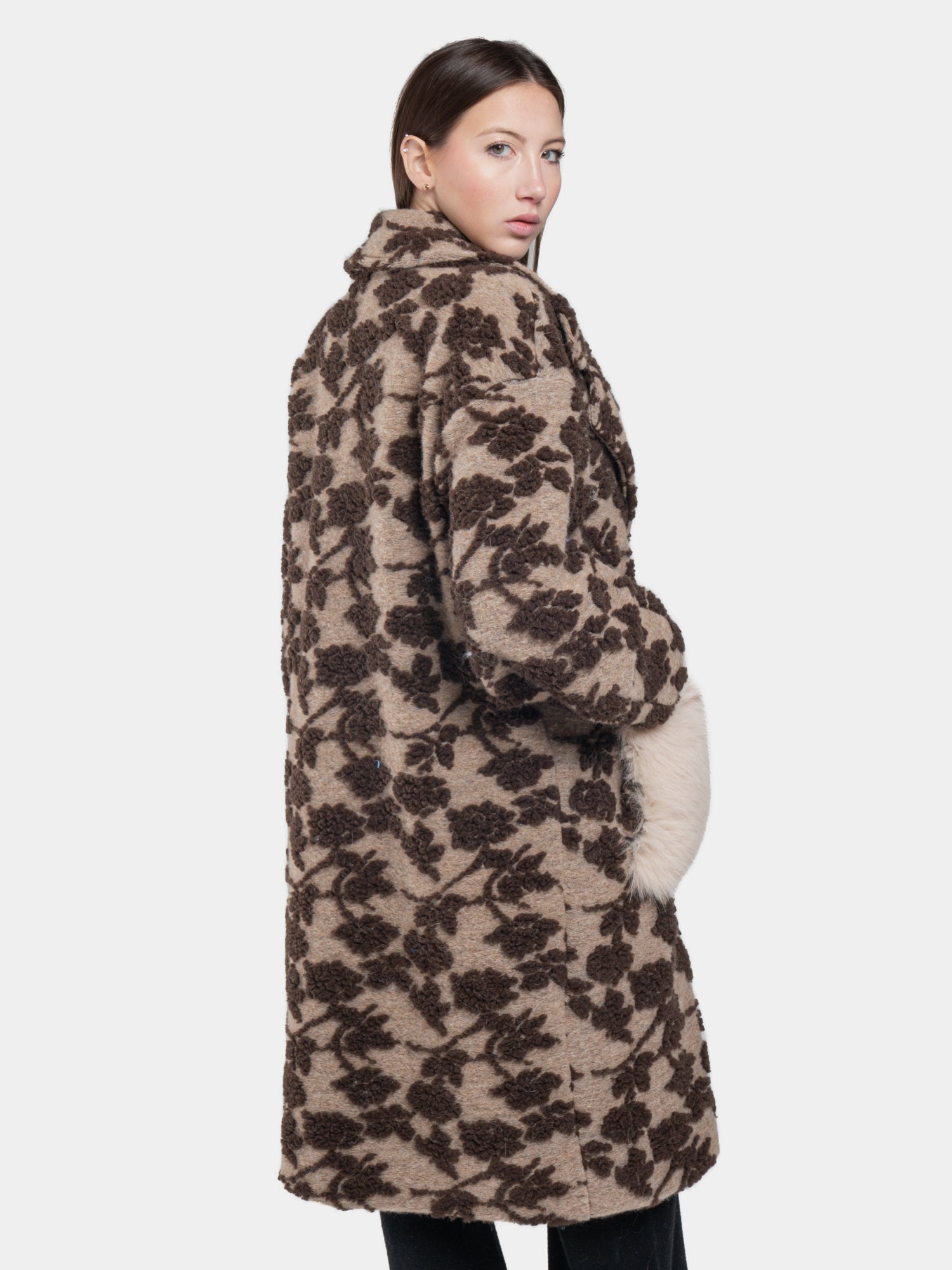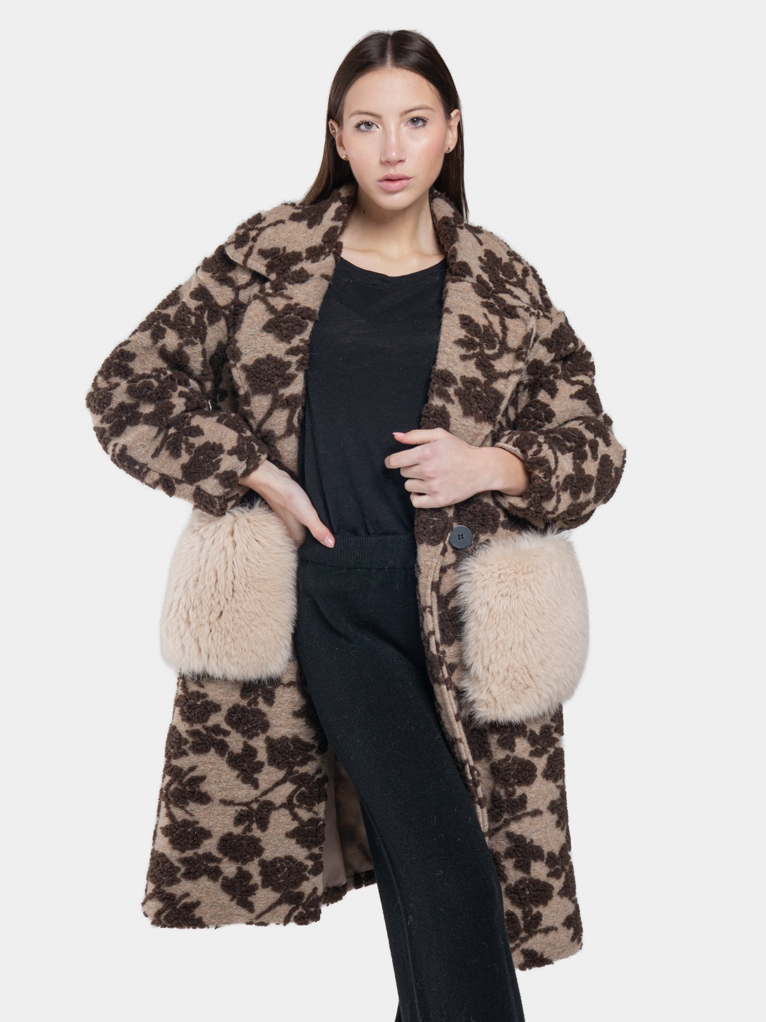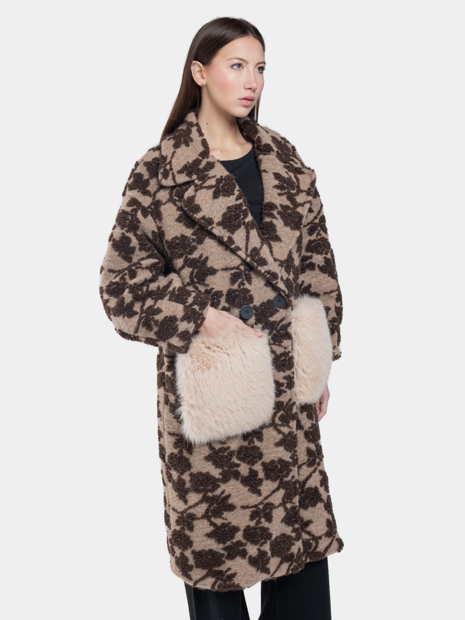 Aquí está el pequeño abrigo de flores con bolsillos de zorro.