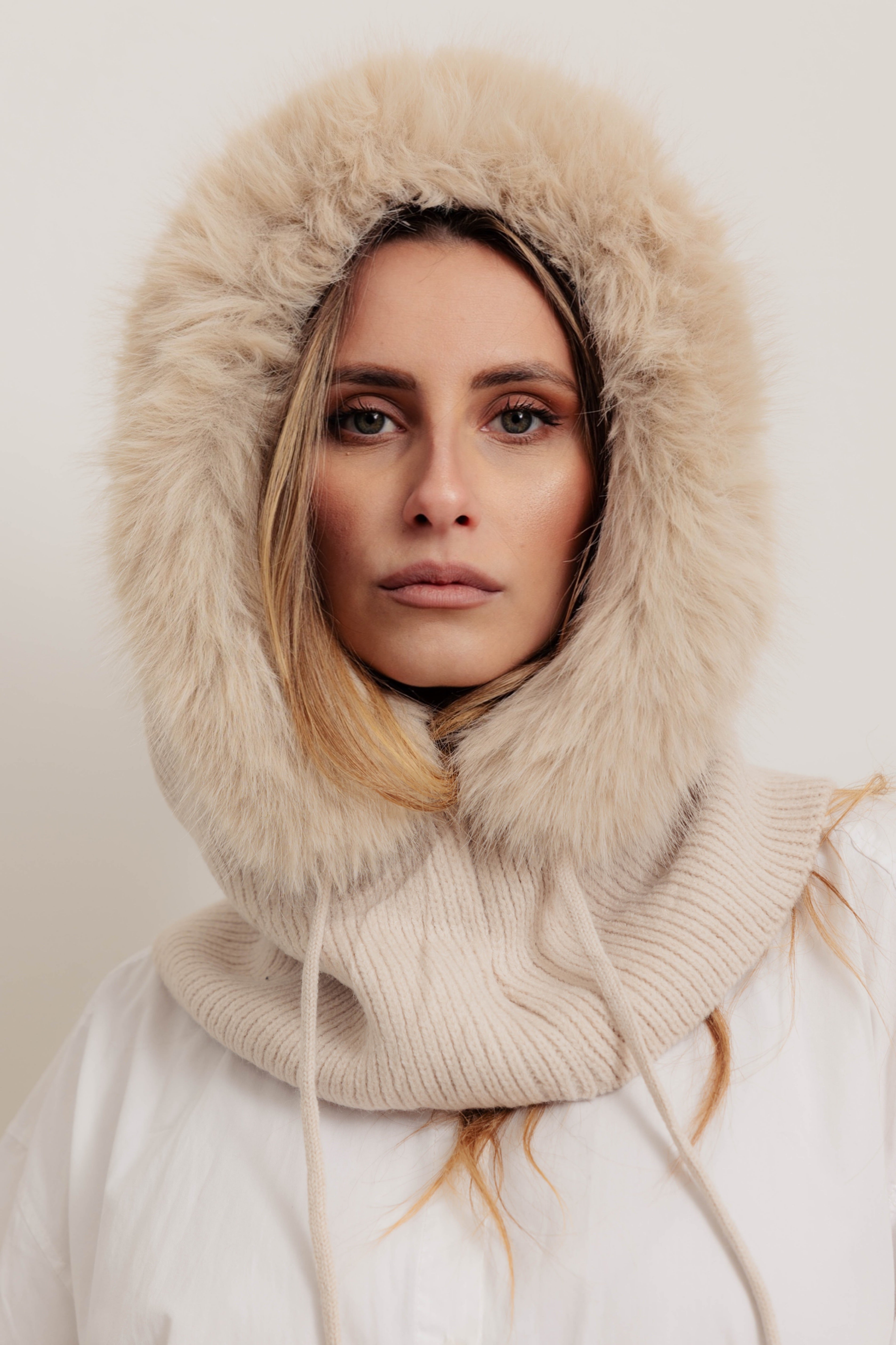 SVEZIA - Balaclava bordatura ecopelliccia (Beige)