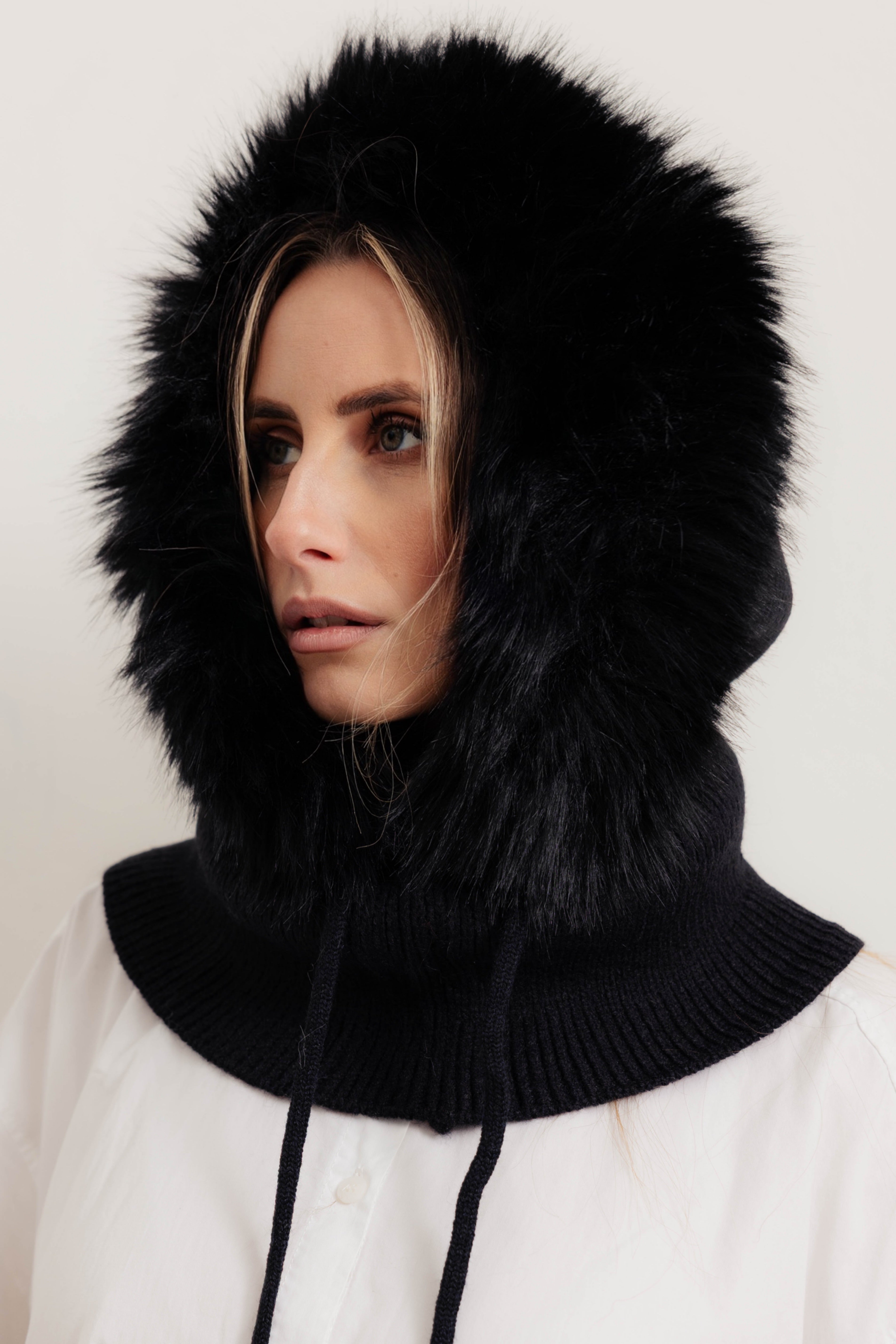 SVEZIA - Balaclava bordatura ecopelliccia (Nero)