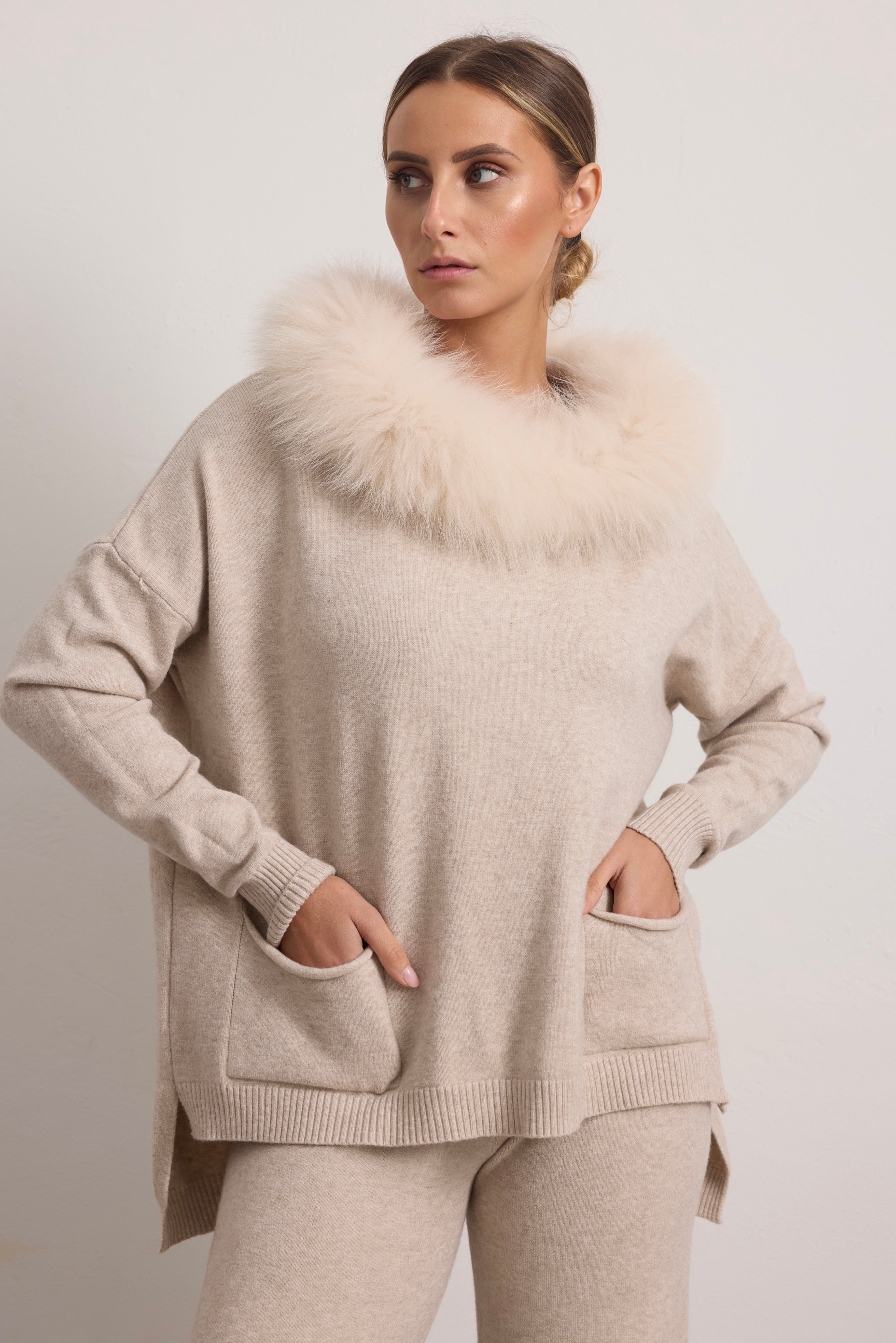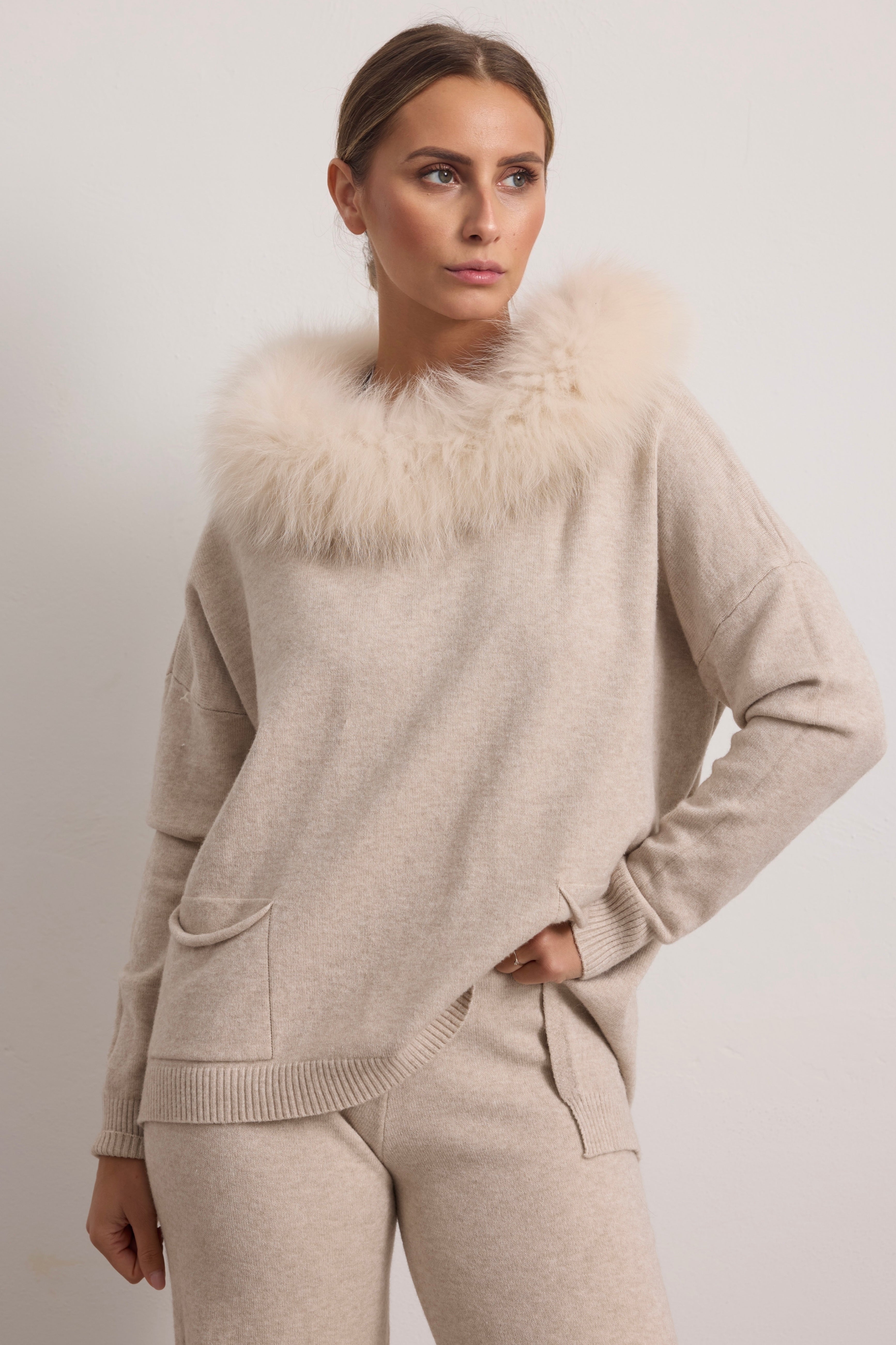 ISCHIA - Completo con bordatura su cappuccio in volpe (Sabbia)