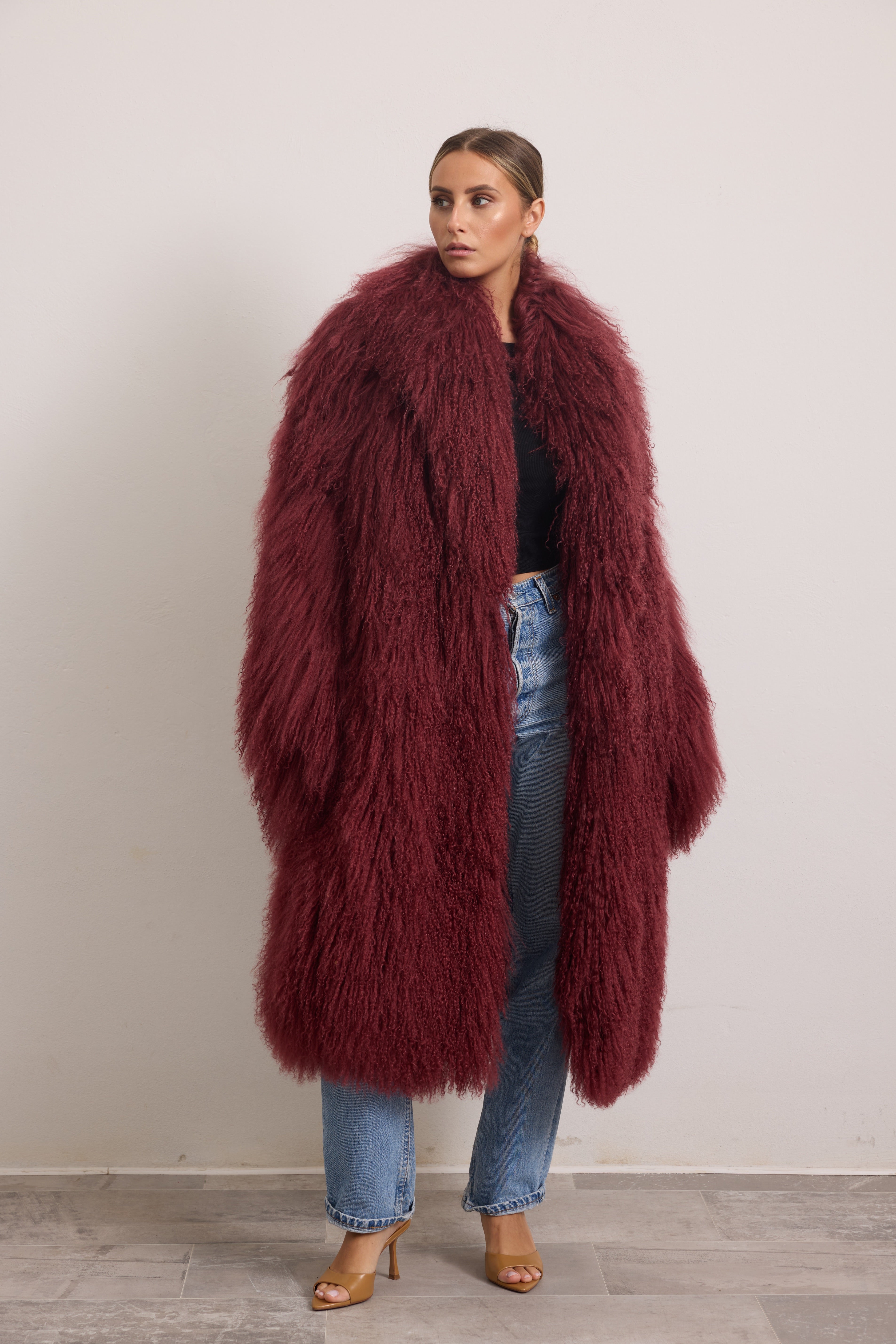 NEPAL - Cappotto lungo in mongolia (Bordeaux)