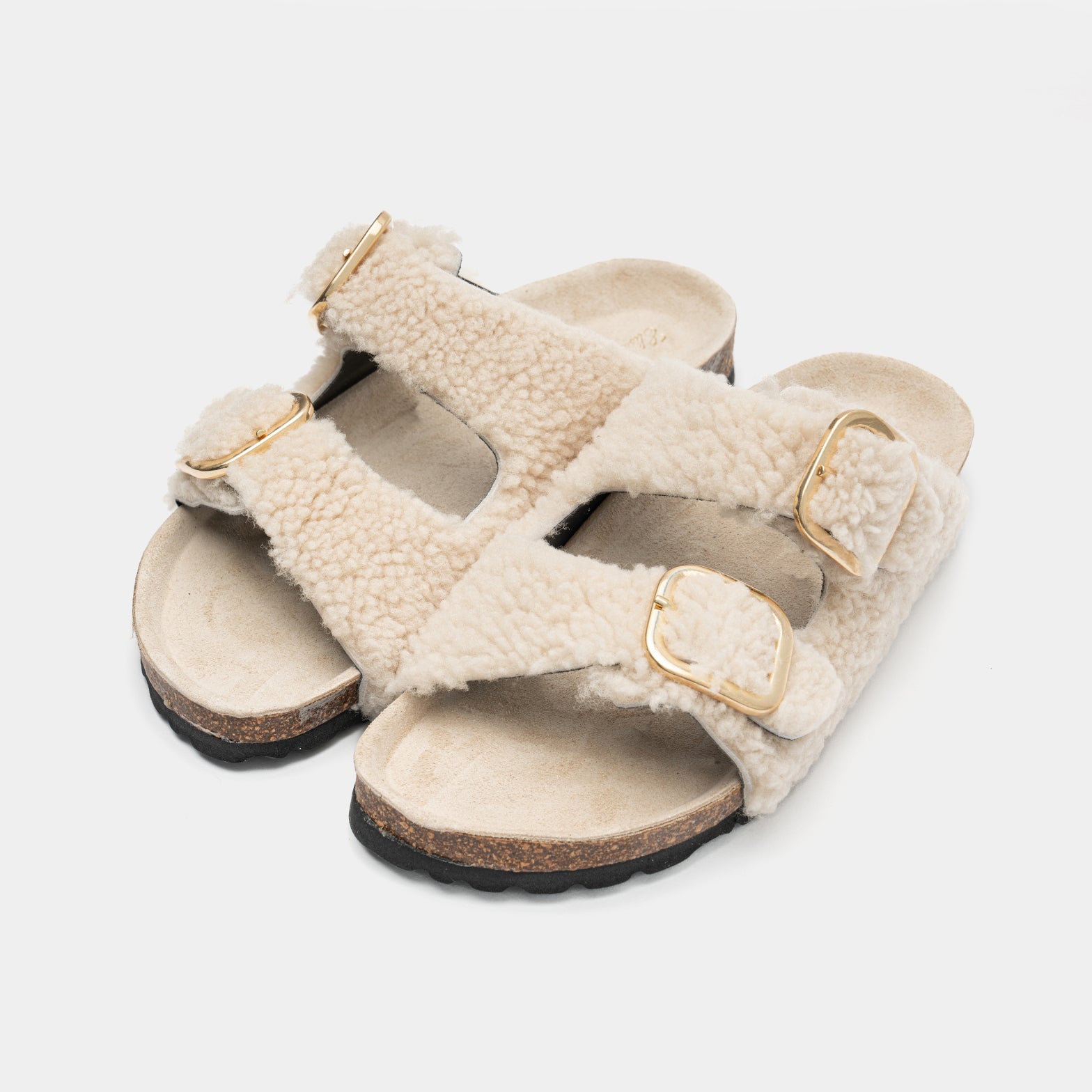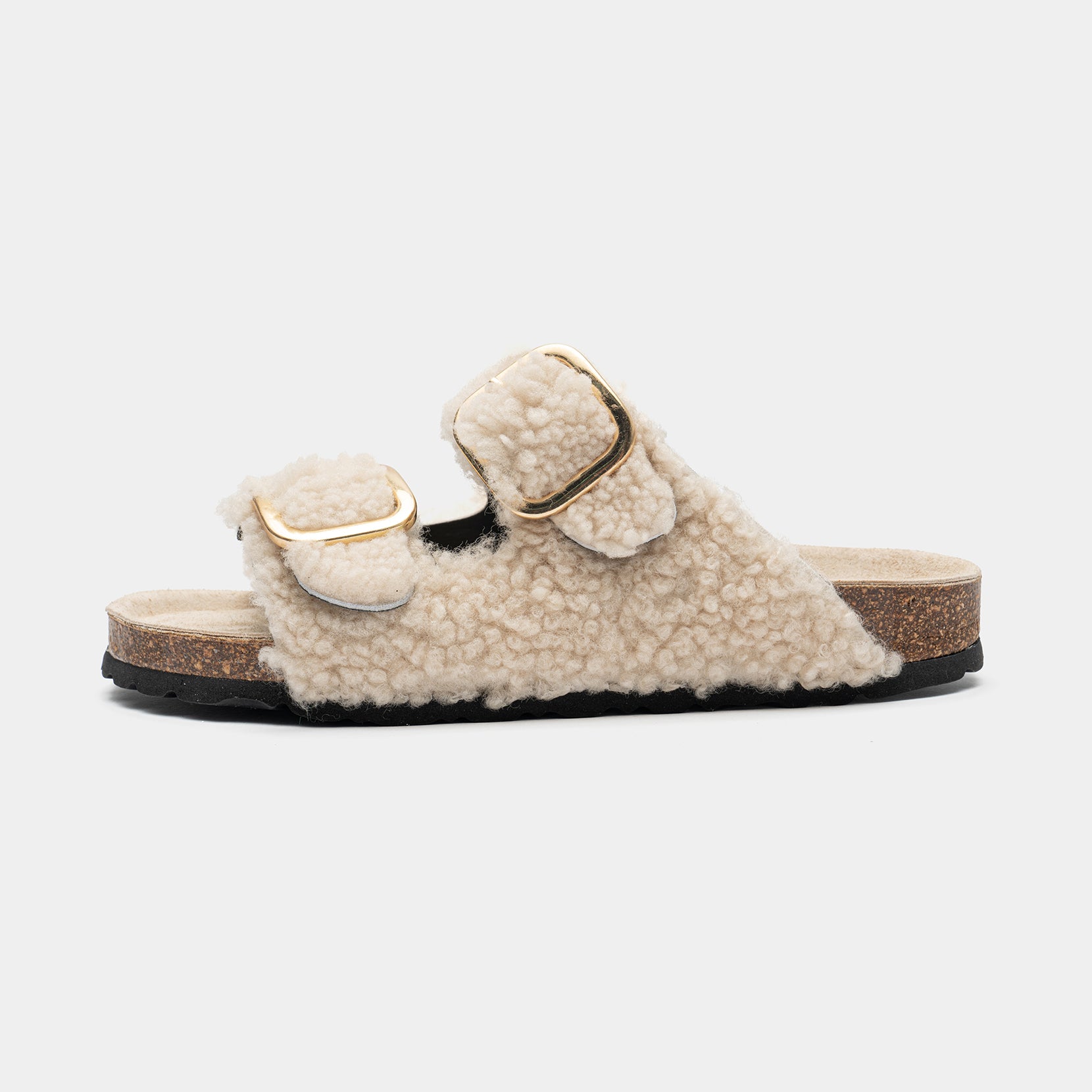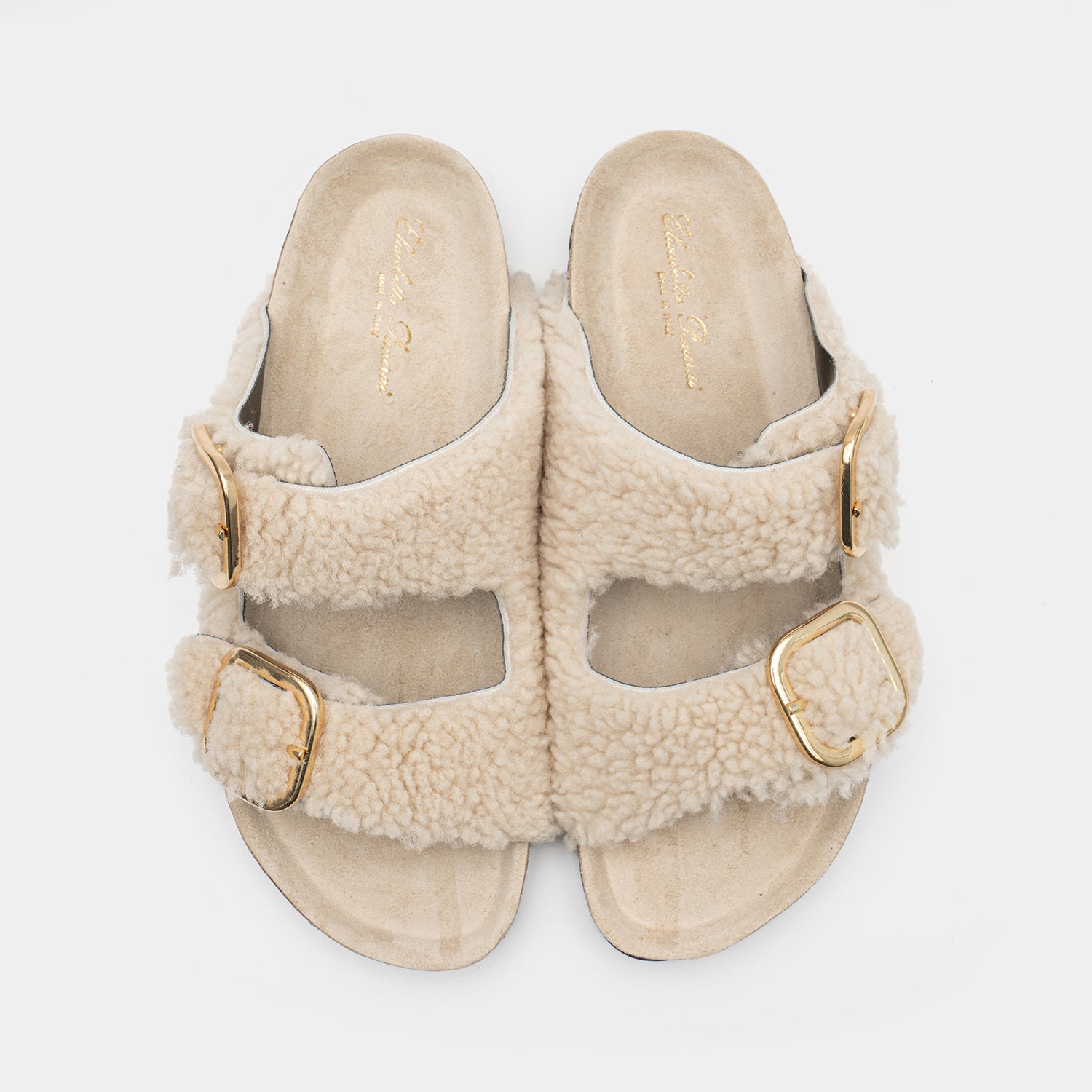 Un modelo clásico, enriquecido por el manto de oveja de Elisabetta Panerai, cómodo gracias a la tapicería de cuero y la suela inconfundible en el corcho real.