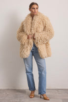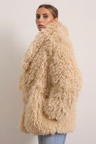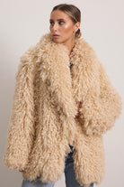 Giacca corta in folta ecopelliccia con collo reverse e manica regolare.