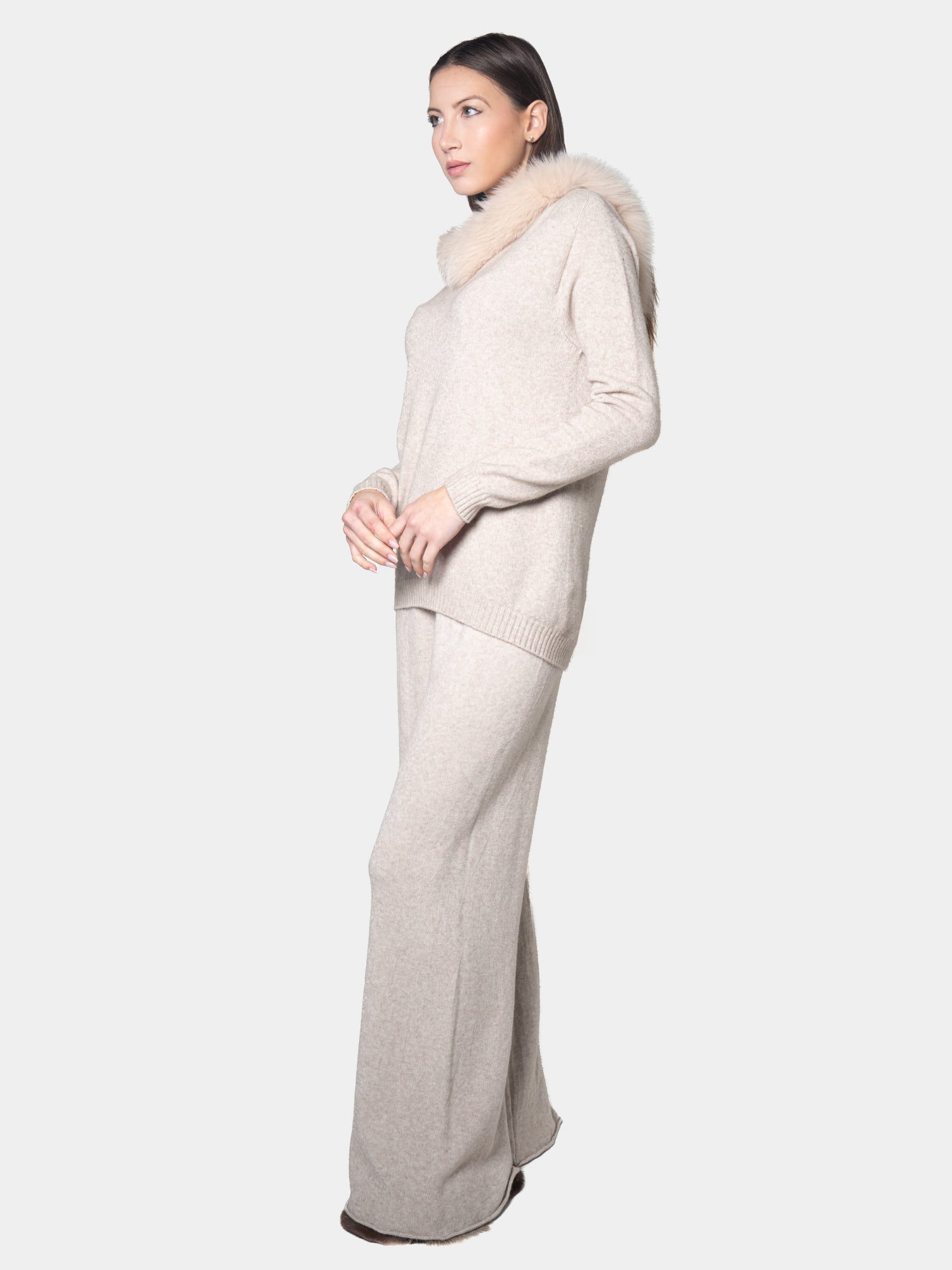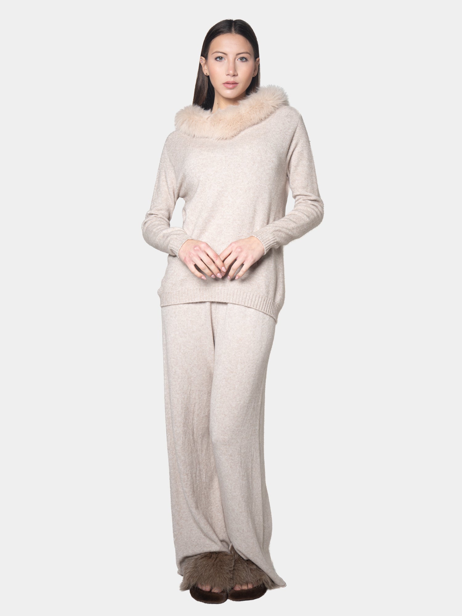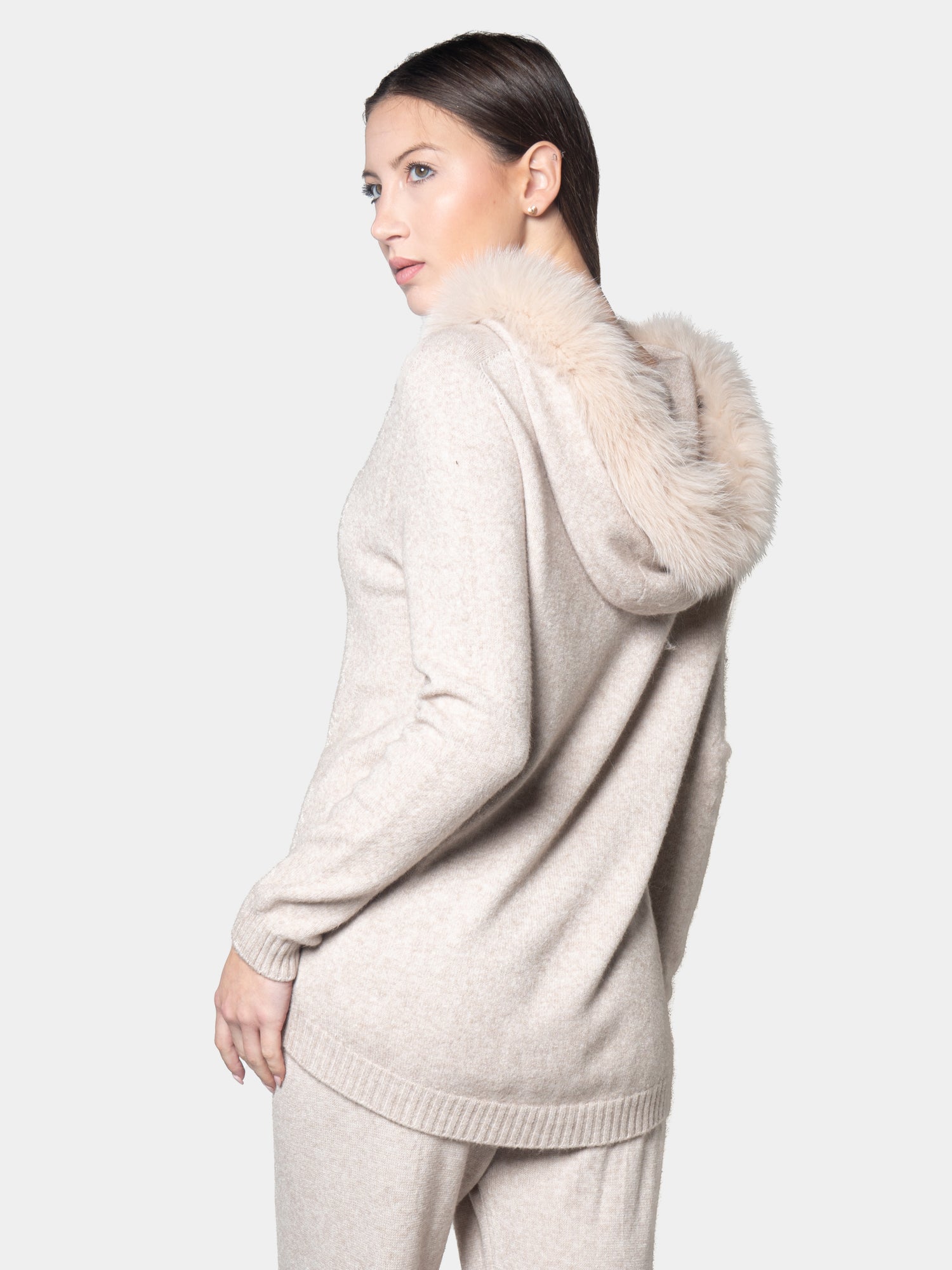 Traje de viscosa mixta con zorro de zorro que bordea el capó
