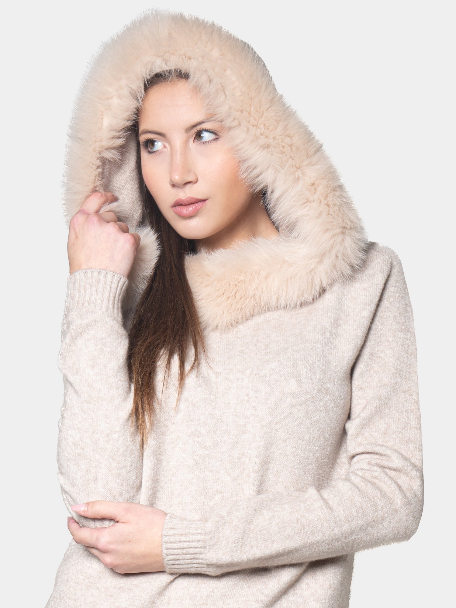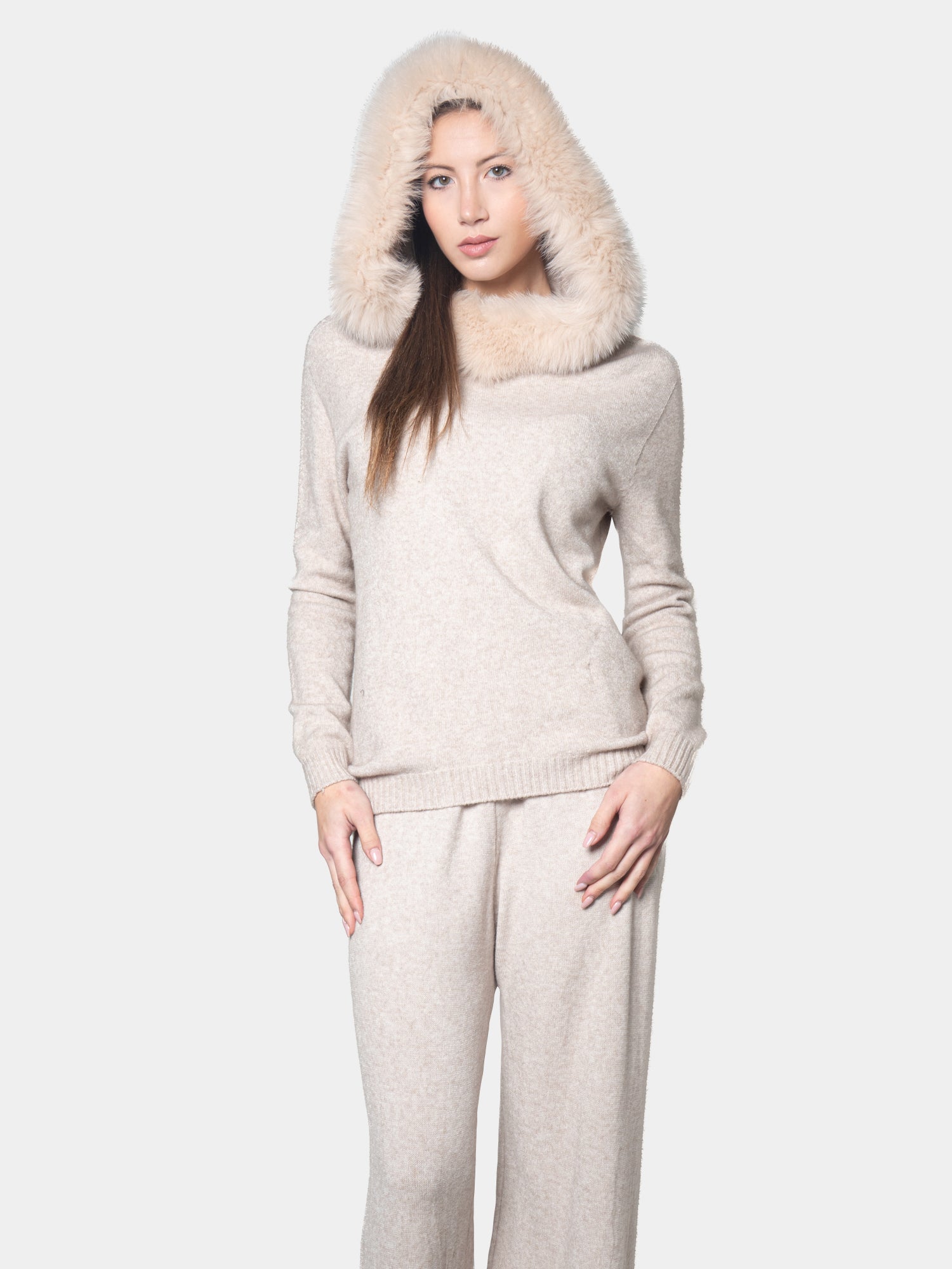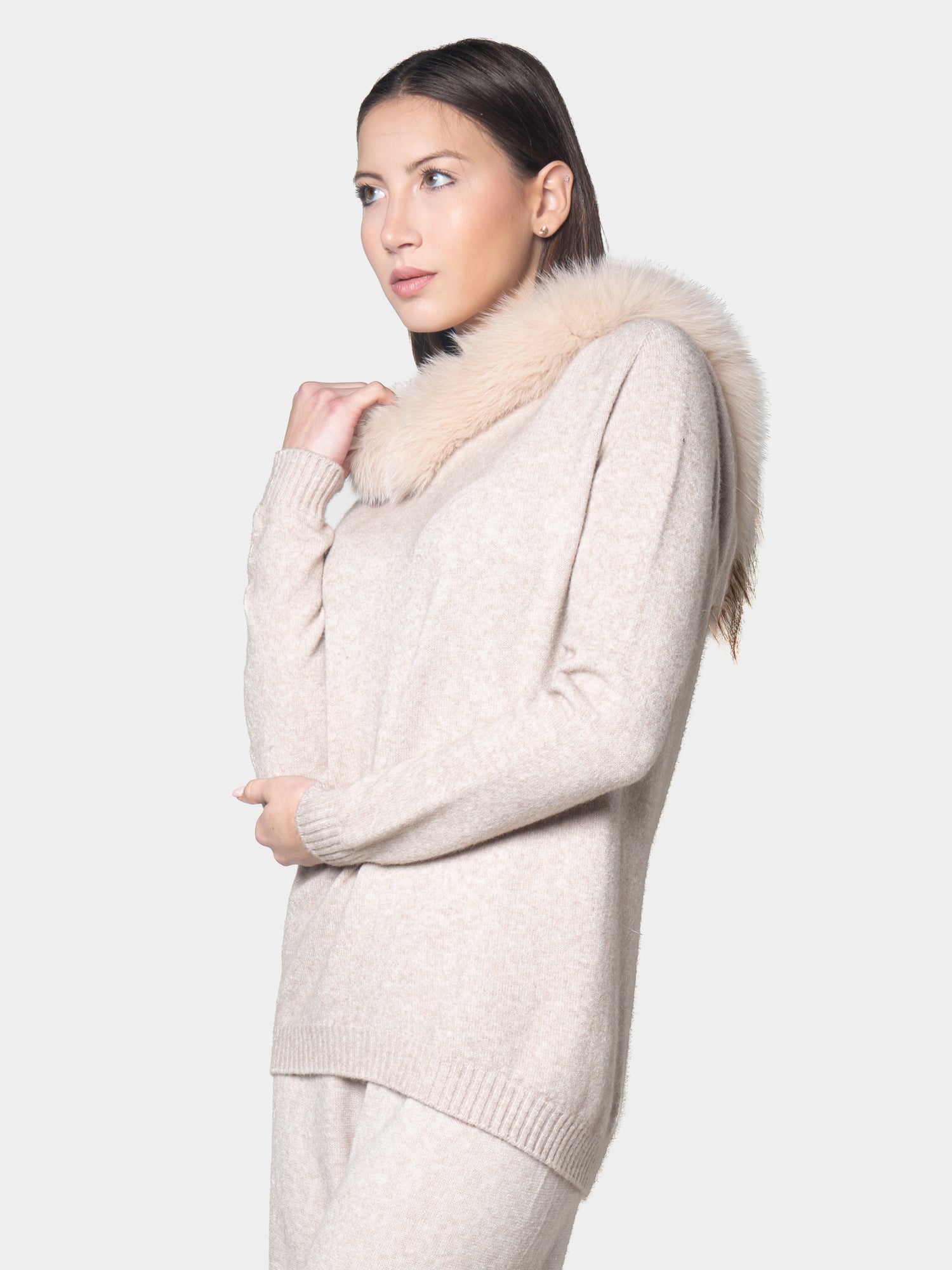 Traje de viscosa mixta con zorro de zorro que bordea el capó