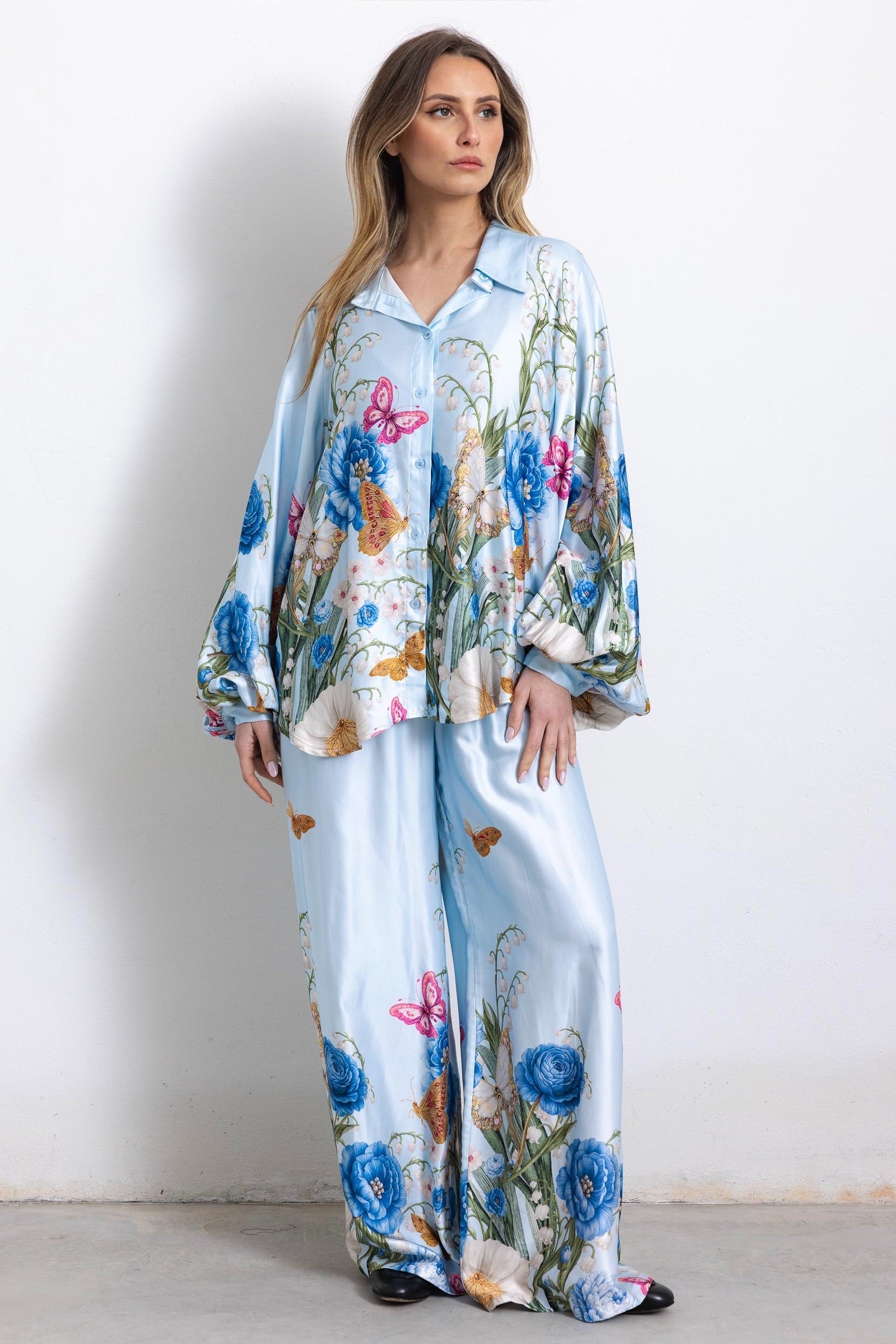 Nuovissima fantasia per il nostro coordinato Siracusa, dai richiami bucolici. In sei bellissimi colori, con pantalone svasato, elastico in vita e camicetta con abbottonatura frontale e colletto regolare.