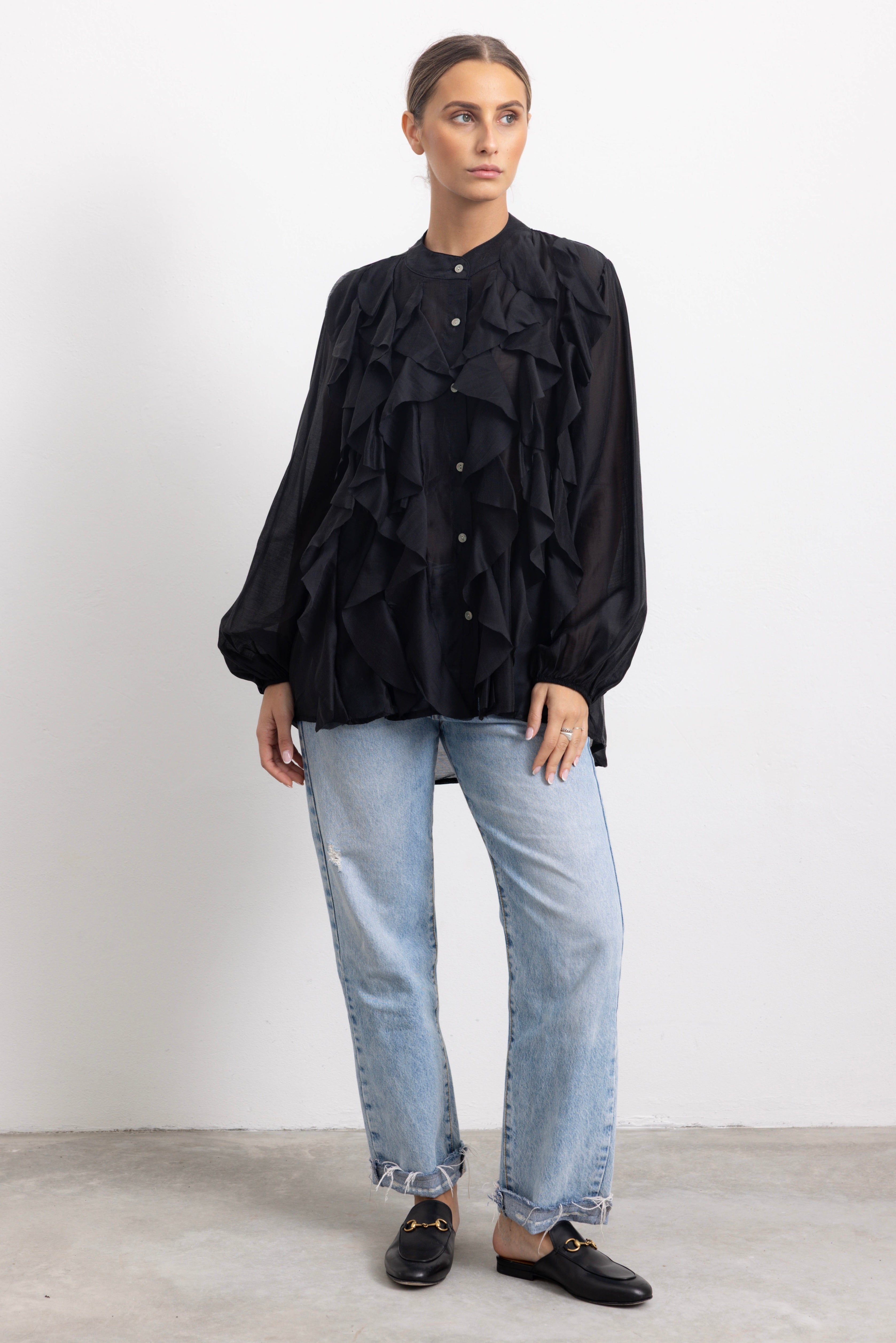 La camicia Tango è la nuova arrivata in casa Elisabetta Panerai. Disponibile in più fantasie. Si presenta come una regolare camicia, bottoni e rouches frontali, ed elegante colletto. La caratterizzano il retro più lungo rispetto alla parte frontale.