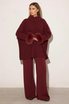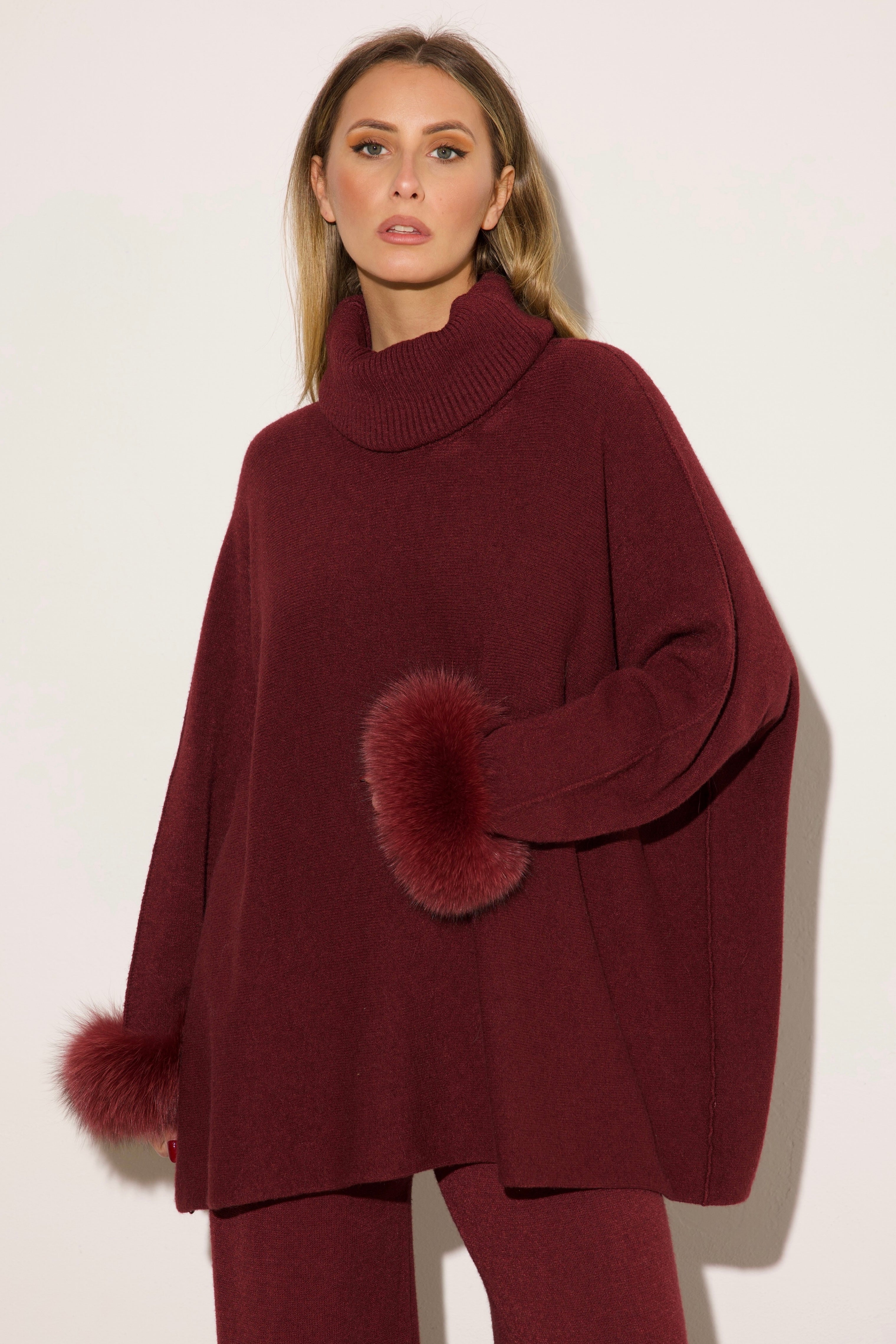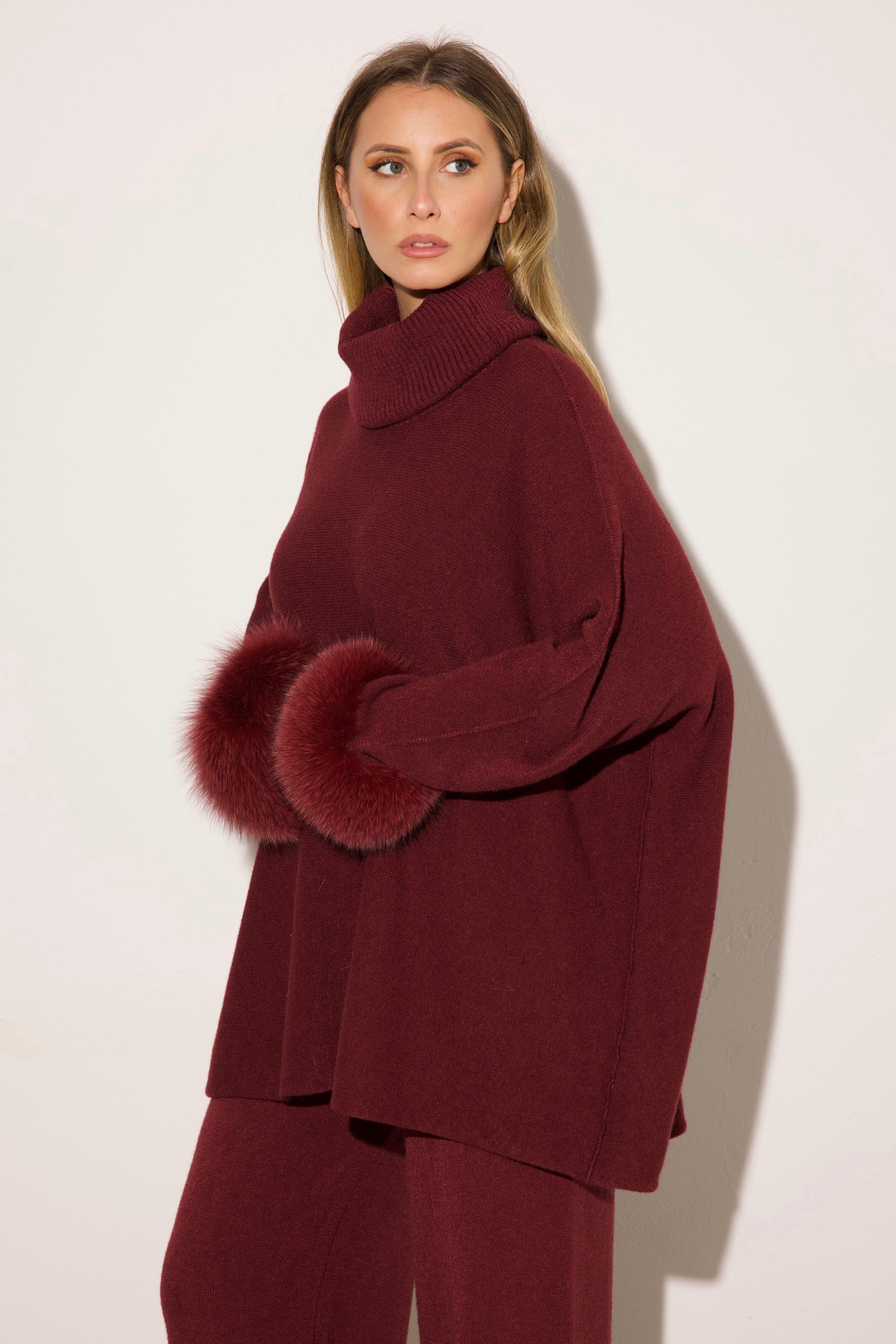 VENEZIA - Completo collo alto polsini in volpe (Bordeaux)