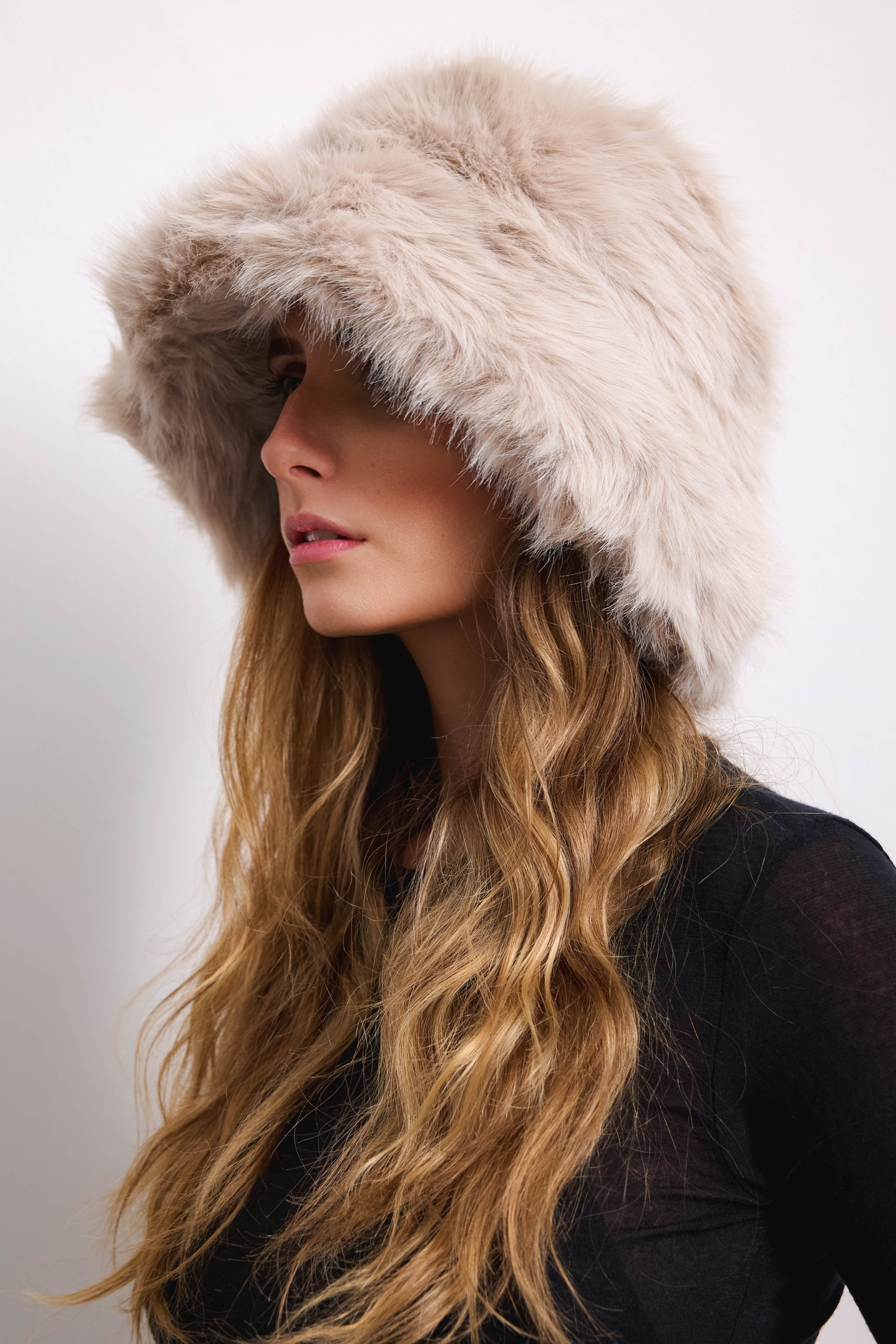 CALCUTTA - Cappello bucket ecopelliccia (Sabbia)