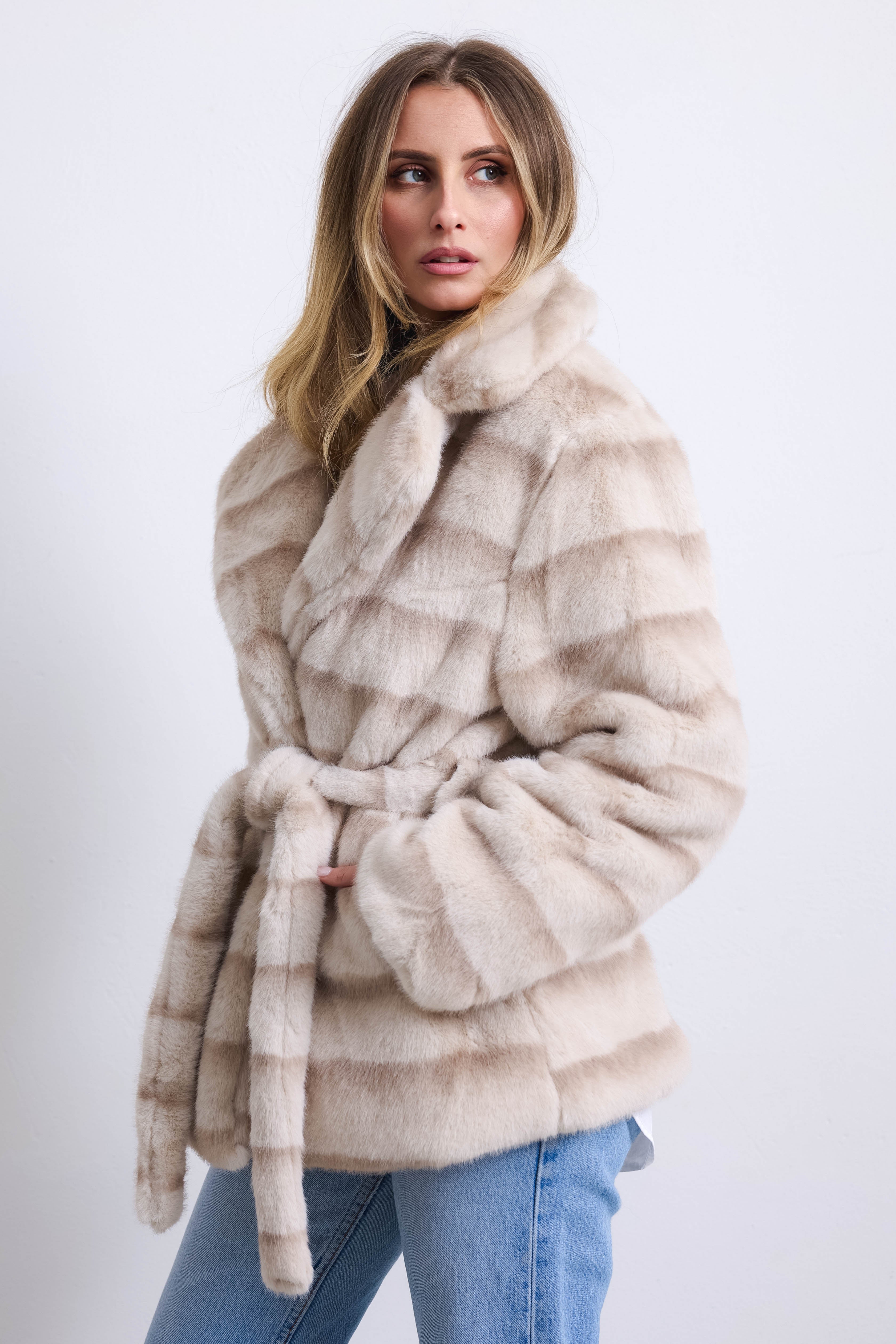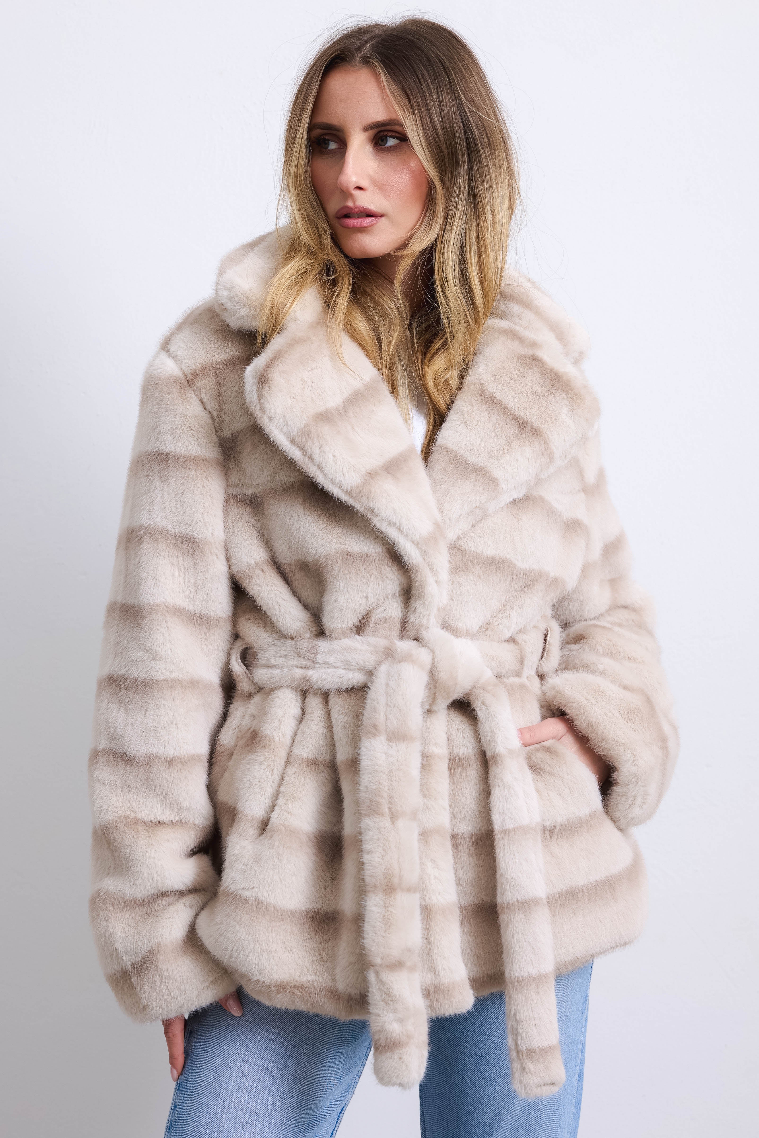 POLARE - Giacca pelo liscio ecopelliccia (Sabbia)