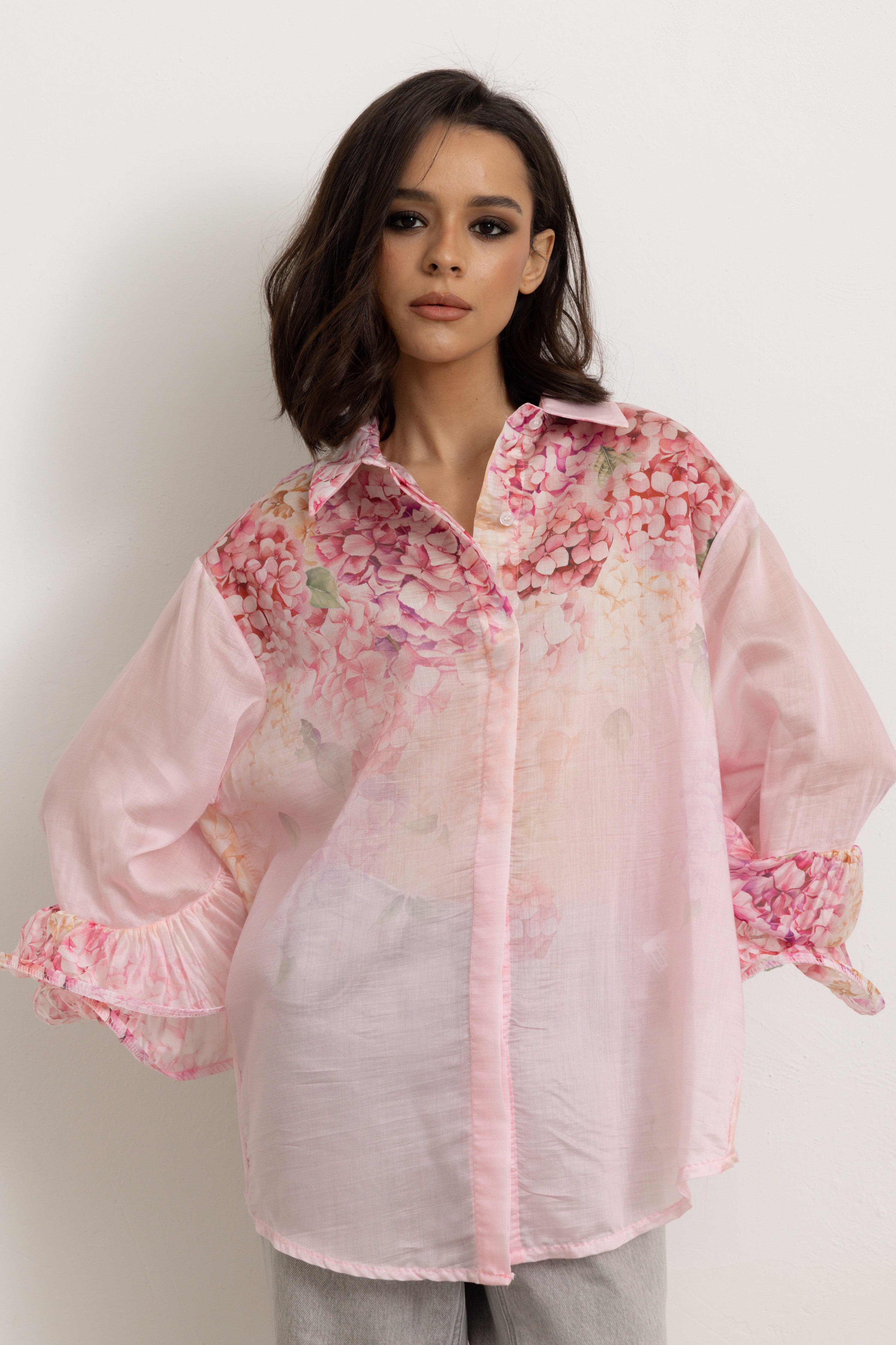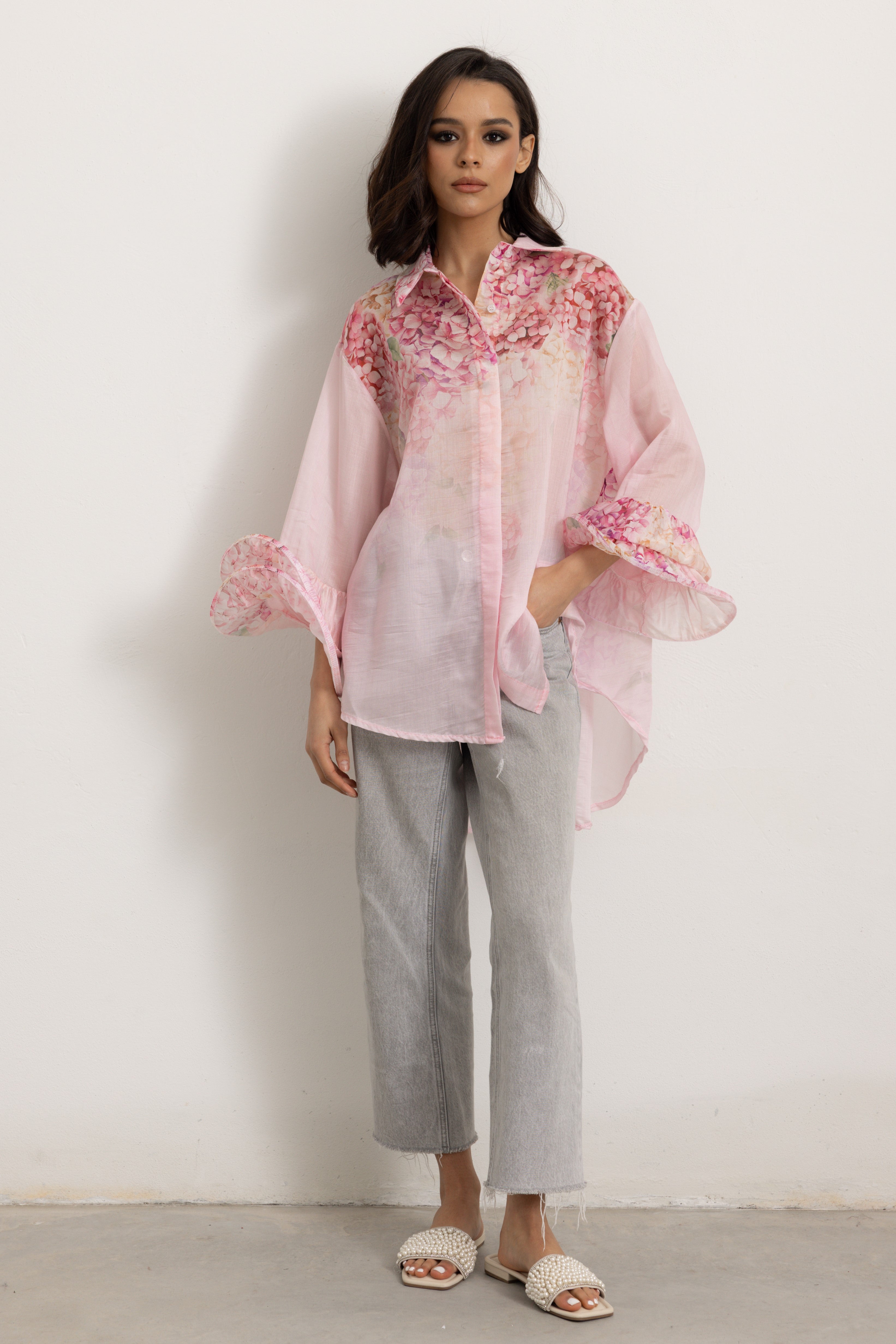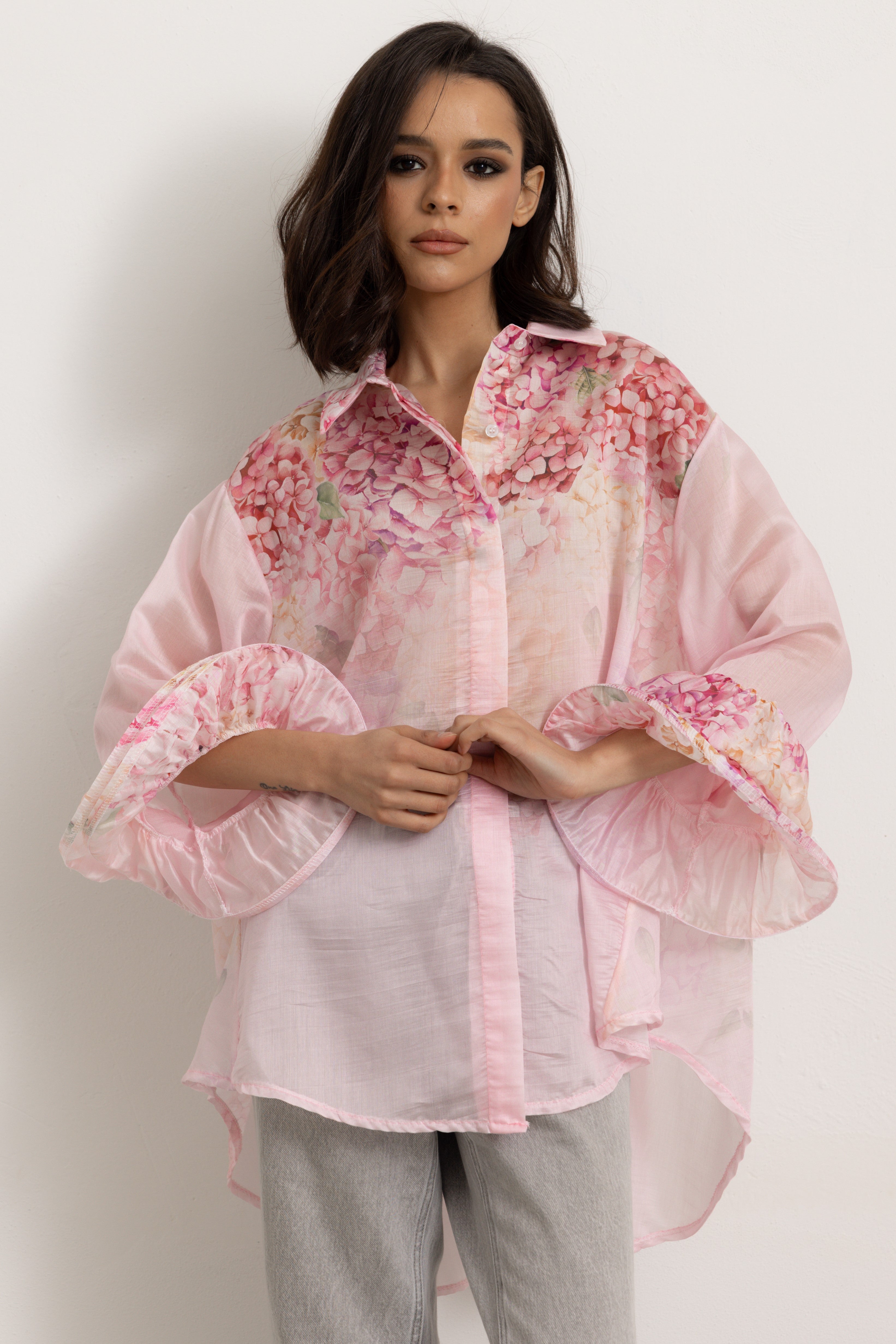 La Camicia con Maniche Volant è un capolavoro sartoriale, pensata per la donna moderna che desidera un tocco di eleganza e freschezza nel suo guardaroba. Questa camicia è l'essenza del lusso discreto e della raffinatezza, un pezzo unico che non passa inosservato.