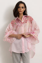 • Maniche Volant: le maniche volant di questa camicia sono una celebrazione della femminilità. Realizzate con una cura minuziosa, presentano morbide onde di tessuto che cadono leggermente sopra il gomito, creando un movimento fluido e romantico. Le pieghe sono sapientemente progettate per dare volume senza appesantire la silhouette, aggiungendo un tocco di drammaticità sofisticata ad ogni gesto.