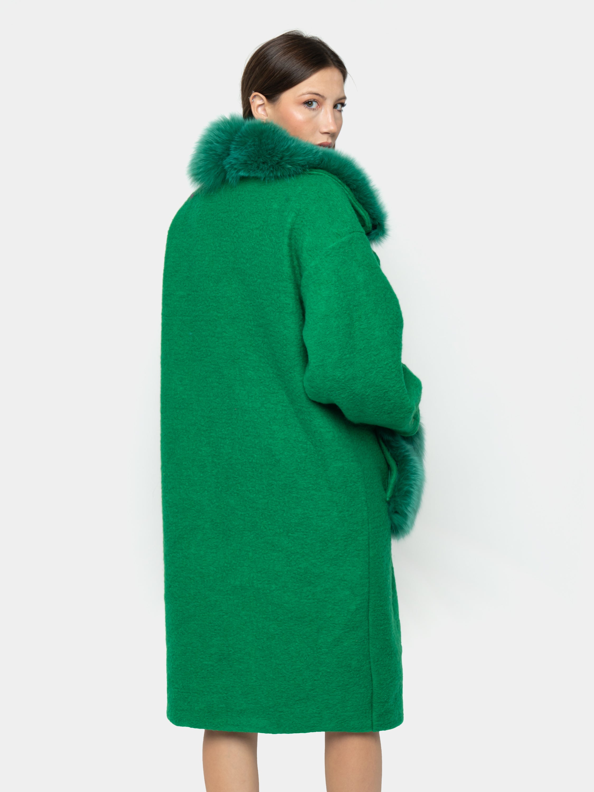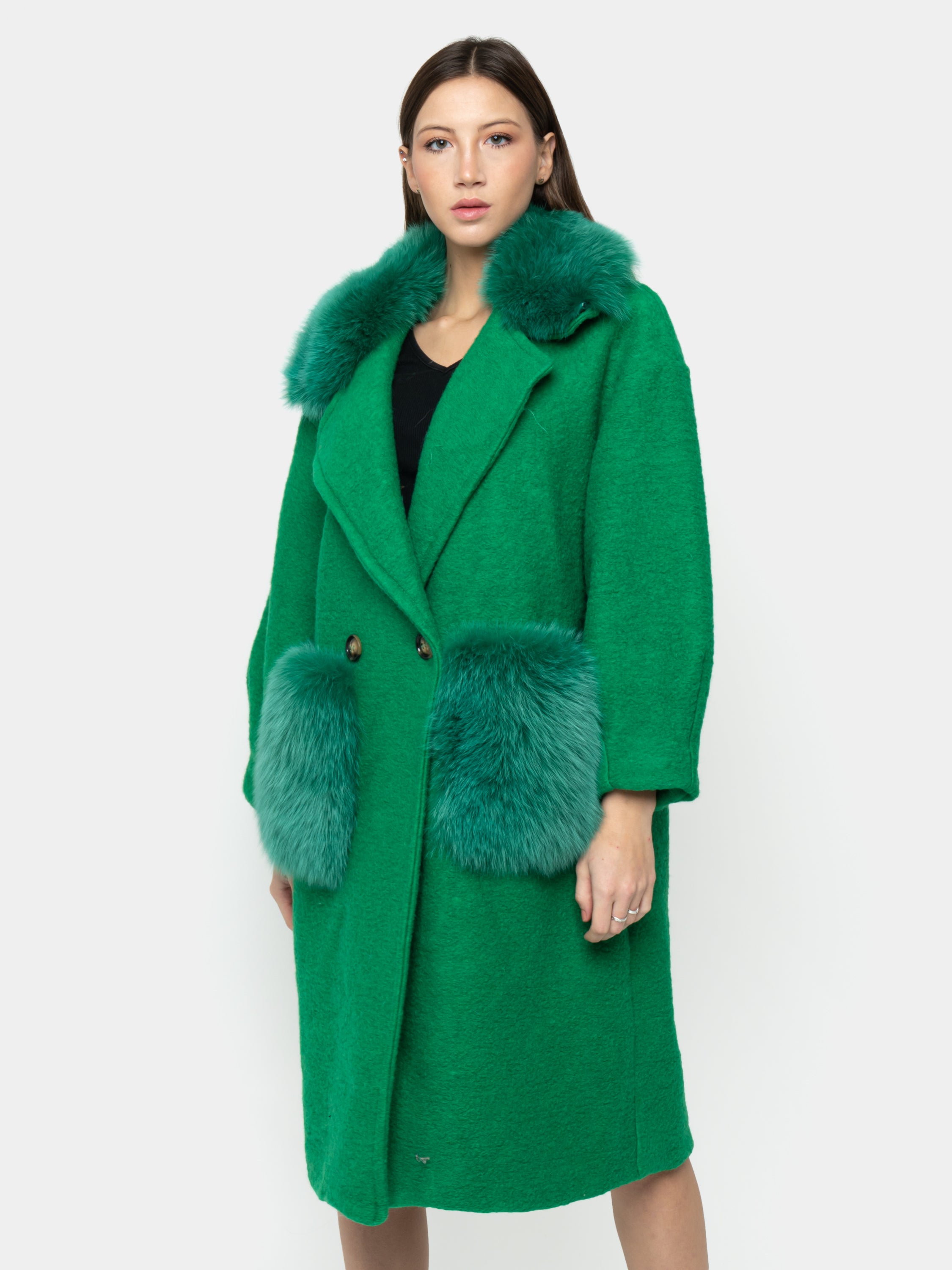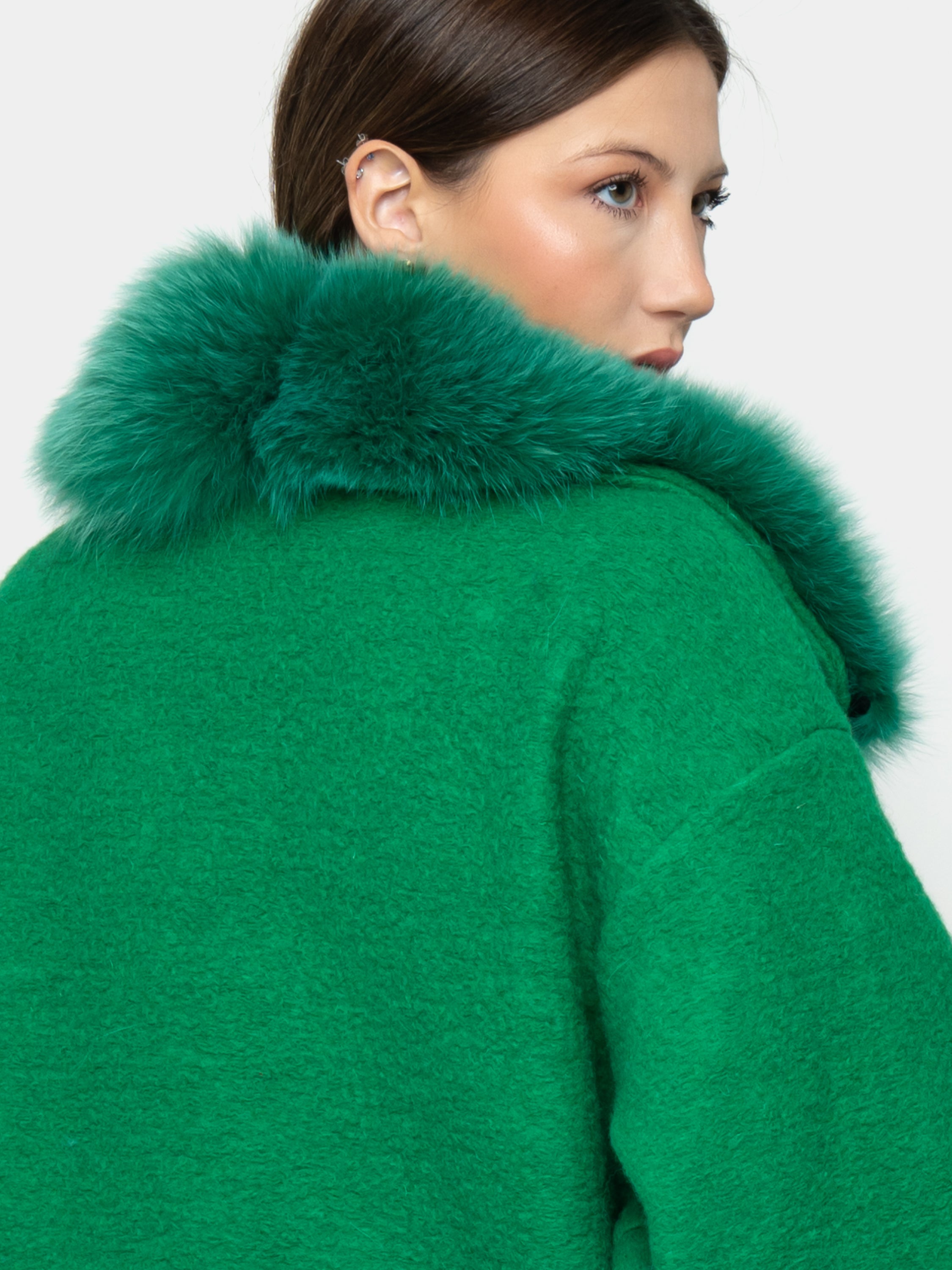 STOCCOLMA - Cappotto con tasche e bordatura collo in volpe (Verde)