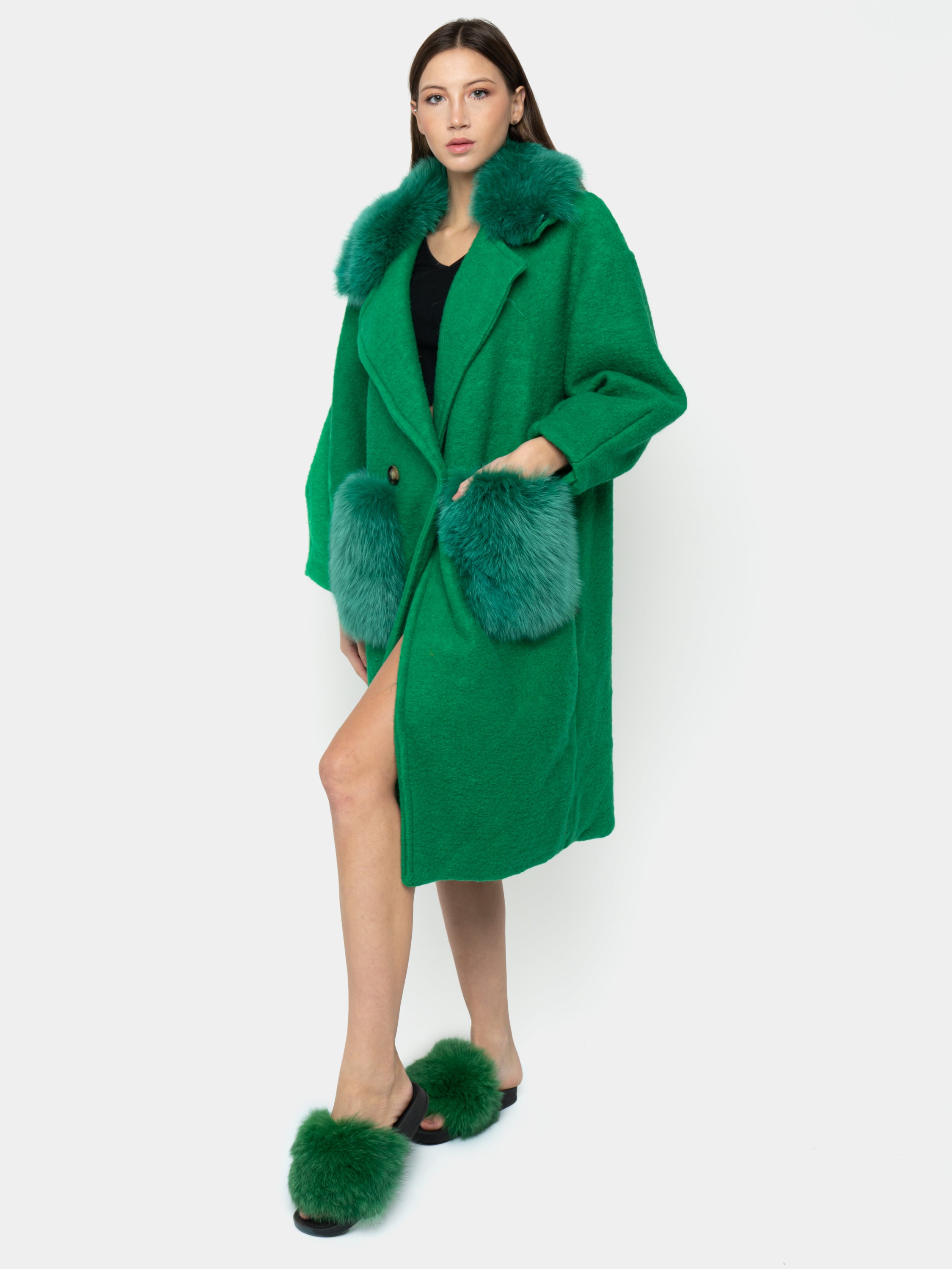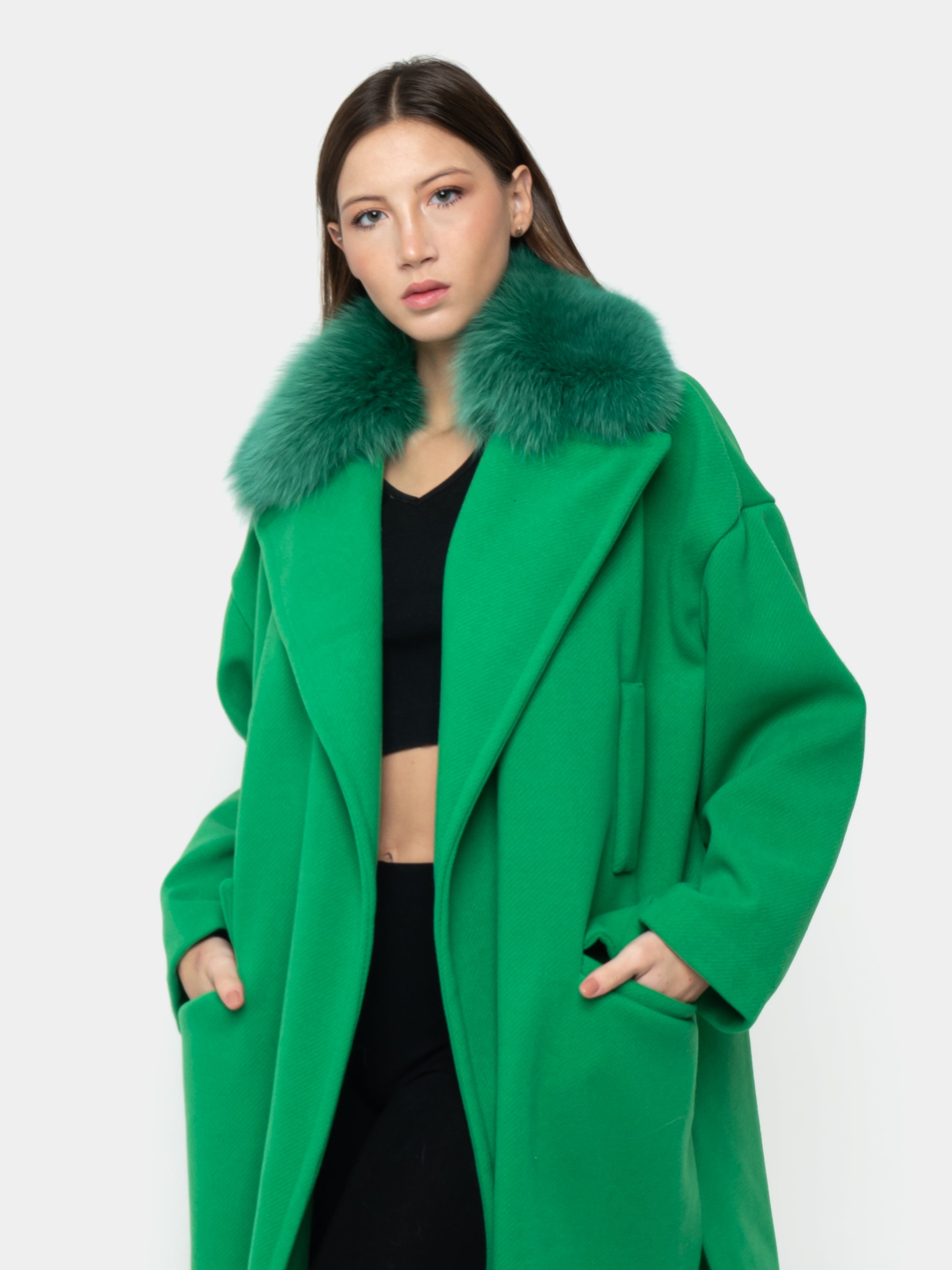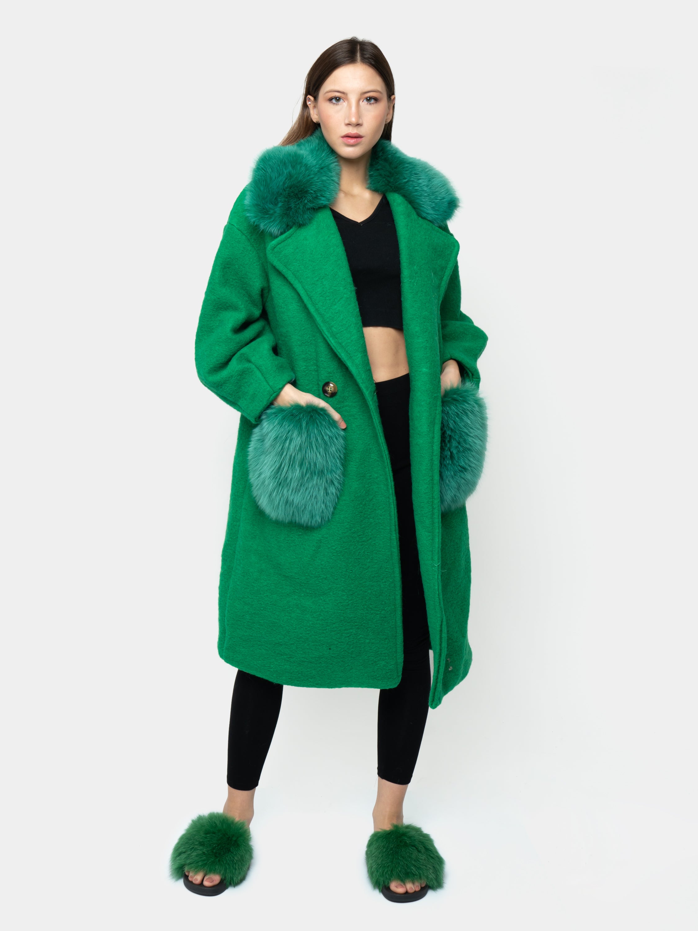 STOCCOLMA - Cappotto con tasche e bordatura collo in volpe (Verde)