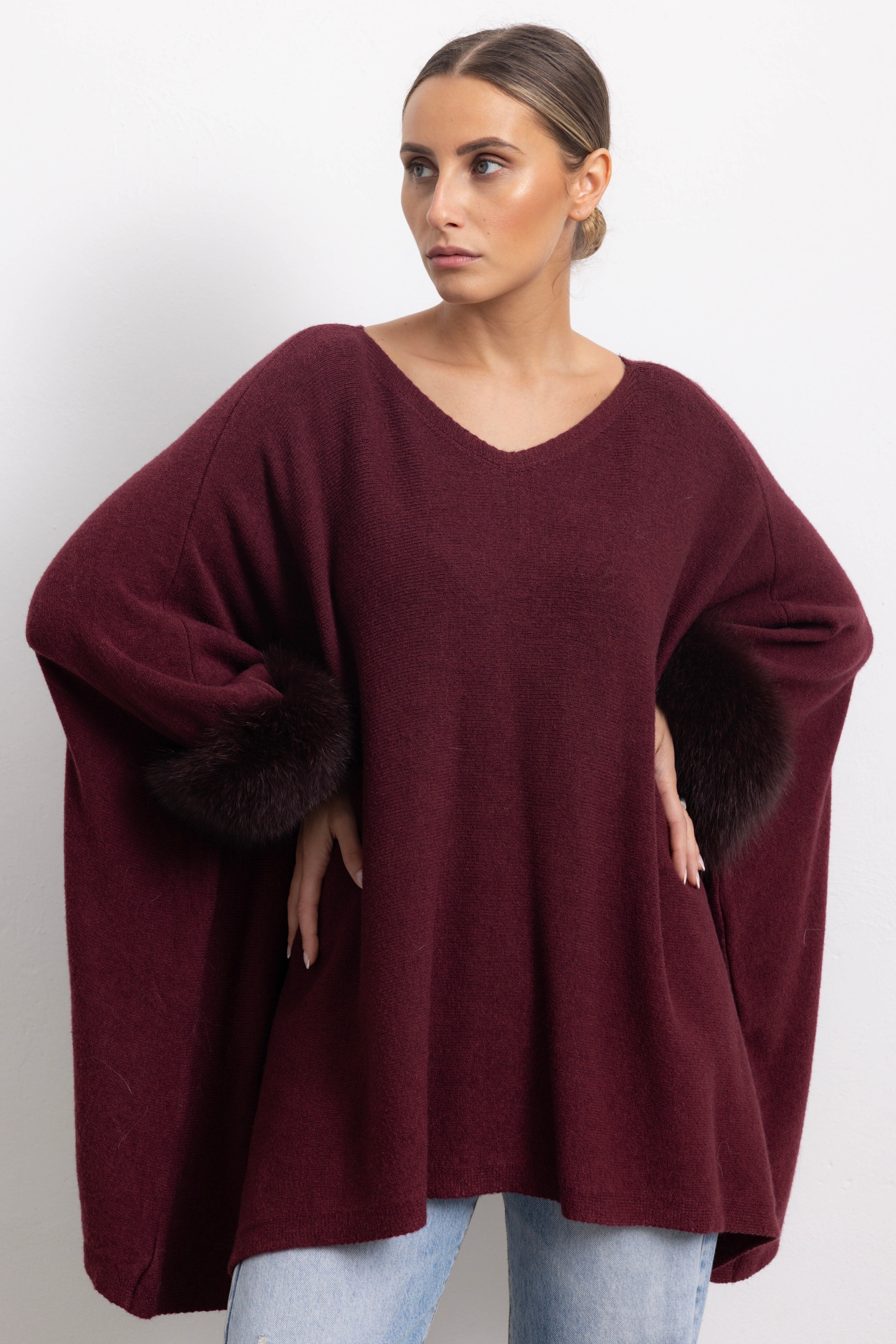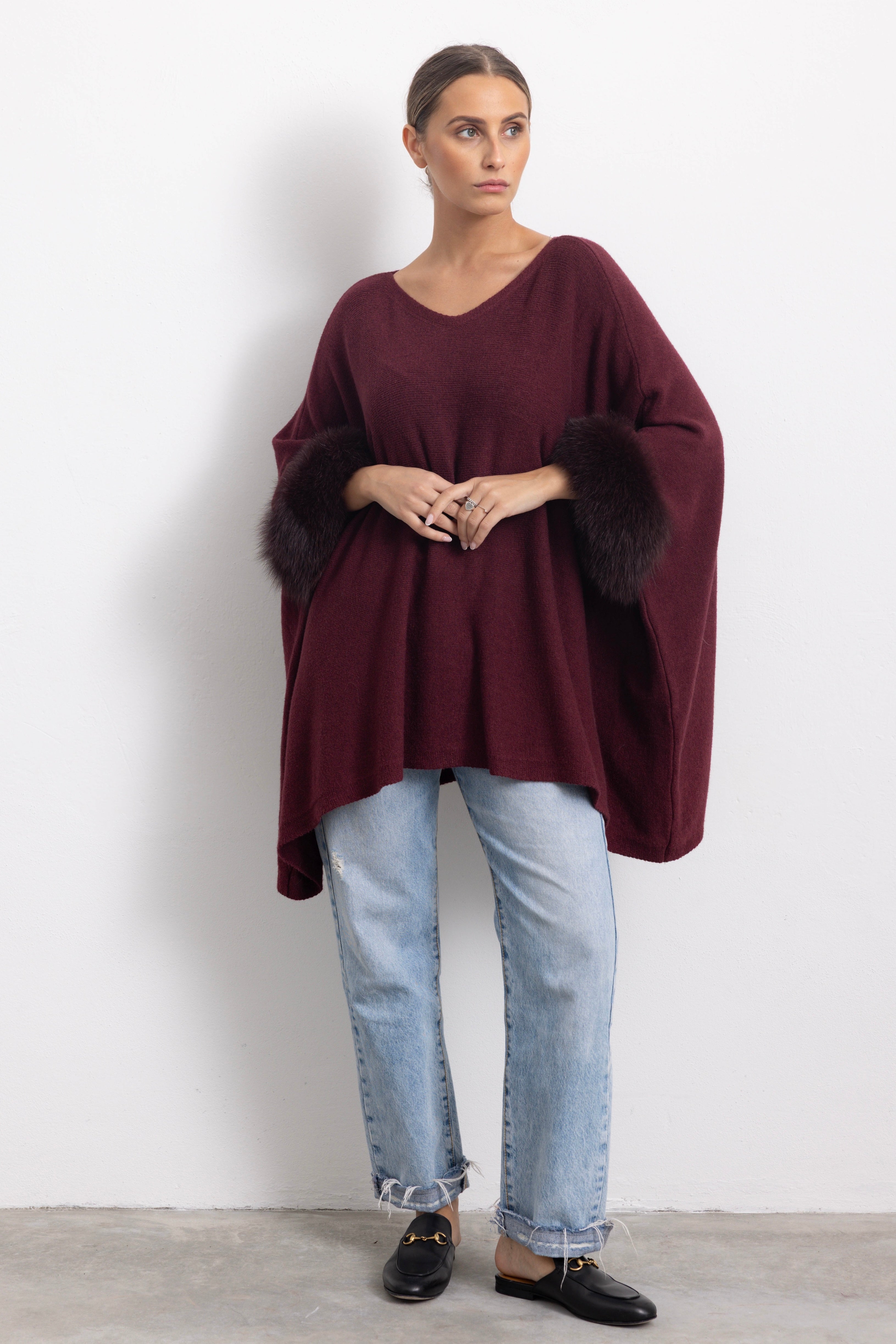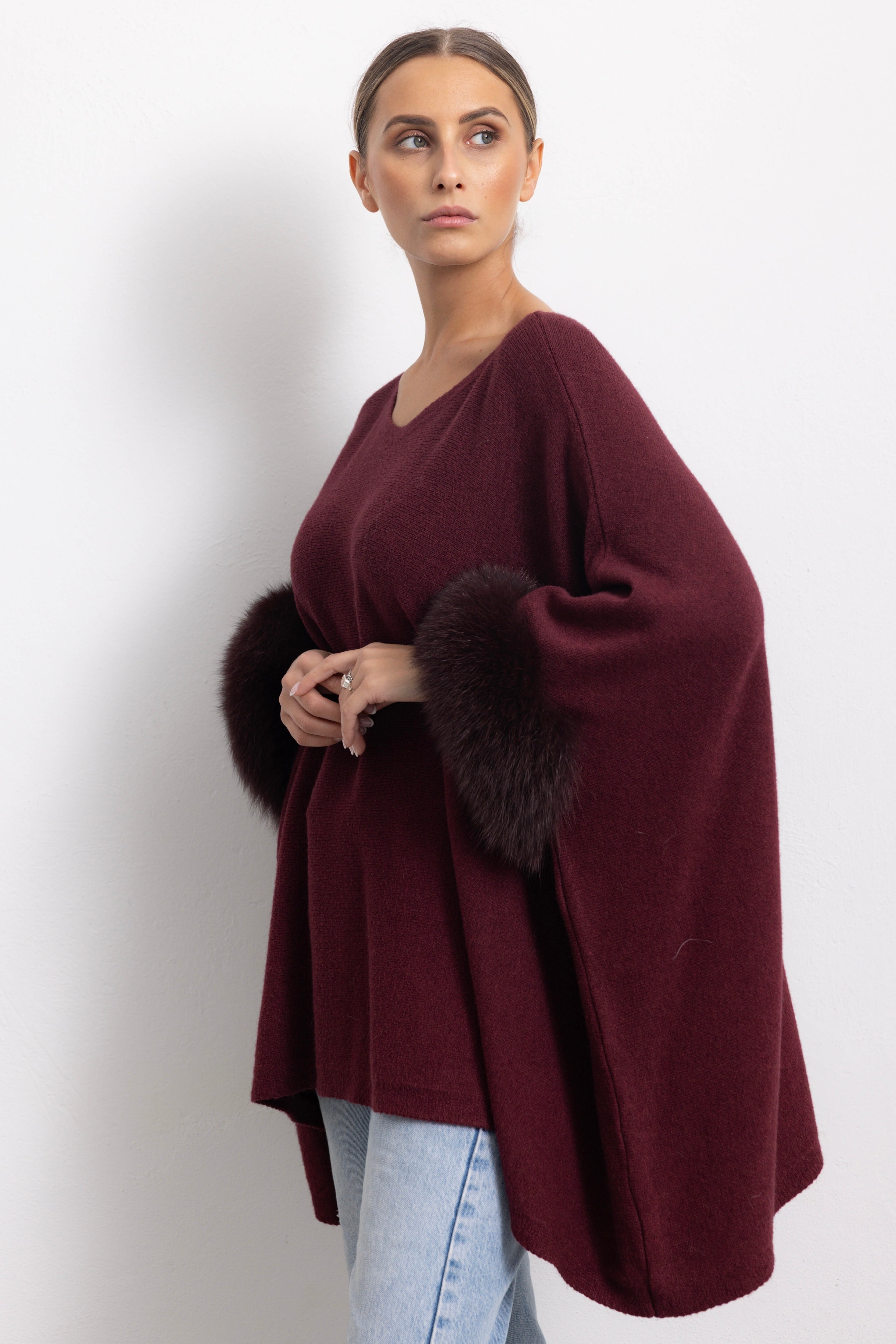 LONDRA - Poncho con polsini in volpe (Bordeaux)