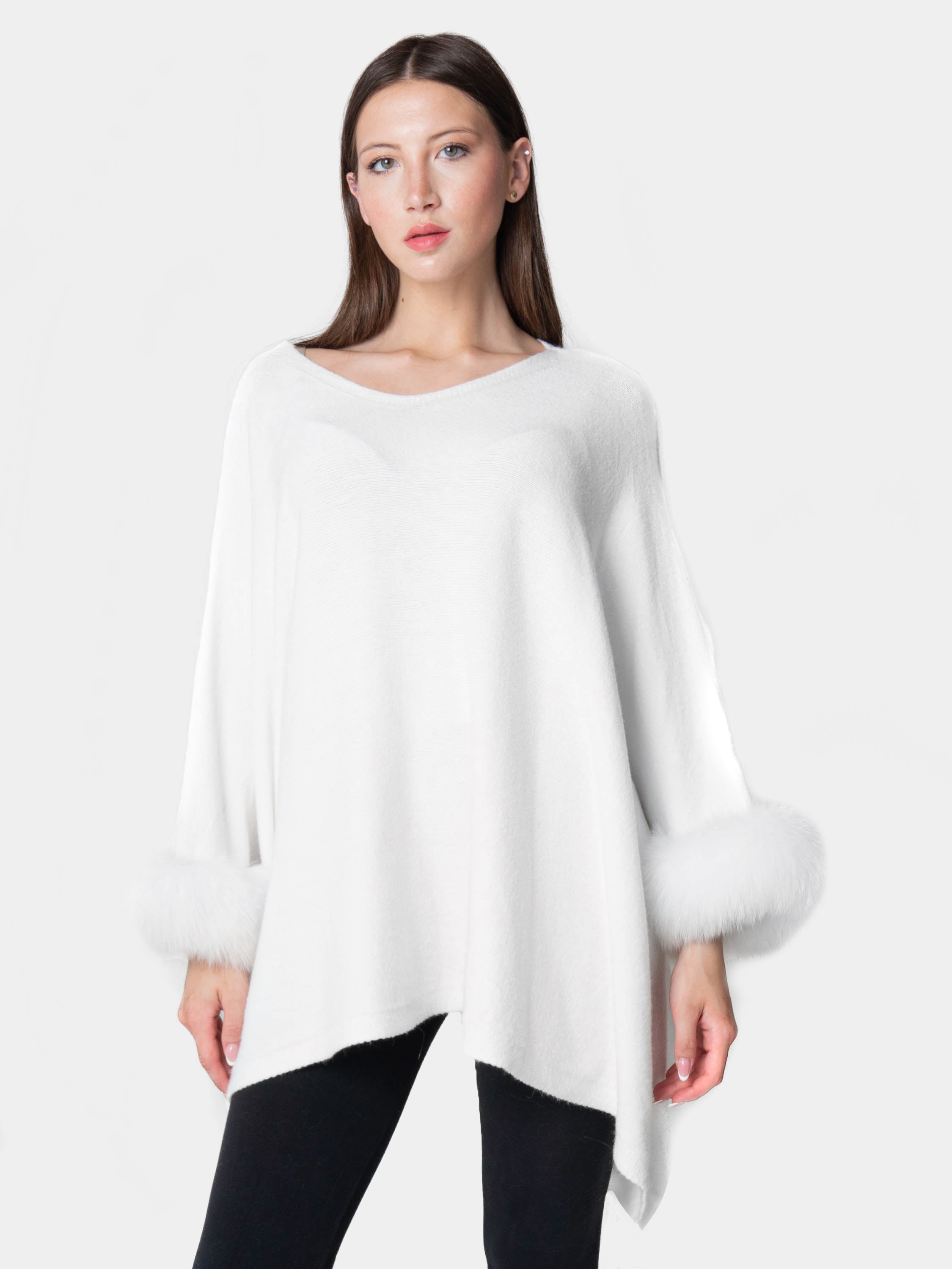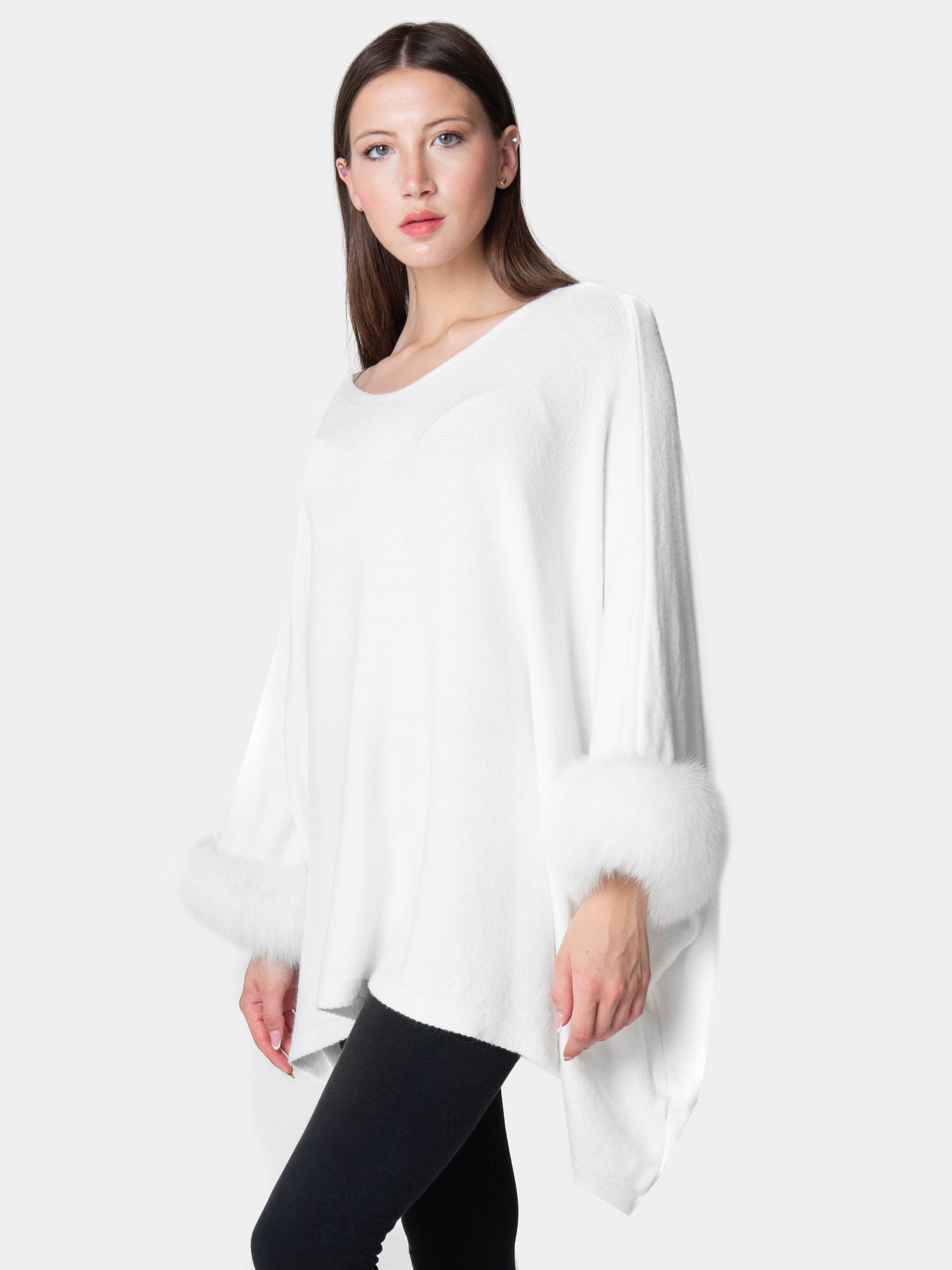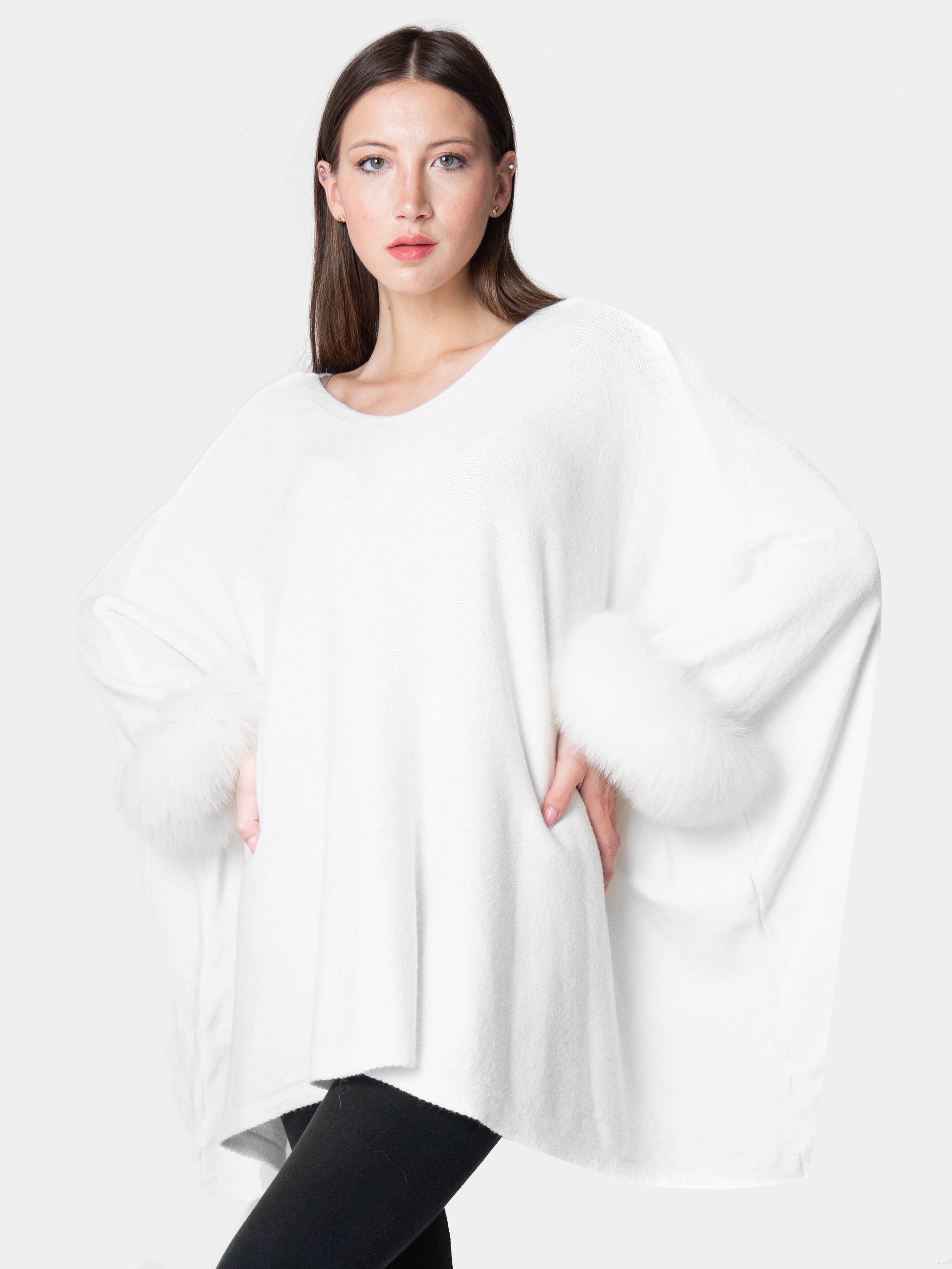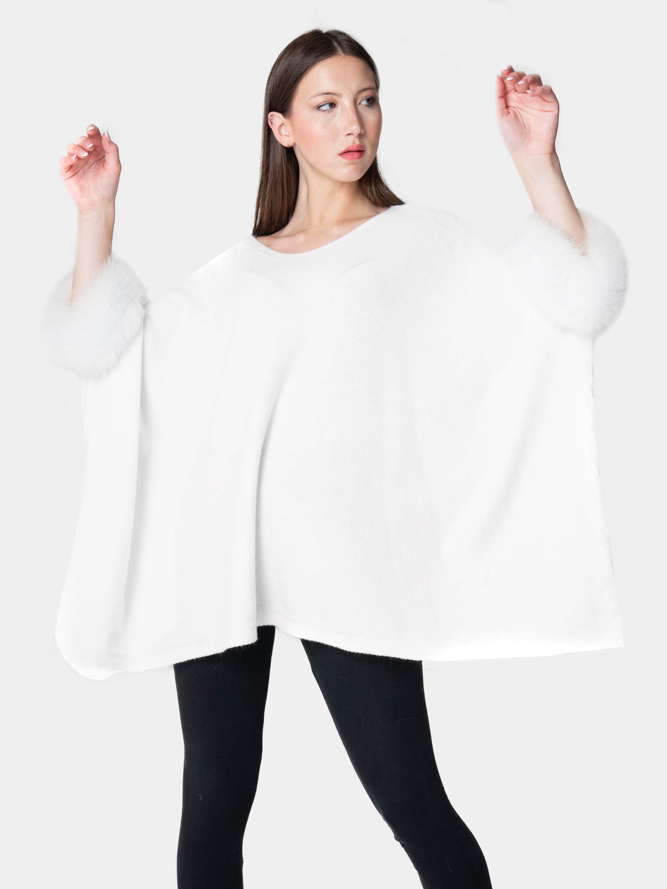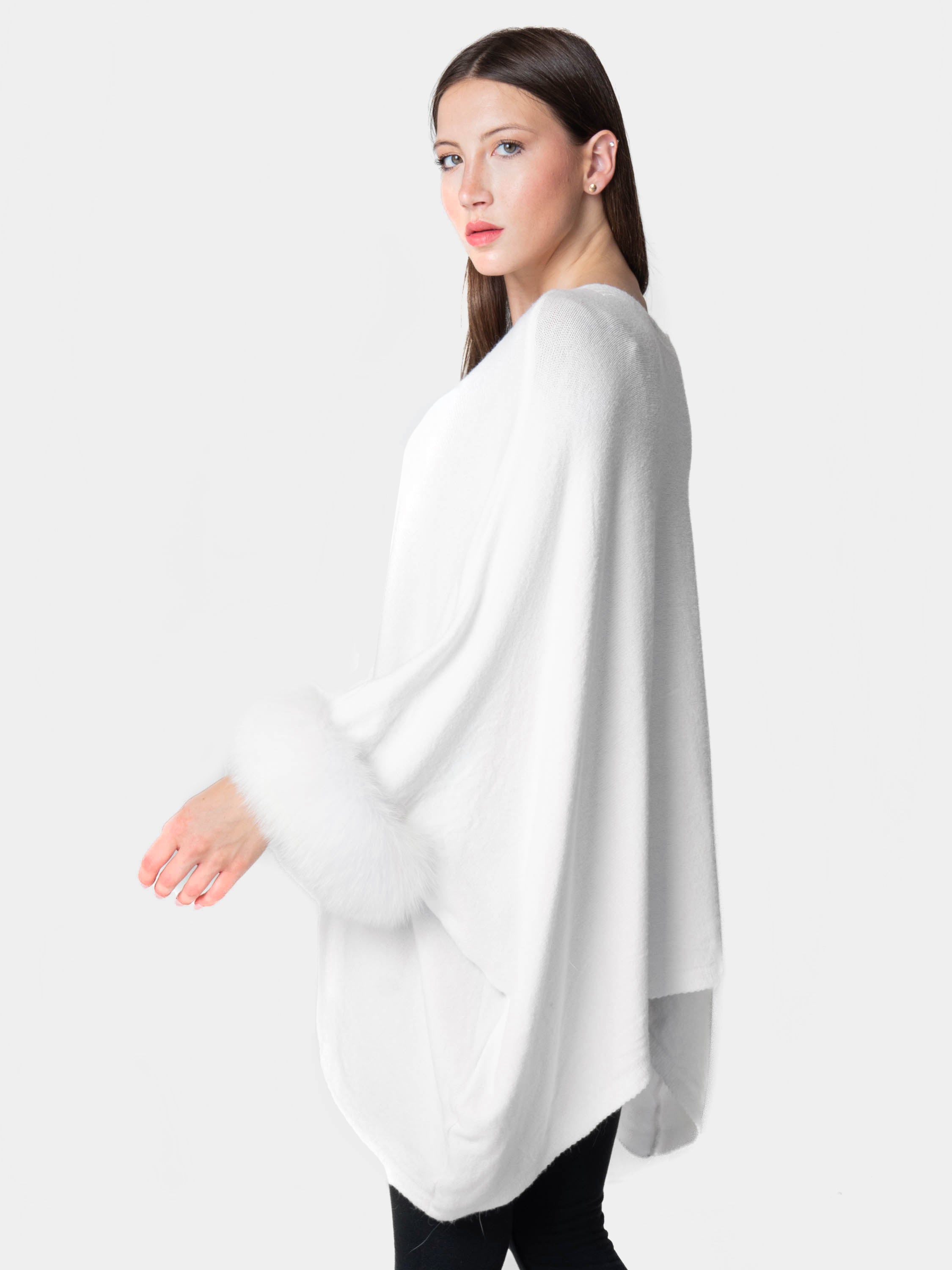 LONDRA - Poncho con polsini in volpe (Bianco)