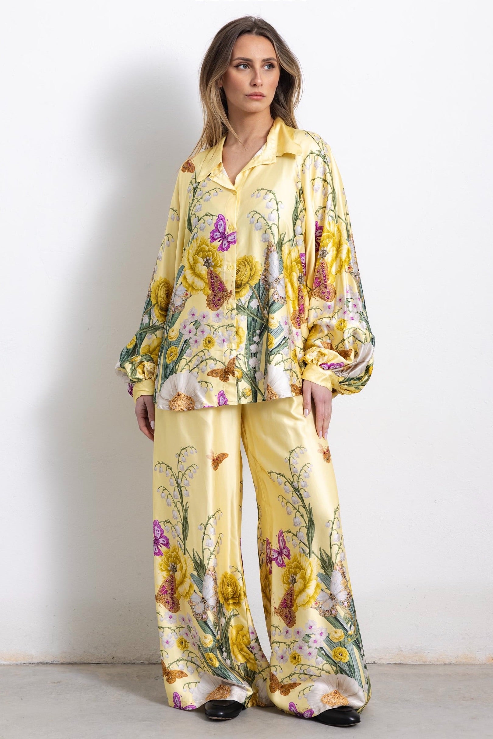 Nuovissima fantasia per il nostro coordinato Siracusa, dai richiami bucolici. In sei bellissimi colori, con pantalone svasato, elastico in vita e camicetta con abbottonatura frontale e colletto regolare.