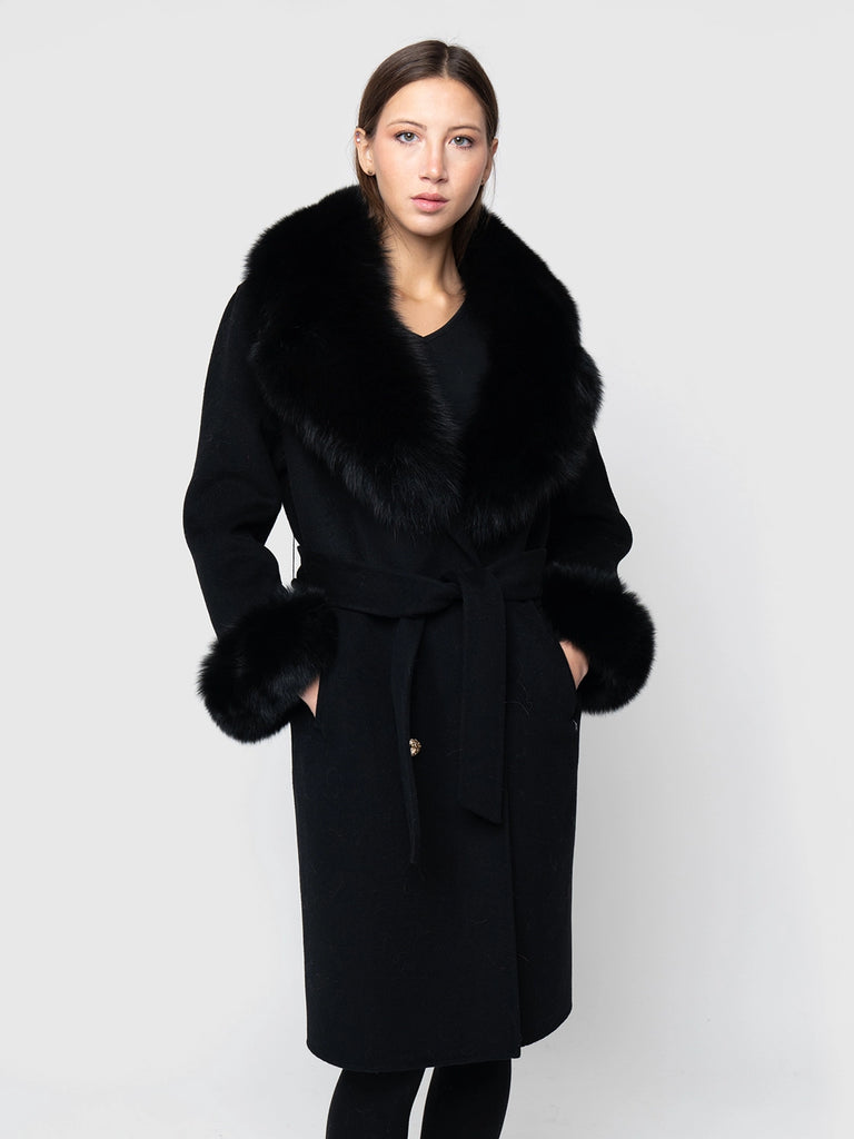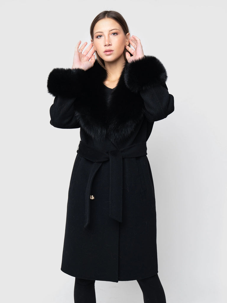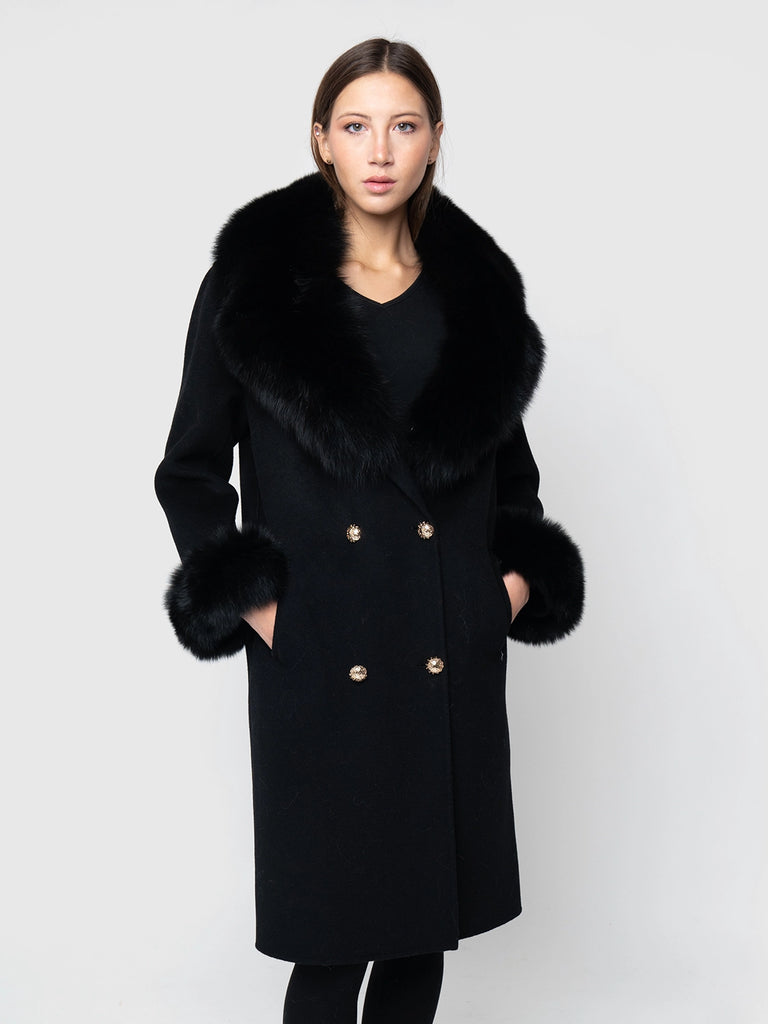 DUBLINO - Cappotto in cashmere con bordatura collo e polsini in volpe (Nero)