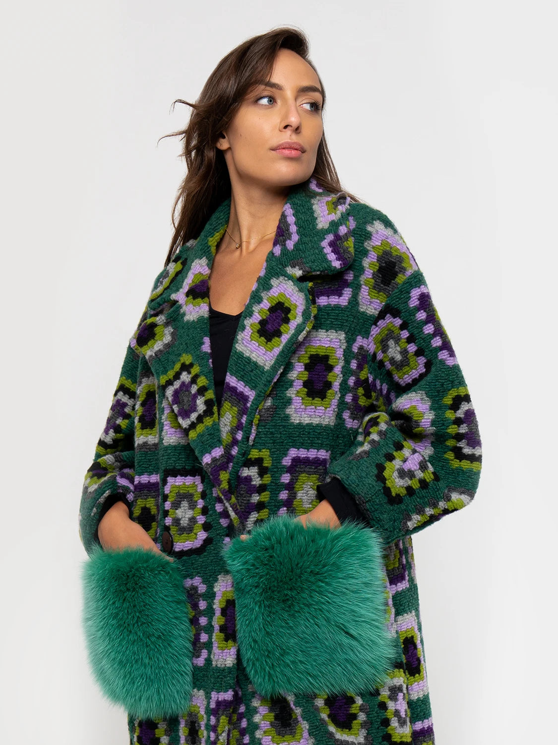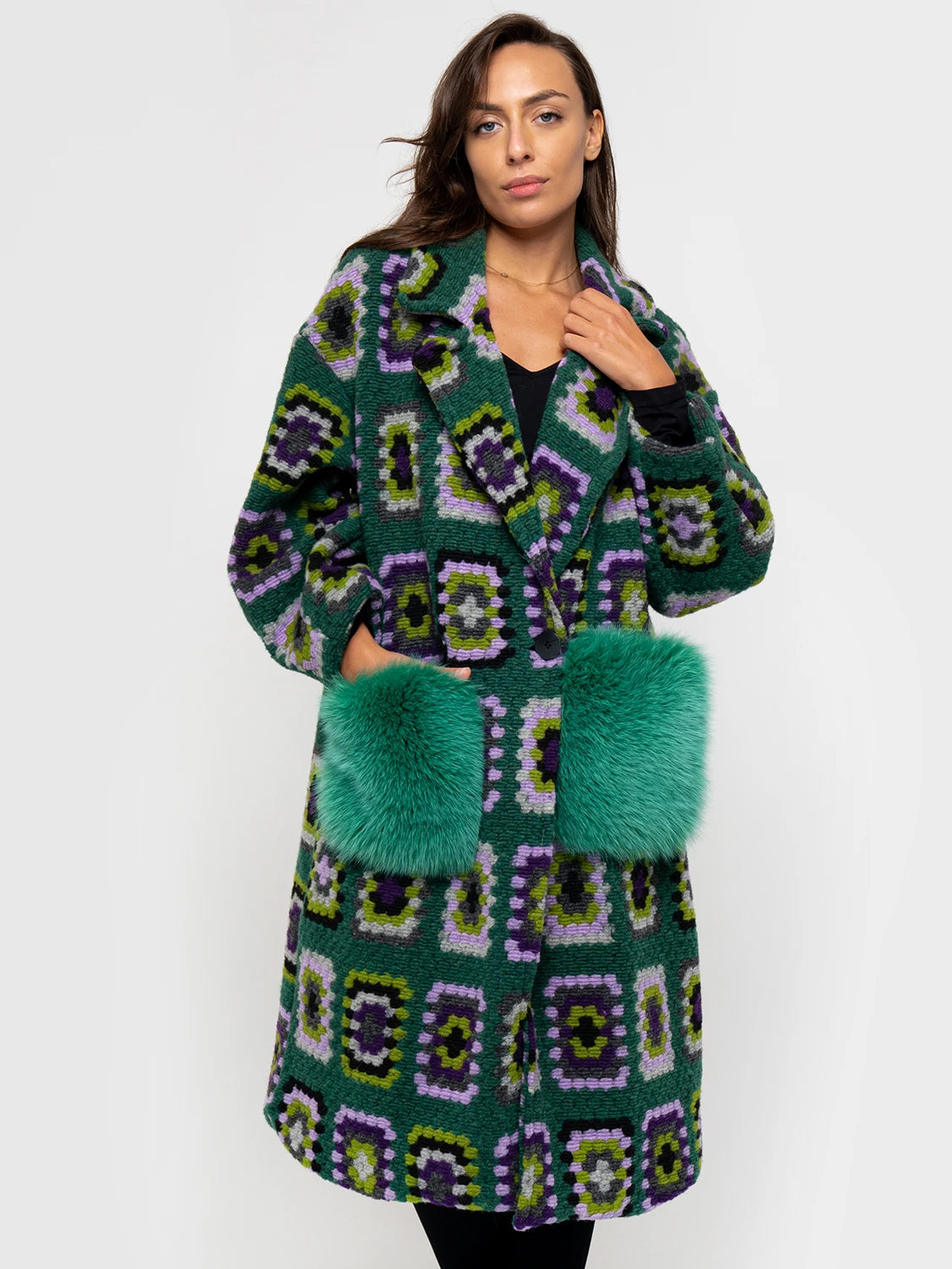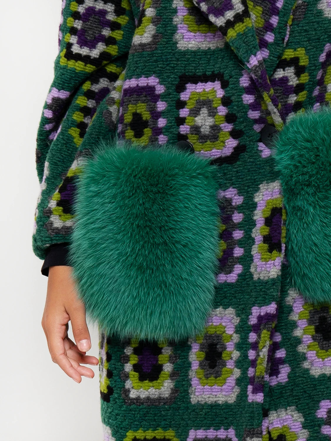 VIENNA Crochet - Cappotto con tasche in volpe (Verde)