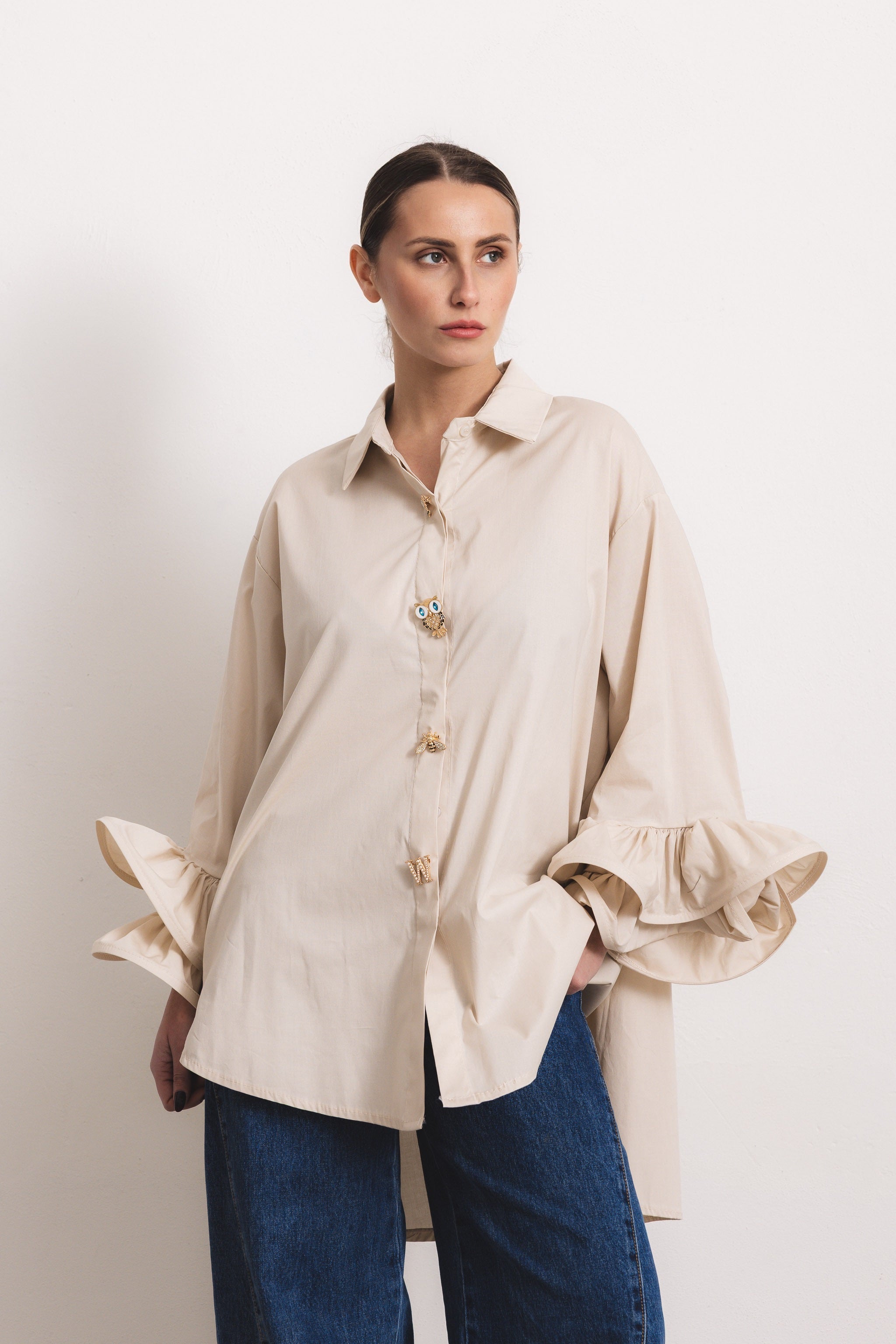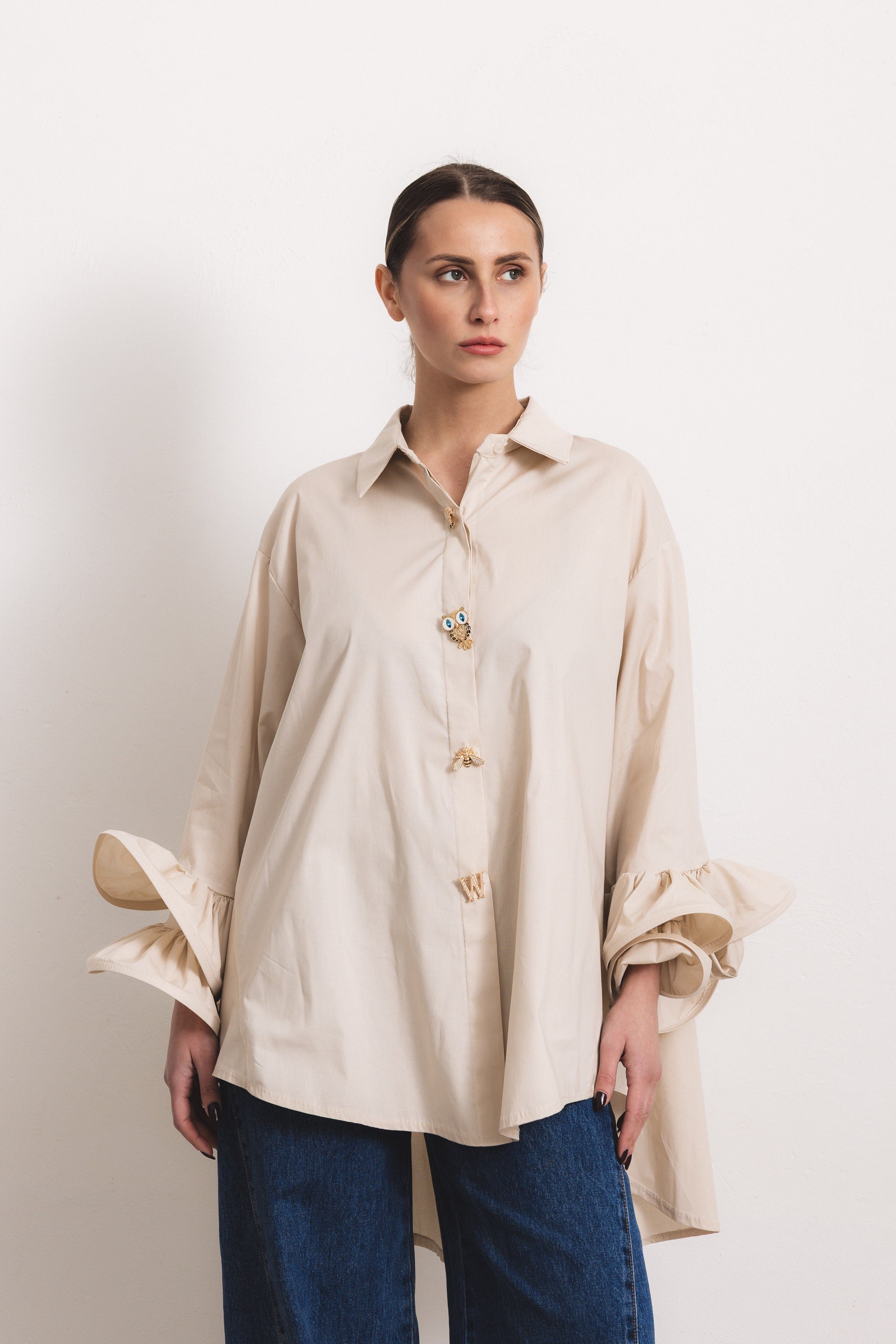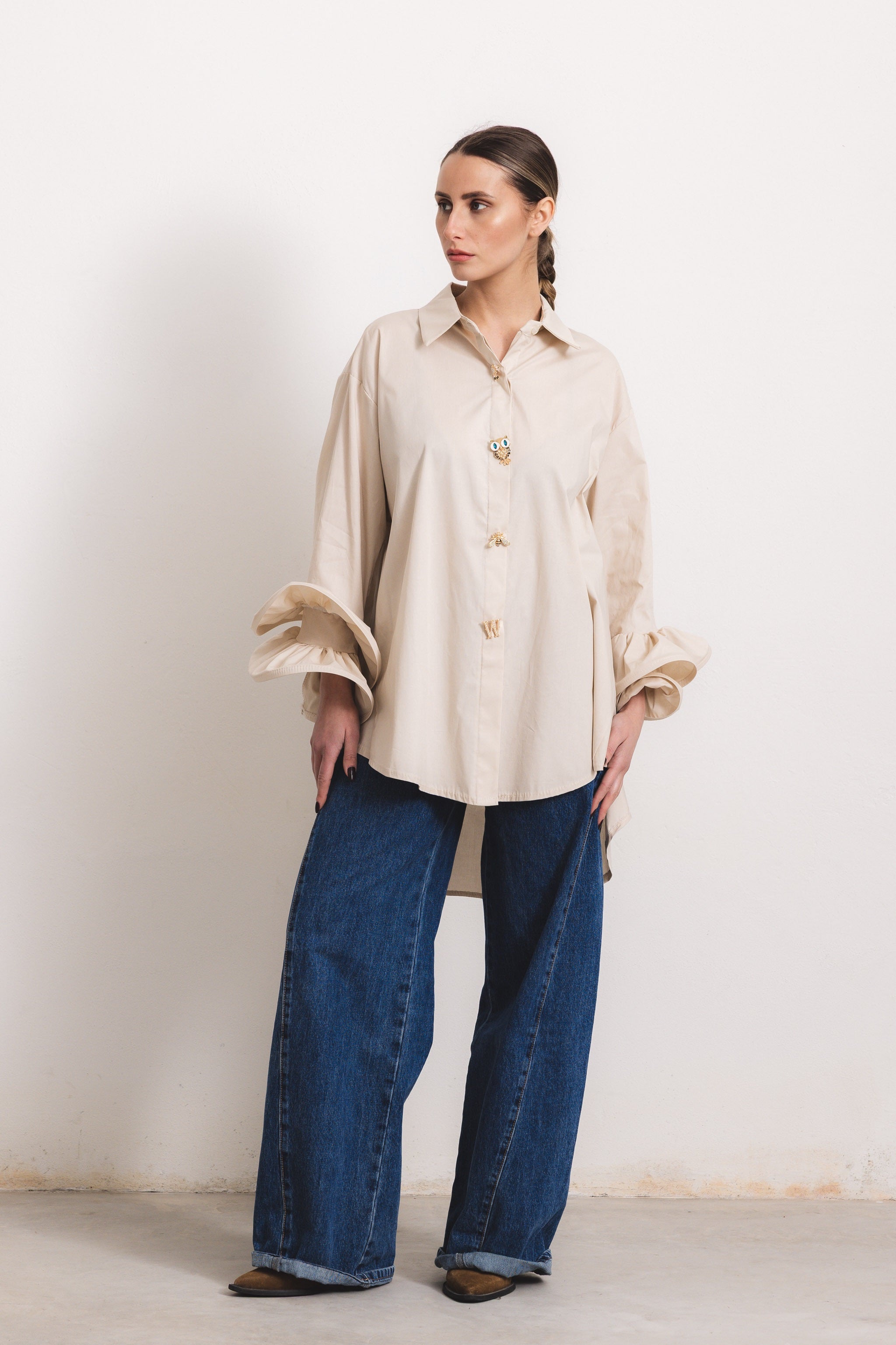 FLAMENCO - Camicia con rouches (Sabbia Bottoni Gioiello)