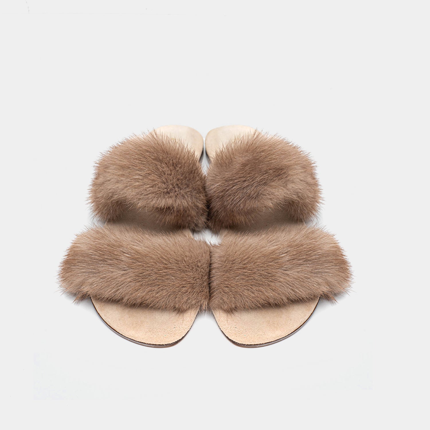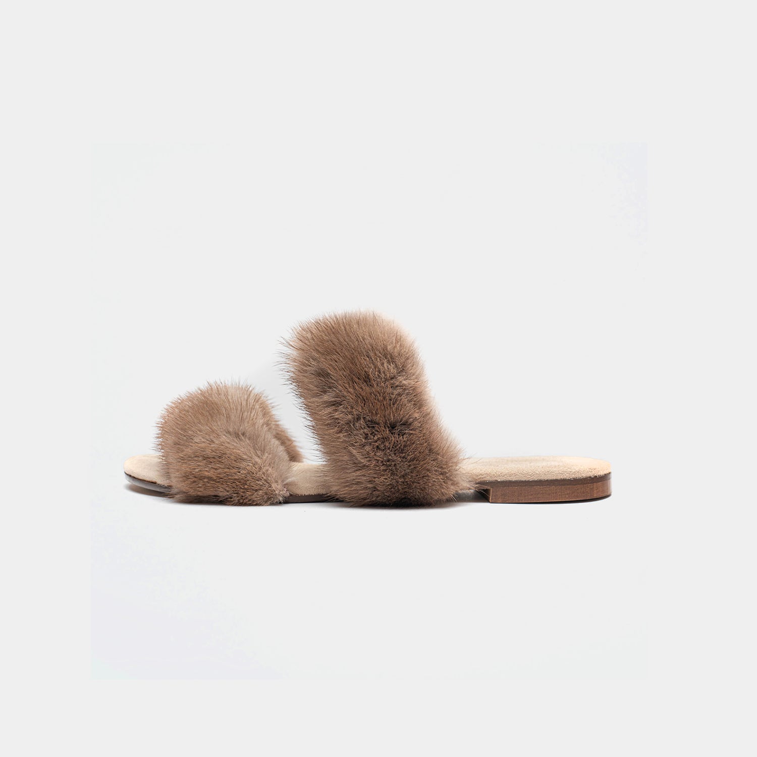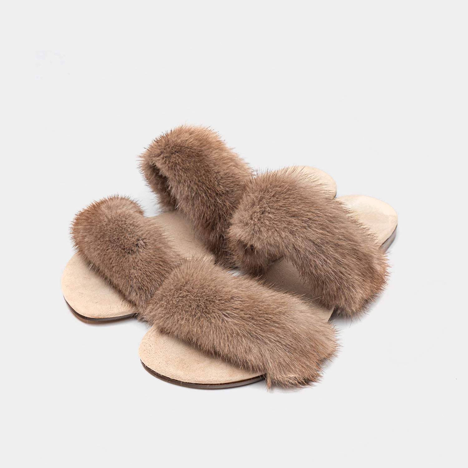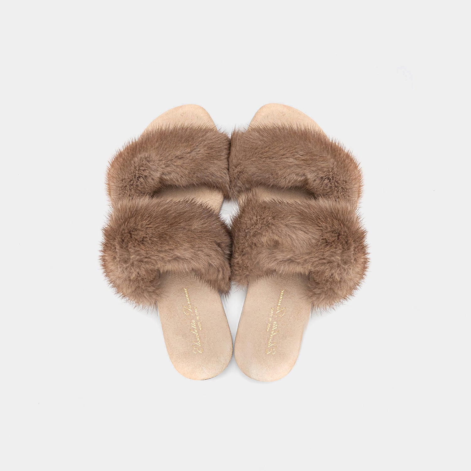 IBIZA - Slipper con doppia fascia in visone (Marrone)