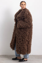 Cappotto lungo in folta ecopelliccia con collo reverse e manica regolare.