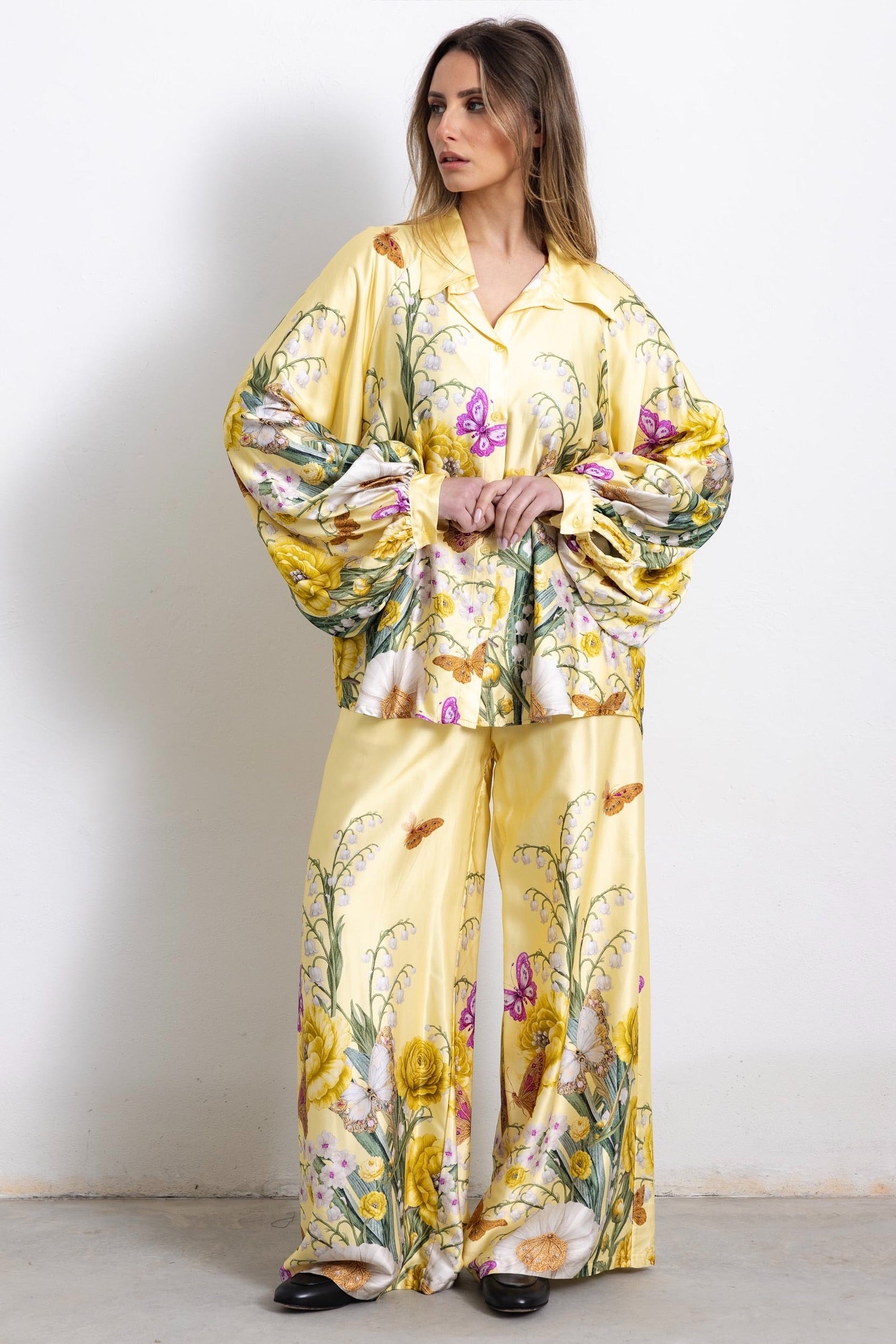 Nuovissima fantasia per il nostro coordinato Siracusa, dai richiami bucolici. In sei bellissimi colori, con pantalone svasato, elastico in vita e camicetta con abbottonatura frontale e colletto regolare.